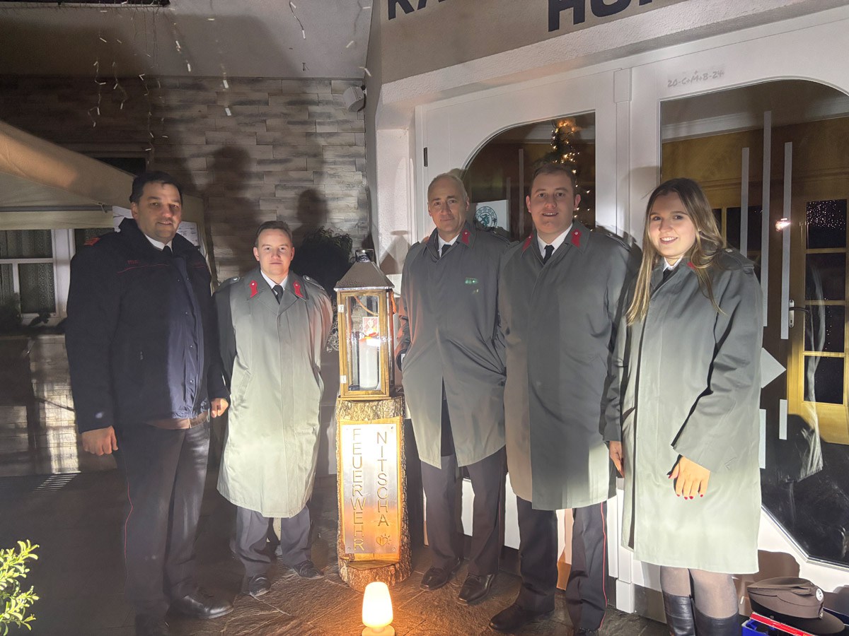Beim Feuerwehrhaus Nitscha und beim Gasthaus Pint ist das Friedenslicht zur Freien Entnahme abholbereit. Die Kameradinnen und Kameraden der Freiwillige Feuerwehr Nitscha wünschen Frohe Weihnachten.
