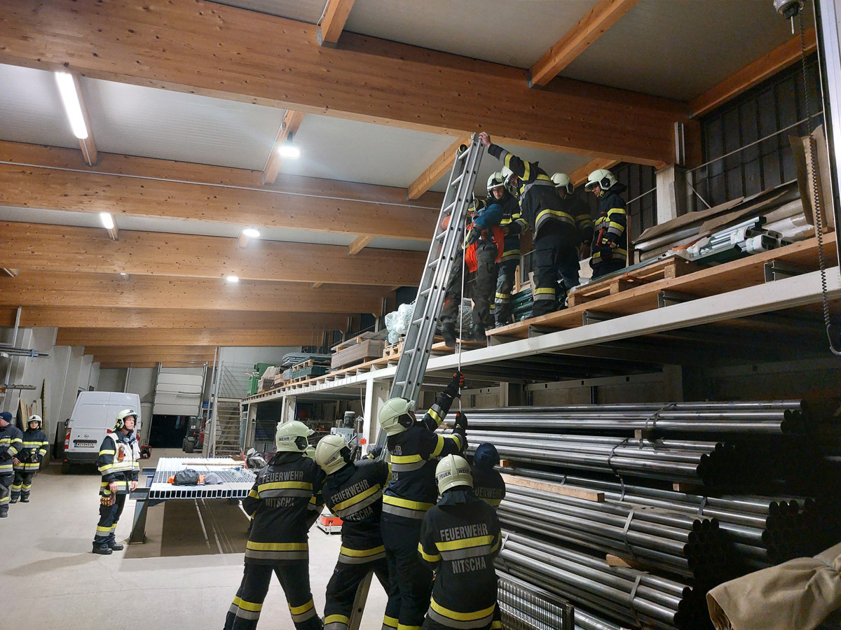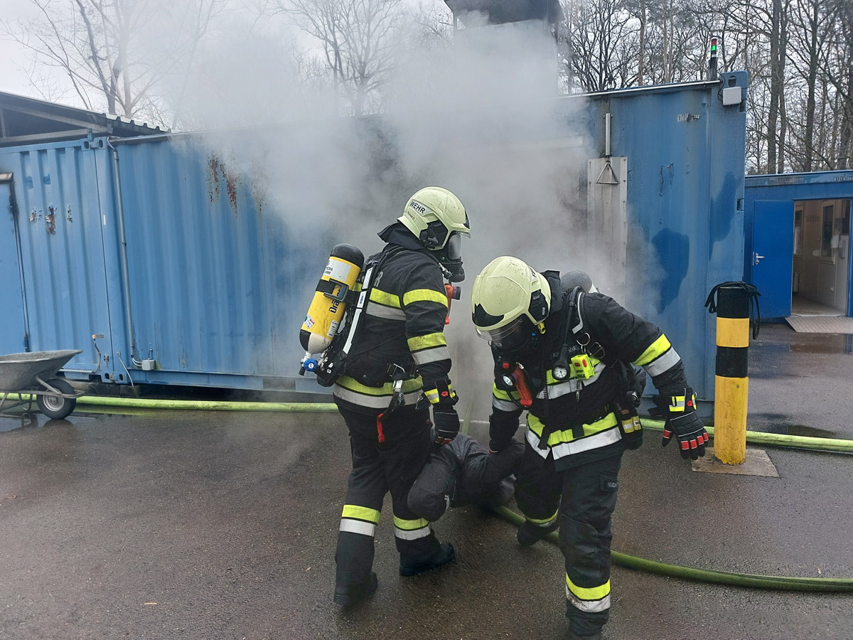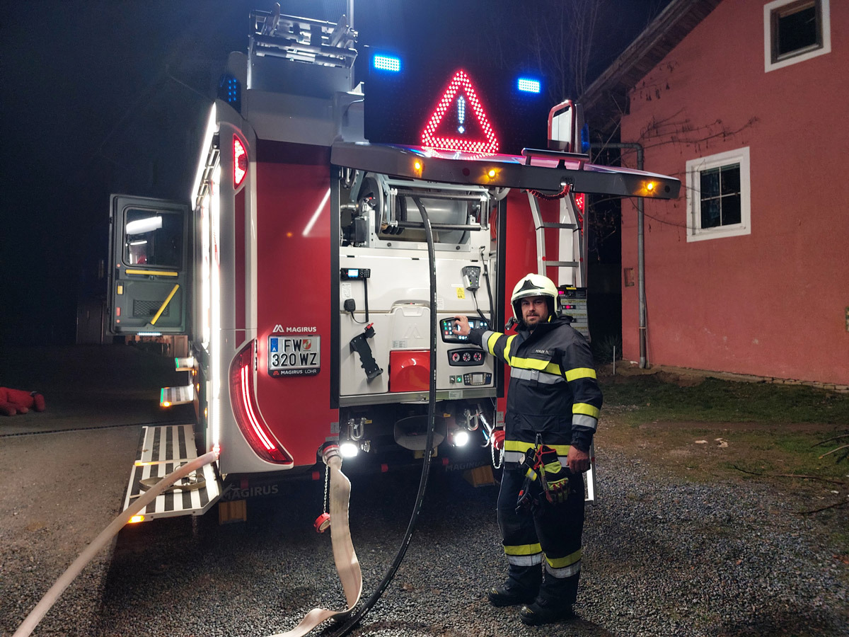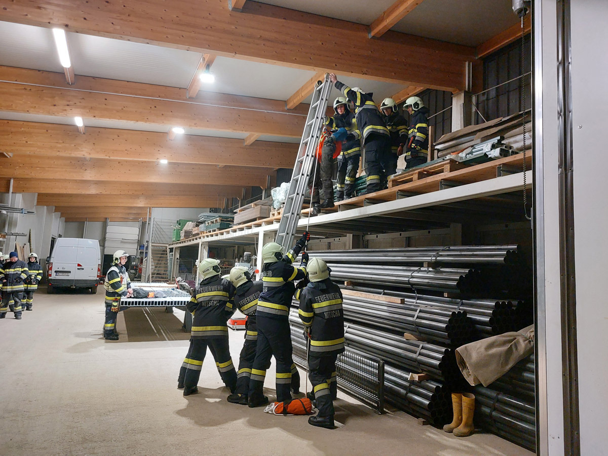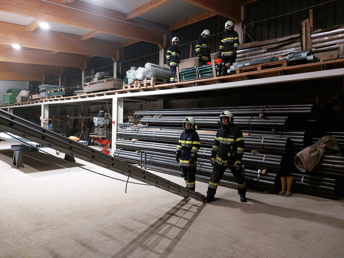 Am 14. März 2025 fand eine Gesamtübung bei der Firma Telko 1 in Kaltenbrunn statt. Übungsannahme war ein Heizraumbrand mit zwei vermissten Personen. Eine Person wurde von unserem Atemschutztrupp im Heizraum lokalisiert und mit einem Tragetuch aus dem verrauchten Raum gerettet. Die zweite Person befand sich in einer nicht verrauchten Halle und musste mit dem Rettungstuch und einer Leiter gerettet werden. Weiters wurde eine Zubringleitung aufgebaut und das Gebäude mit einem C-Rohr geschützt.