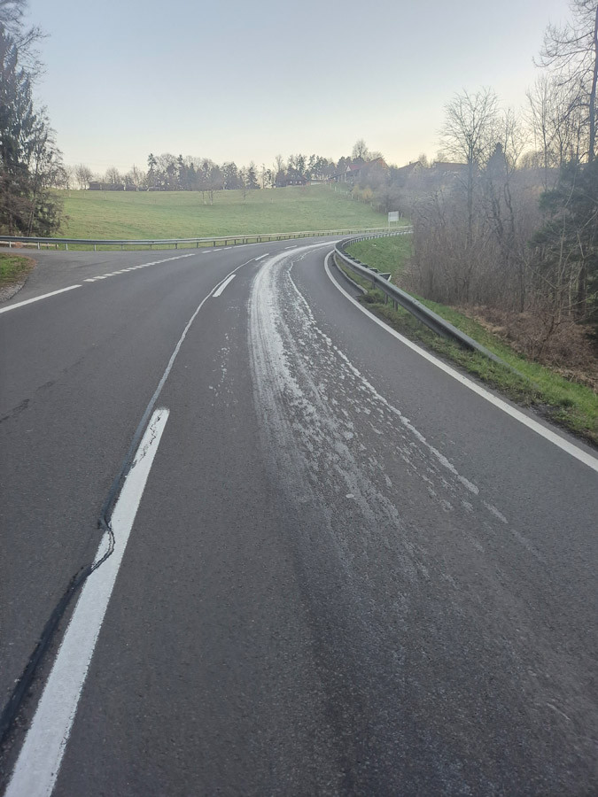 Tätigkeit: Einsatzstelle absichern, Straße von Eis befreien mithilfe der Straßenmeisterei und Verkehr regeln