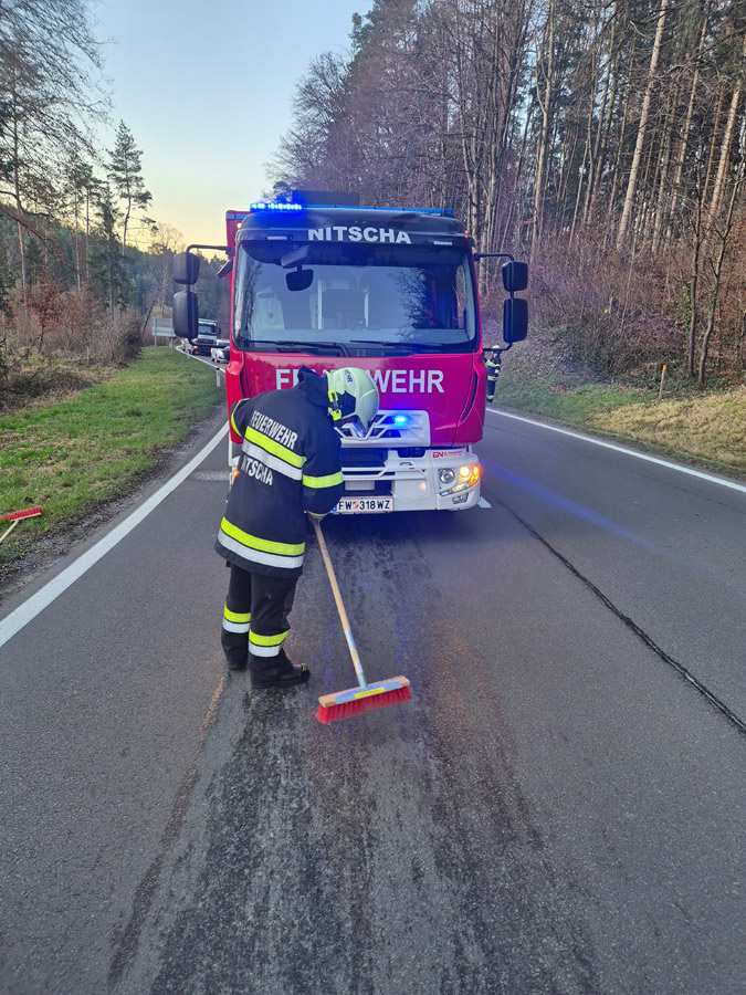 Einsatzkräfte: LKW und MTF-A Nitscha mit 10 Mann, Polizei und Straßenmeisterei