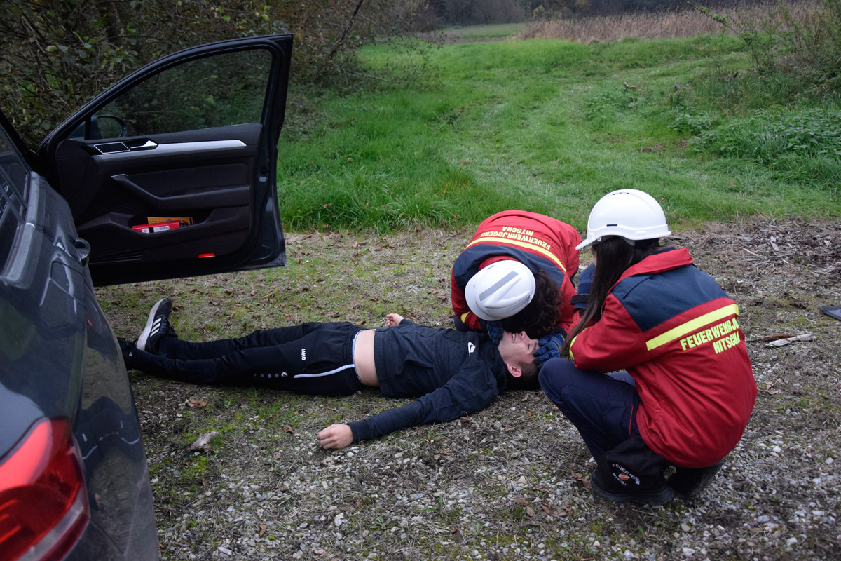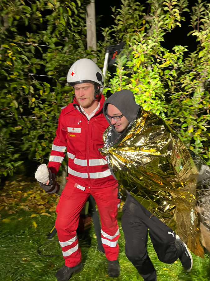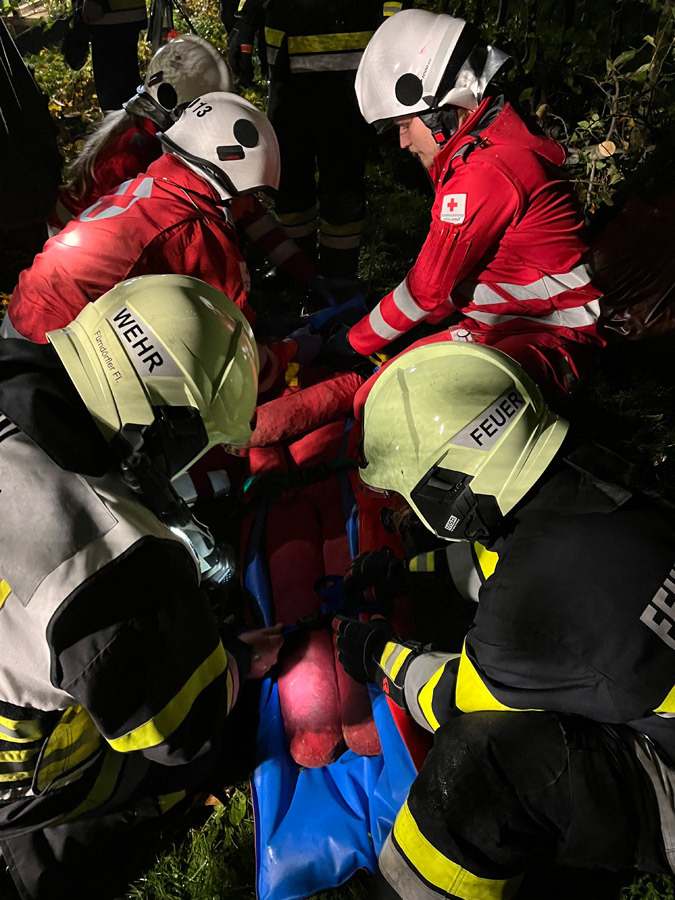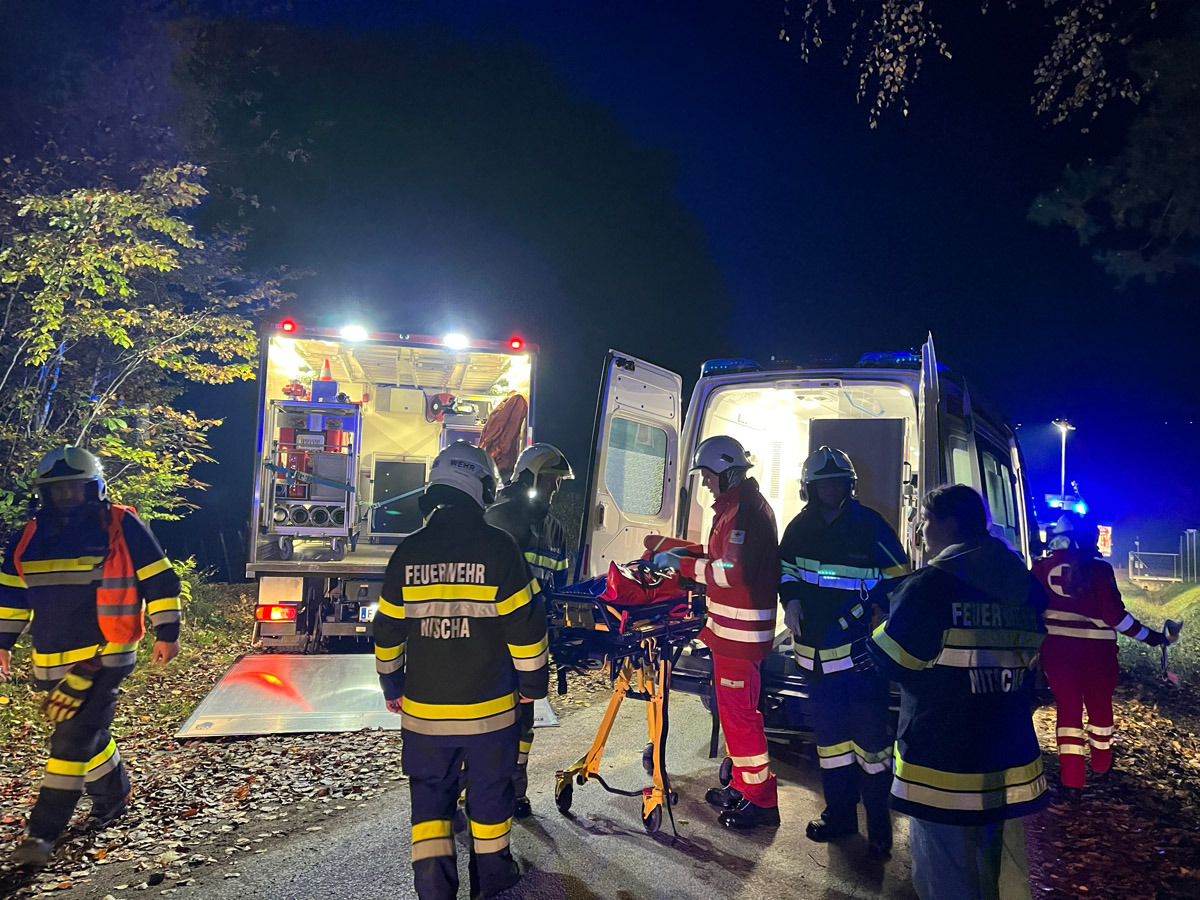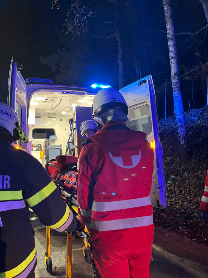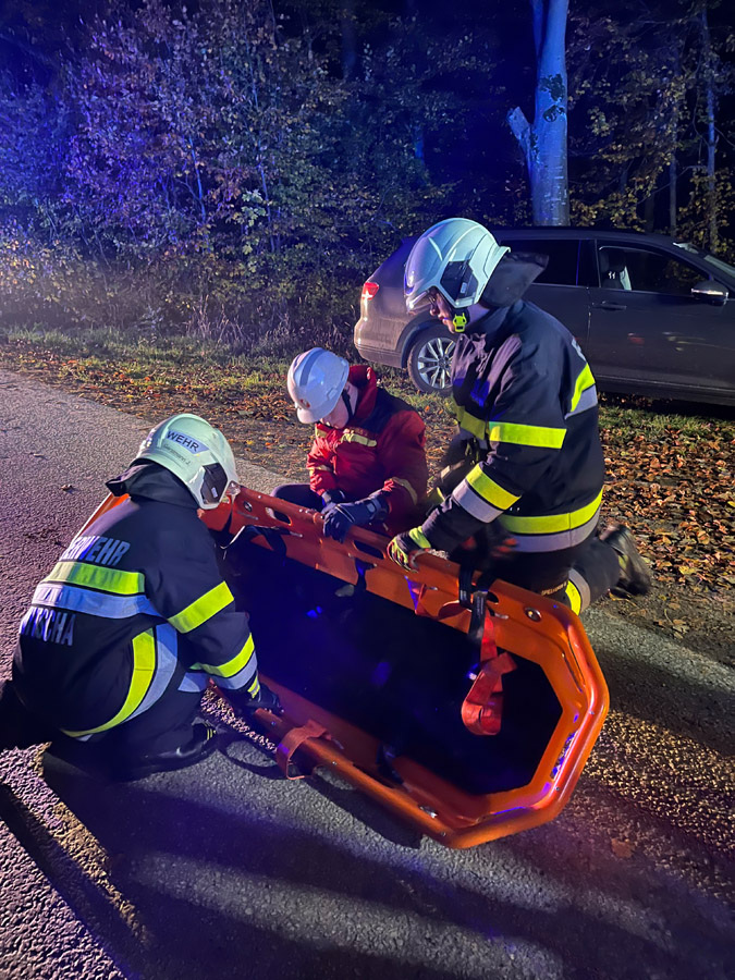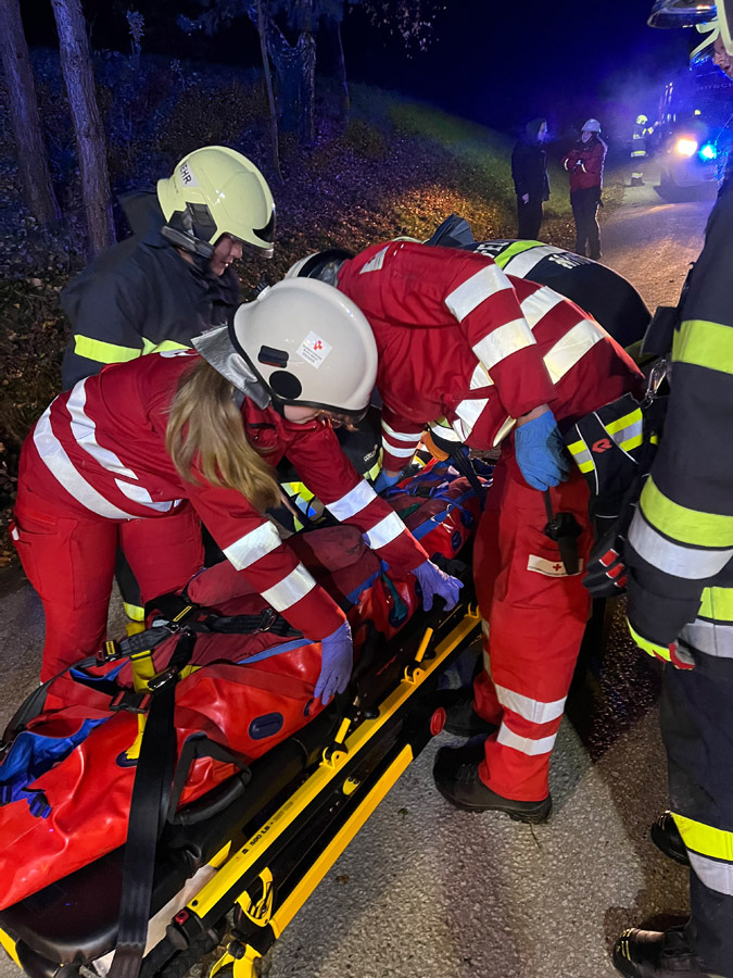 Wenig später meldeten Passanten in unmittelbarer Nähe einen weiteren Verkehrsunfall mit mehreren verletzten und vermissten Personen. Die Einsatzkräfte übernahmen sofort die Menschenrettung und Erstversorgung der insgesamt vier weiteren verletzten Personen, die anschließend dem Roten Kreuz übergeben wurden. Die Suche nach zwei als vermisst gemeldeten Personen erfolgte sowohl am Boden als auch aus der Luft mithilfe der Drohne und konnte nach kurzer Zeit erfolgreich abgeschlossen werden.