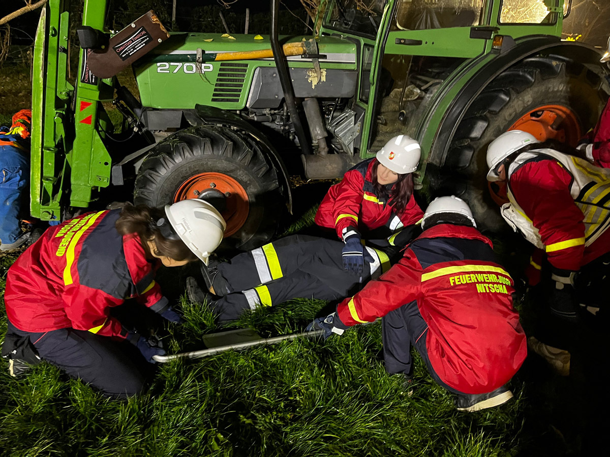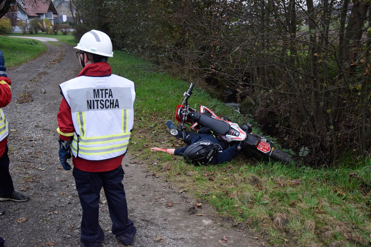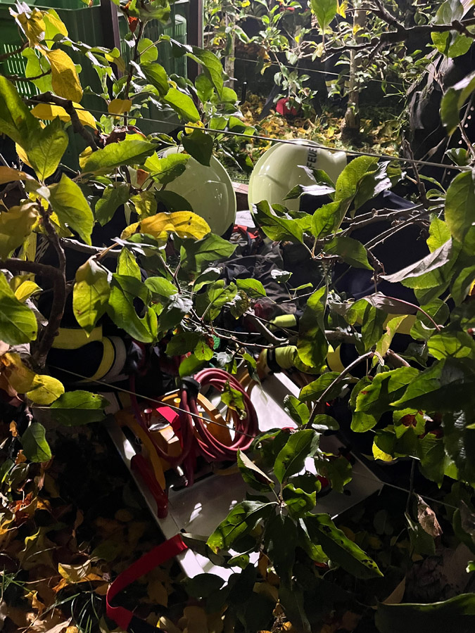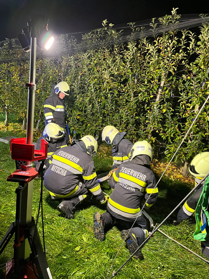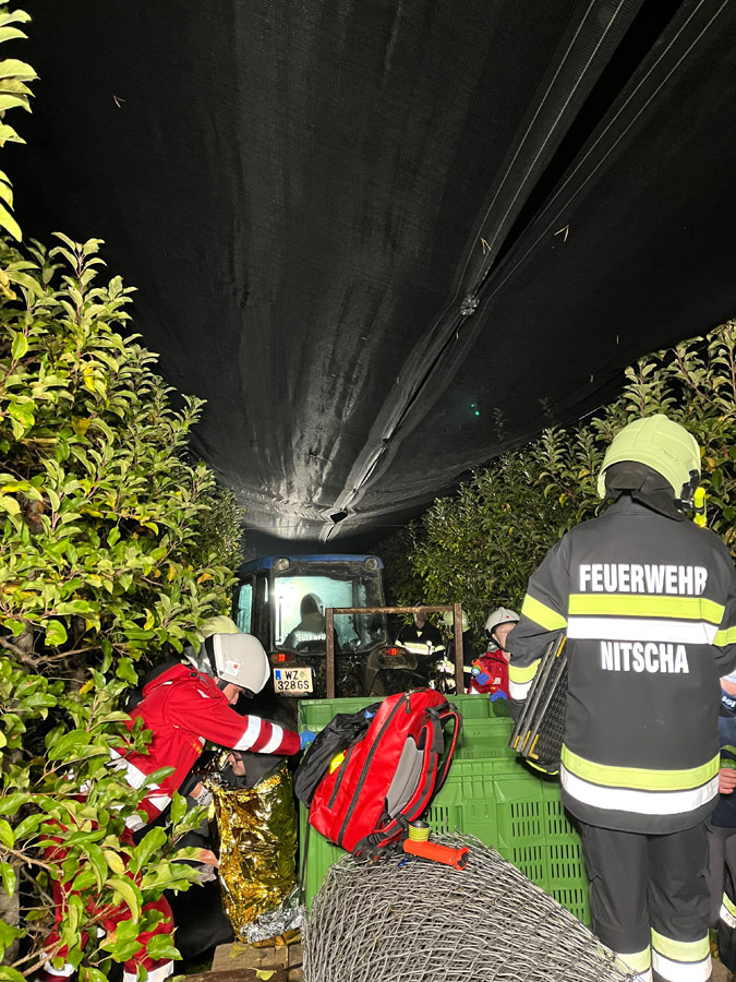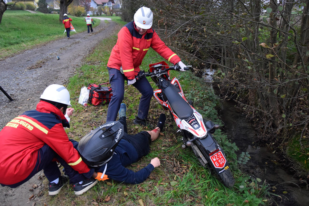 Wenig später meldeten Passanten in unmittelbarer Nähe einen weiteren Verkehrsunfall mit mehreren verletzten und vermissten Personen. Die Einsatzkräfte übernahmen sofort die Menschenrettung und Erstversorgung der insgesamt vier weiteren verletzten Personen, die anschließend dem Roten Kreuz übergeben wurden. Die Suche nach zwei als vermisst gemeldeten Personen erfolgte sowohl am Boden als auch aus der Luft mithilfe der Drohne und konnte nach kurzer Zeit erfolgreich abgeschlossen werden.