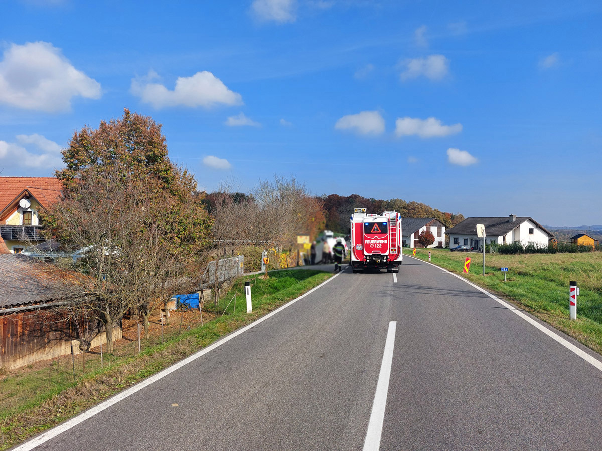 Um 17:04 Uhr wurden die Feuerwehren Labuch und Gleisdorf alarmiert. Die Einsatzmeldung lautete: „Verkehrsunfall mit mehreren verletzten Personen, PKW in Vollbrand und Brandausbreitung auf den Wald.“