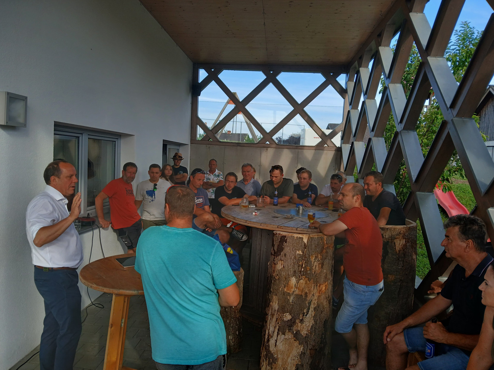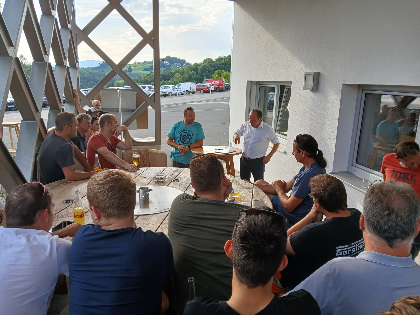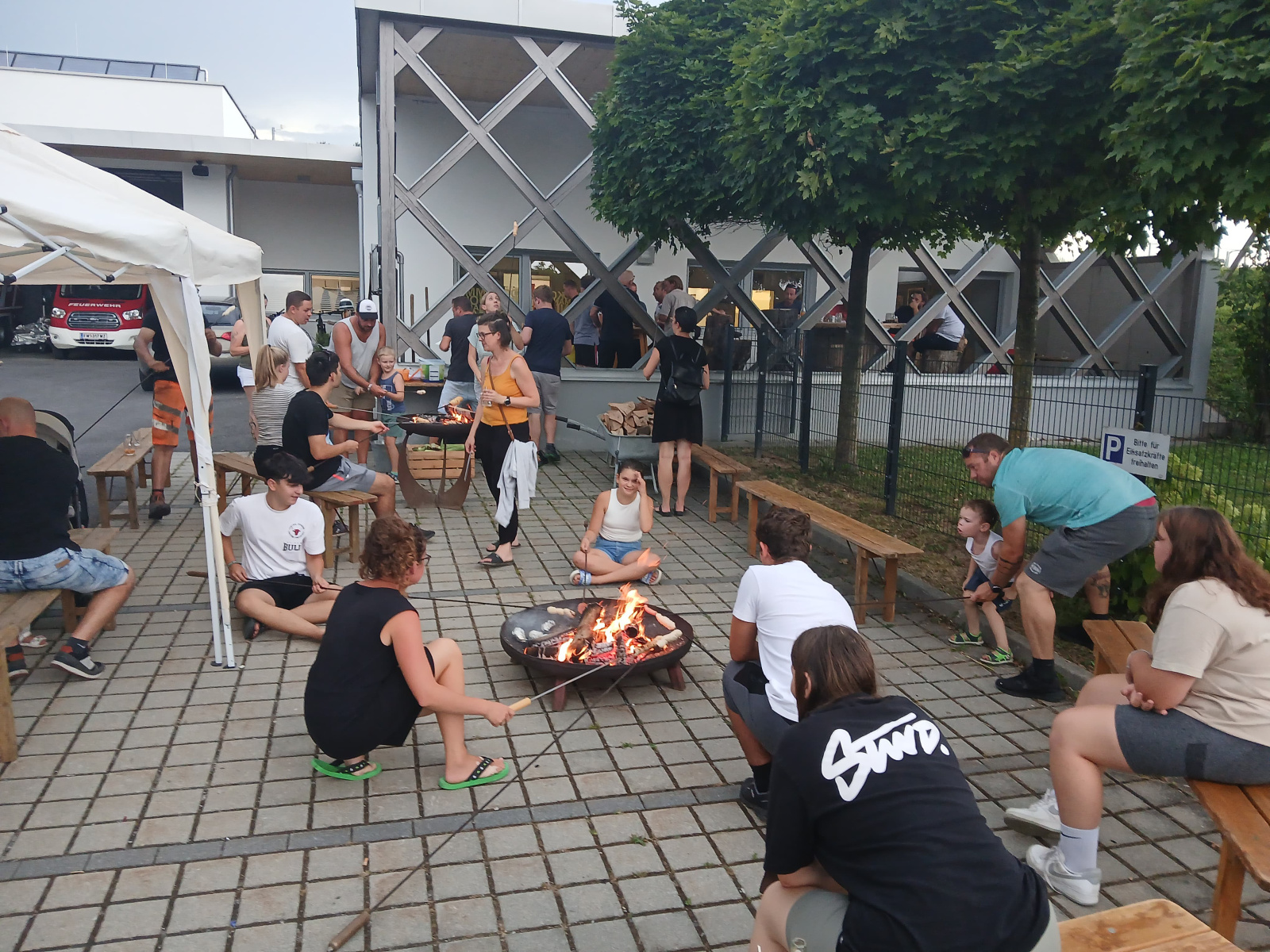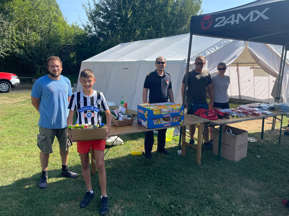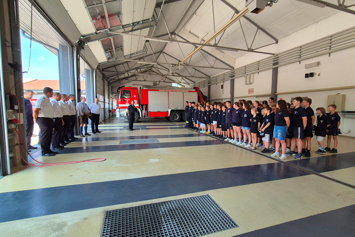 Donnerstagvormittag bauten 78 Jugendliche gemeinsam mit den Betreuern das Zeltlager im Wellenbad der Stadtgemeinde Gleisdorf auf und wurden danach im Feuerwehrhaus Gleisdorf von Abschnittsjugendbeauftragten OLM Florian Fürndörfler, ABI Rudi Karrer, NAbg. BGM Christoph Stark und den jeweiligen Feuerwehrkommandanten- & Stellvertretern herzlich begrüßt.