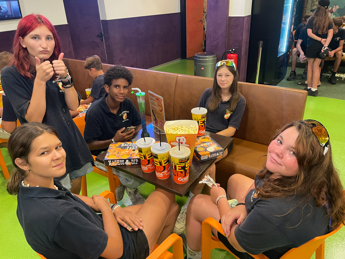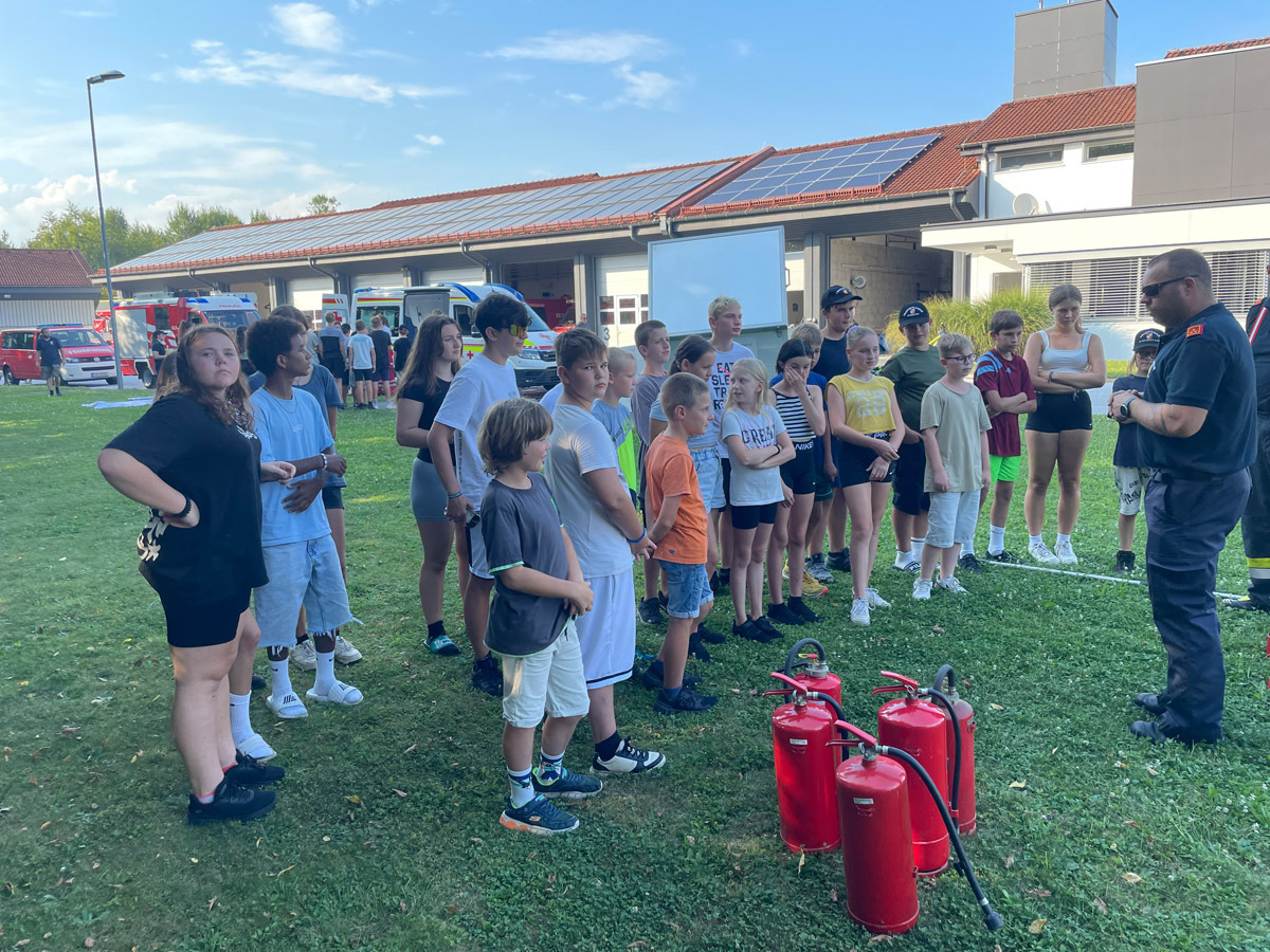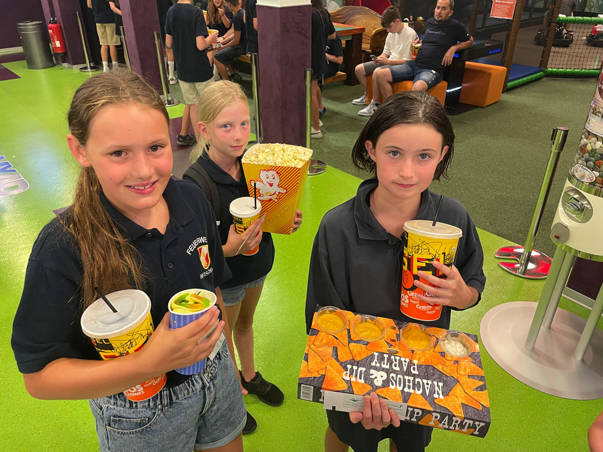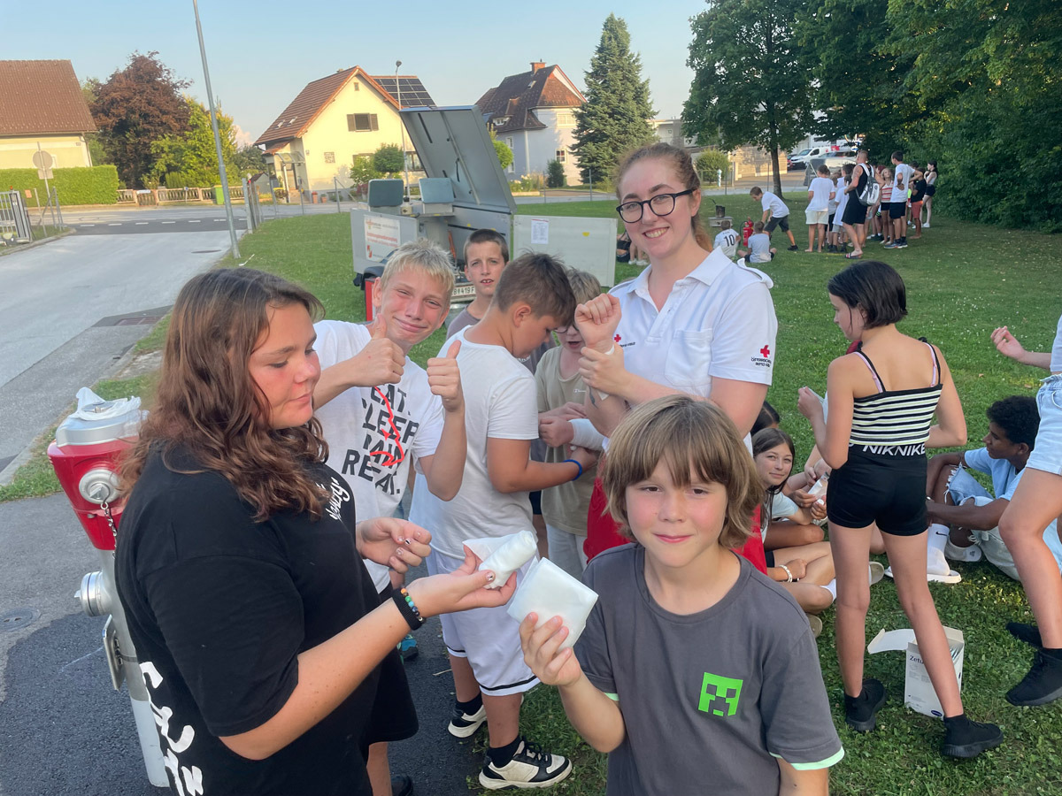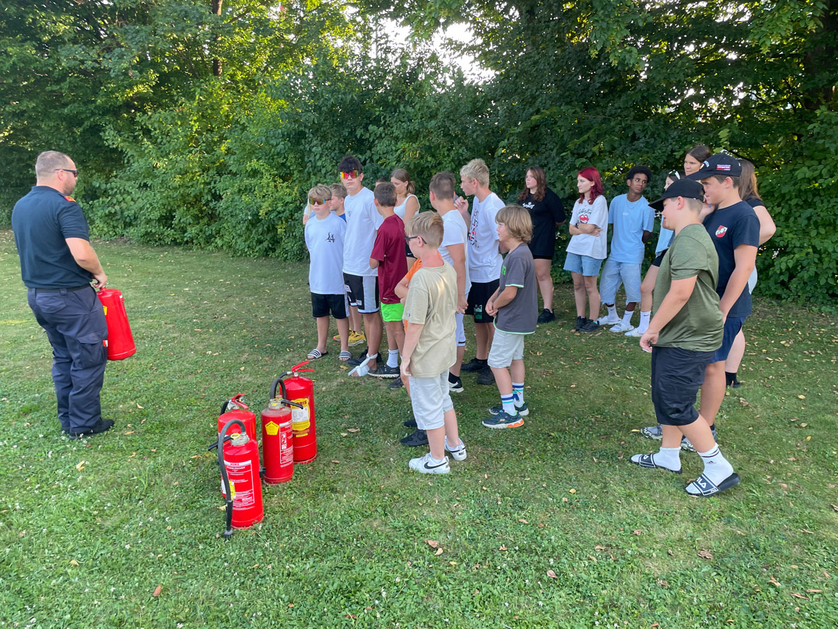 Auch sonst wurde das Rahmenprogramm interessant und spielerisch gestaltet. So durften die Mädels und Burschen im Zuge einer Vorstellung des Themas „Entstehungsbrandbekämpfung“ die richtige Handhabung verschiedener Feuerlöscher kennenlernen und selbst anwenden. Das Rote Kreuz Gleisdorf kam zu Besuch und gab einen Einblick in das Thema der Ersten Hilfe und der Zusammenarbeit zwischen Feuerwehr- und Rettungswesen. Weiters wurden auch die Drehleiter der Feuerwehr Gleisdorf und die Einsatzdrohne des BFV Weiz vorgestellt. Auch der Besuch vom Modellsportverein „Die Stoakraxler“ mit ihren ferngesteuerten Geländefahrzeugen war ein Highlight für unsere Feuerwehrjugend, sowie der gemeinsame Filme-Abend im Diesel Kino Gleisdorf.