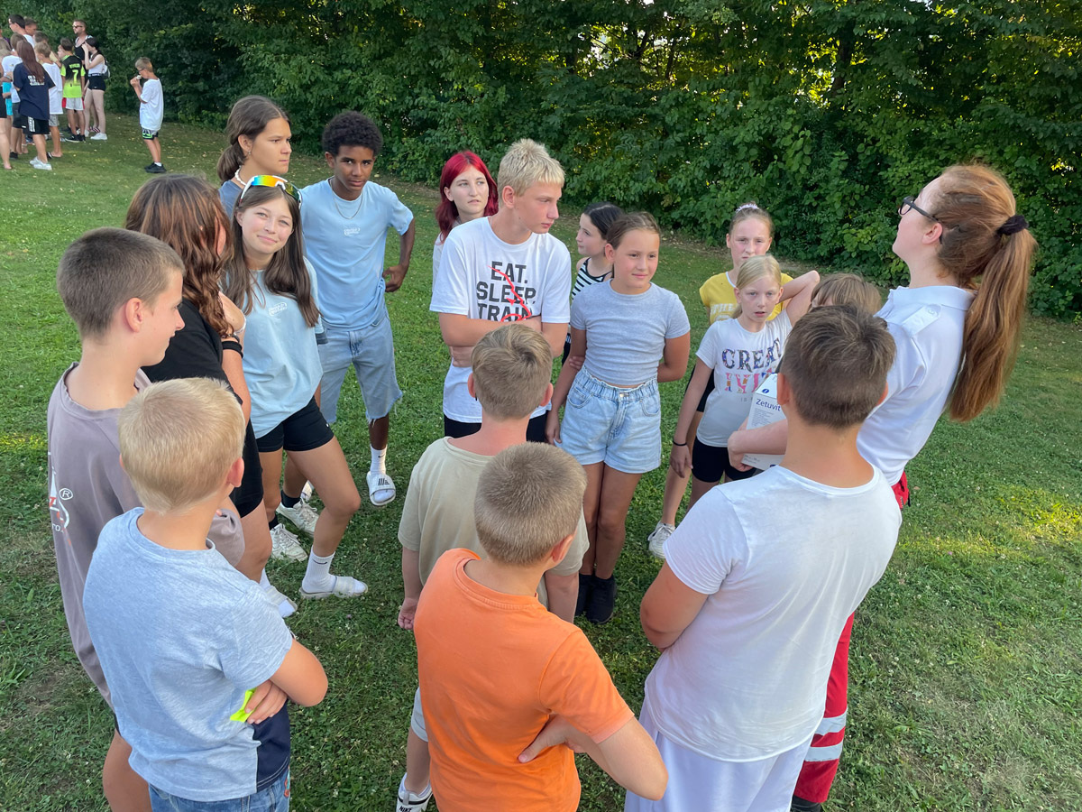 Nach der feierlichen Eröffnung und einer Stärkung zu Mittag ging es gleich sportlich mit einem Teil der Abnahme für das Österreichische Sport- & Turnabzeichen (ÖSTA), sowie für das Deutsche Sportabzeichen (DOSB) weiter. Dort konnten sich die Teilnehmer:innen im Weitspringen, einem Sprint-Lauf und Schlagball gegenseitig anfeuern und ihren sportlichen Ehrgeiz unter Beweis stellen.