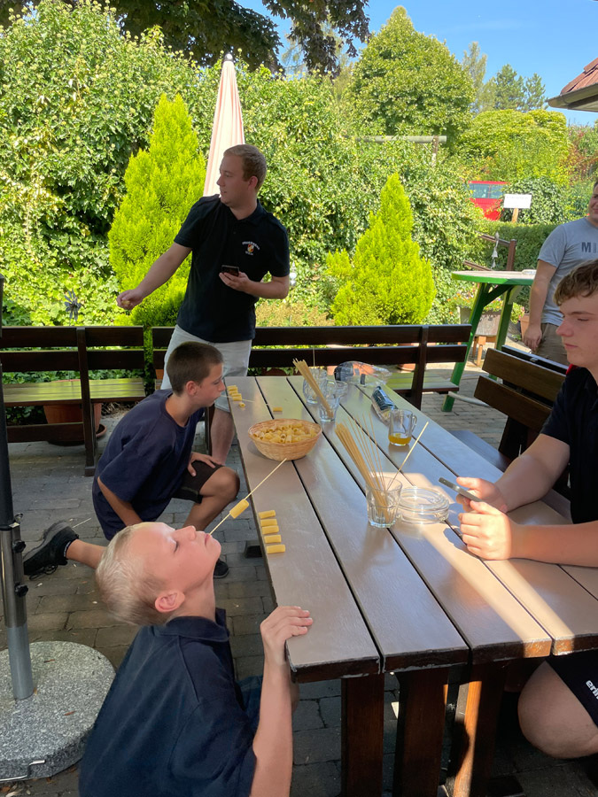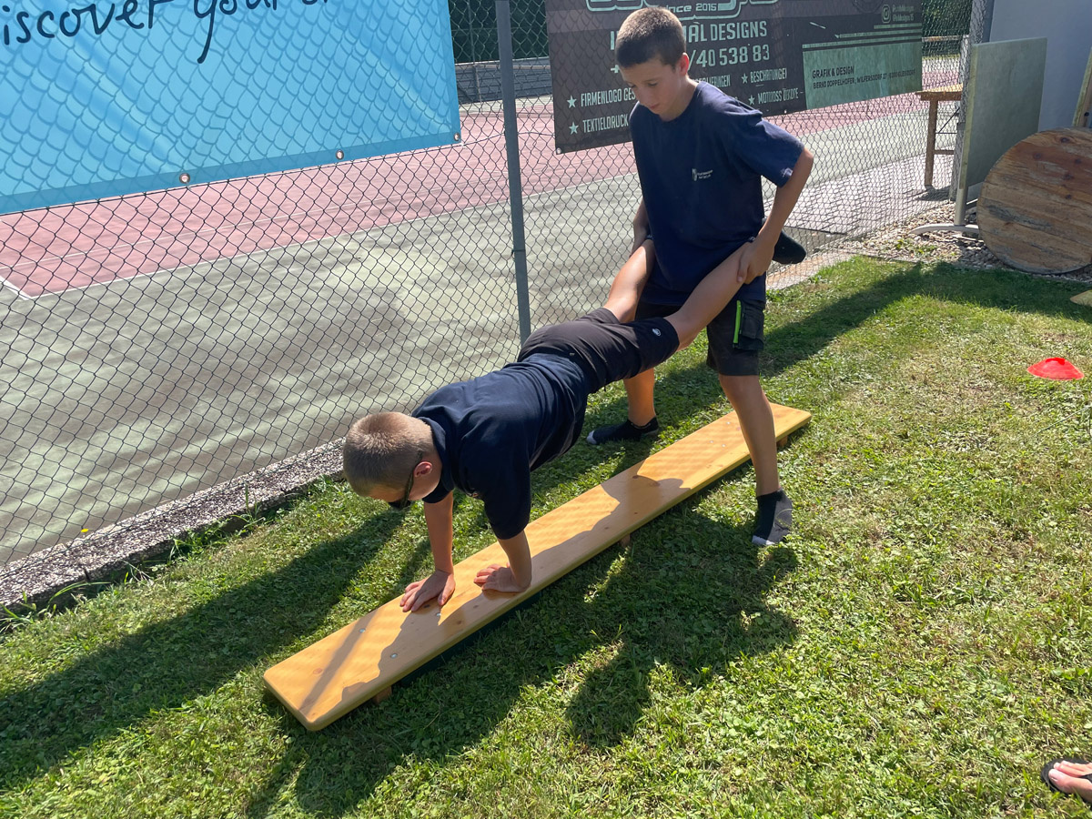 Im Laufe der vier Tage wurden auch die anderen beiden Disziplinen, Schwimmen und Wandern, absolviert. Während des Wandertages, wo es sommerliche 30°C hatte, konnten die Jugendlichen an 6 Stationen kurz verschnaufen und ihr Können bei verschiedenen Geschicklichkeitsspielen zeigen.