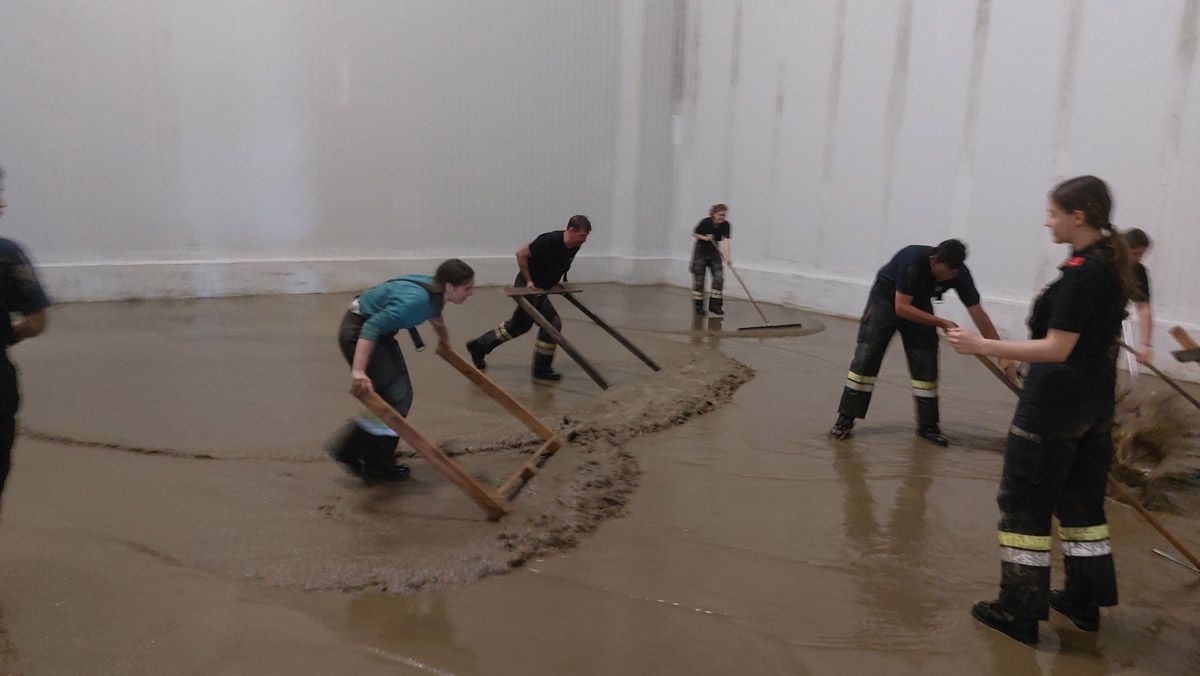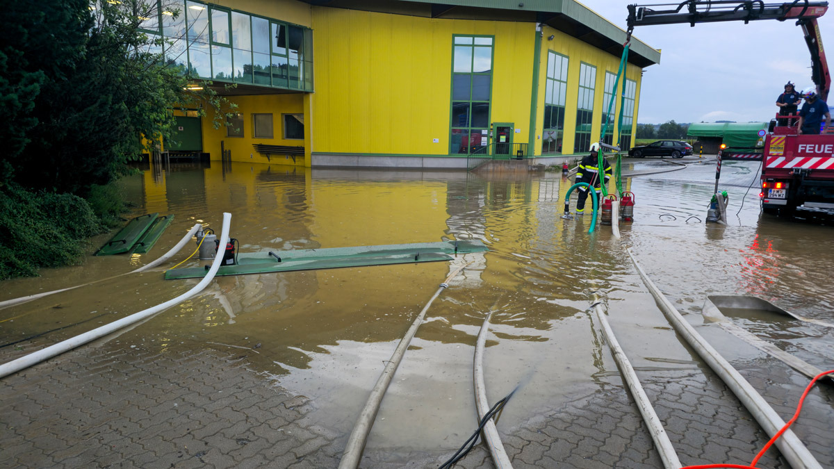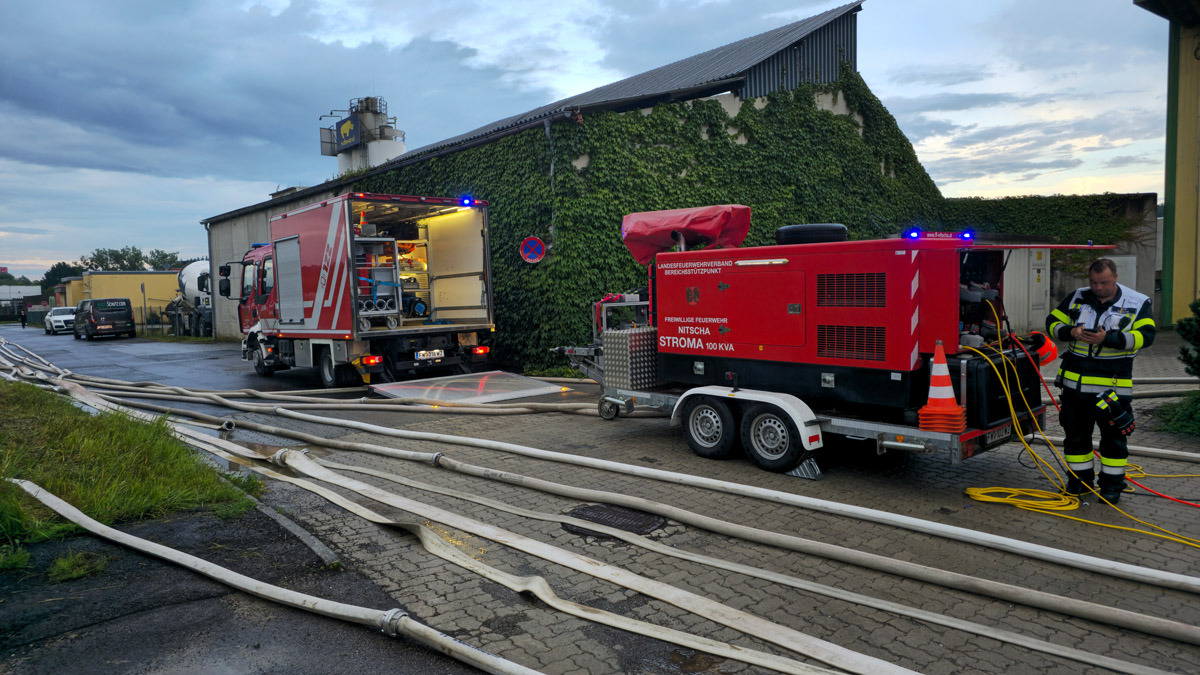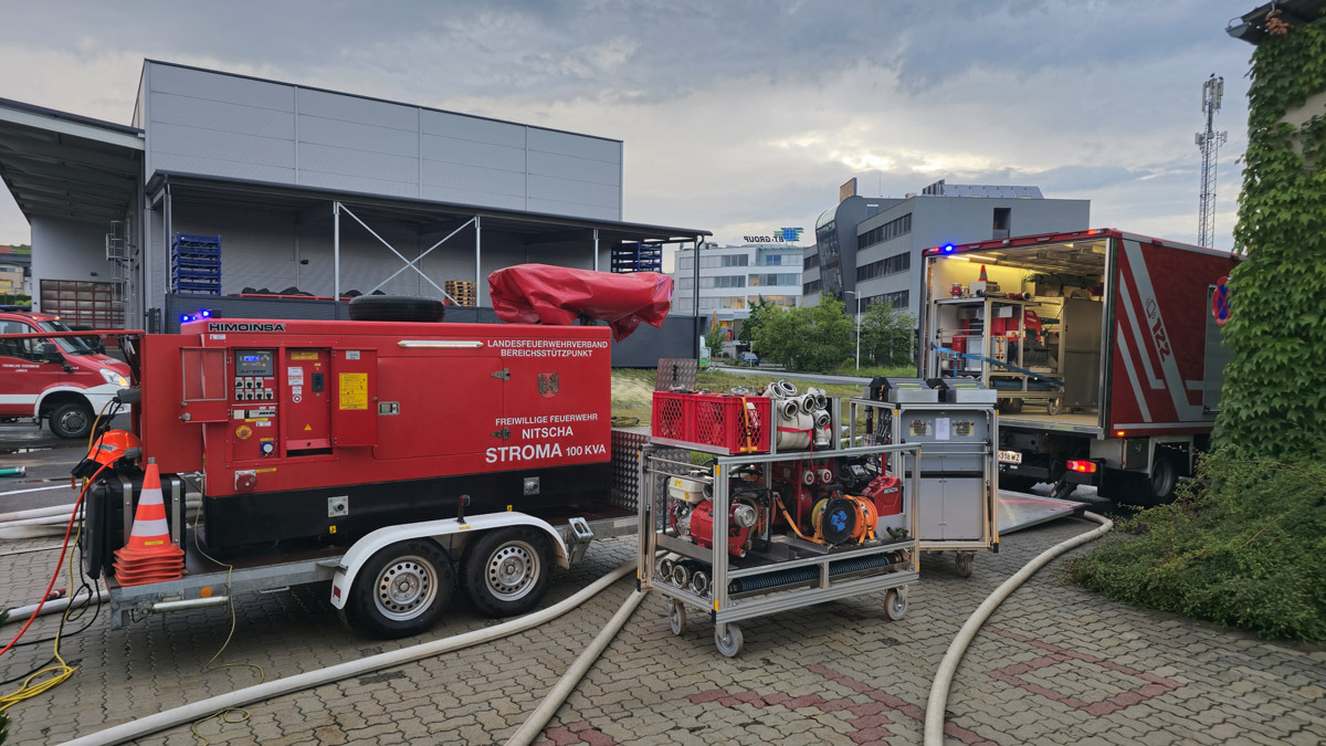 Tätigkeit: Unterstützung der FF Ludersdorf bei Auspumparbeiten und Straßenreinigungen, Stromversorgung mittels STROMA 100 KVA