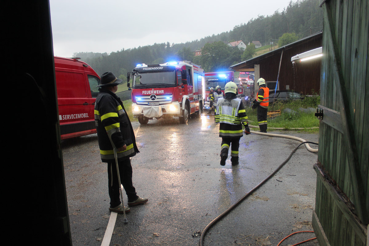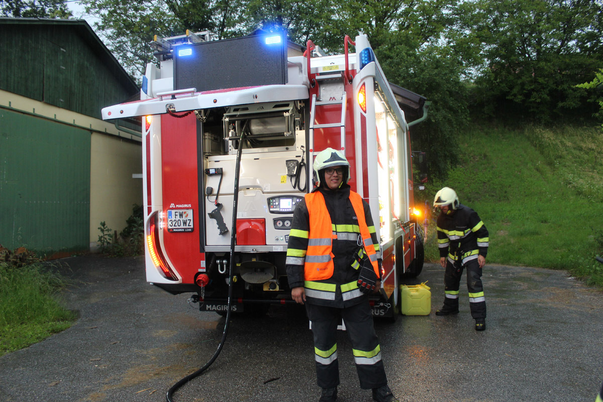 Einsatzkräfte: HLF 2 3000, LKW + STROMA 100 KVA und MTF-A + Anhänger Nitscha mit 18 Mann, FF GLeisdorf, FF Ludersdorf, FF Labuch, FF St. Ruprecht a. d. Raab, FF Albersdorf, FF Prebuch, FF Kühwiesen, FF Weiz, FF Hofstätten a. d. Raab, FF Sulz, FF Sinabelkirchen, FF Markt Hartmannsdorf, OBR Johann Maier-Paar, ABI Rudi Karrer, BGM Hans-Peter Zaunschirm, Gemeindemitarbeiter, Energie AG