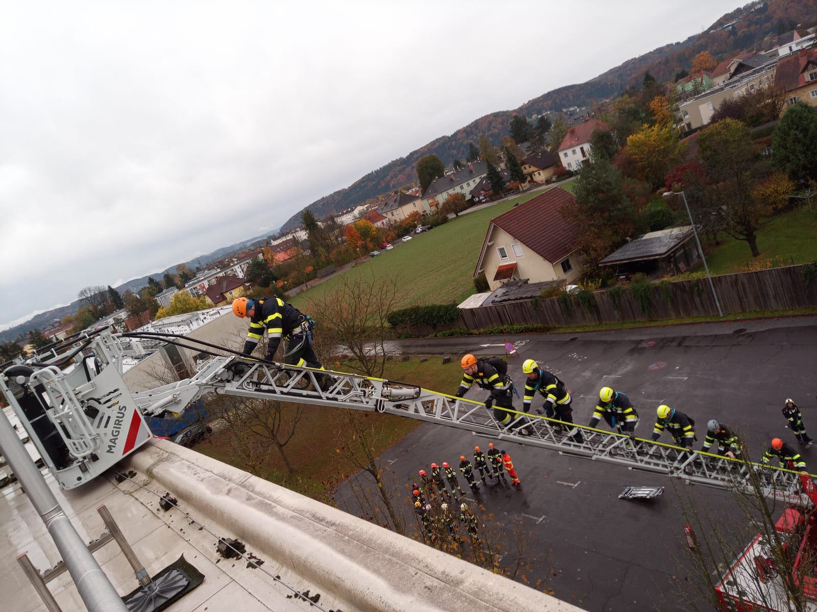 - Arbeiten mit der Drehleiter auf Dächern