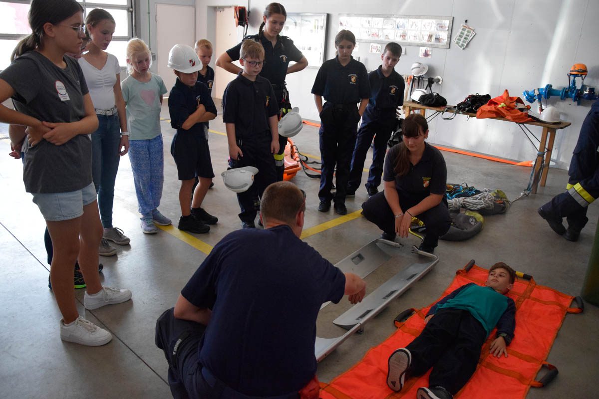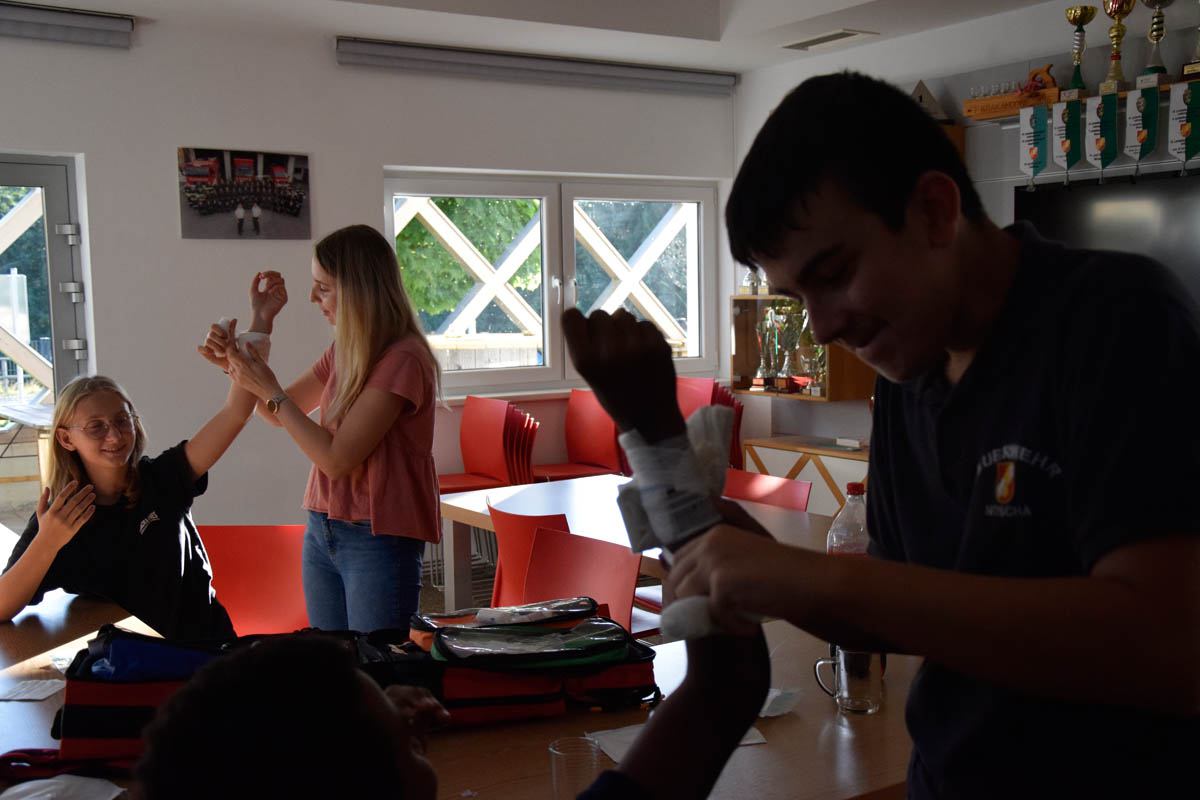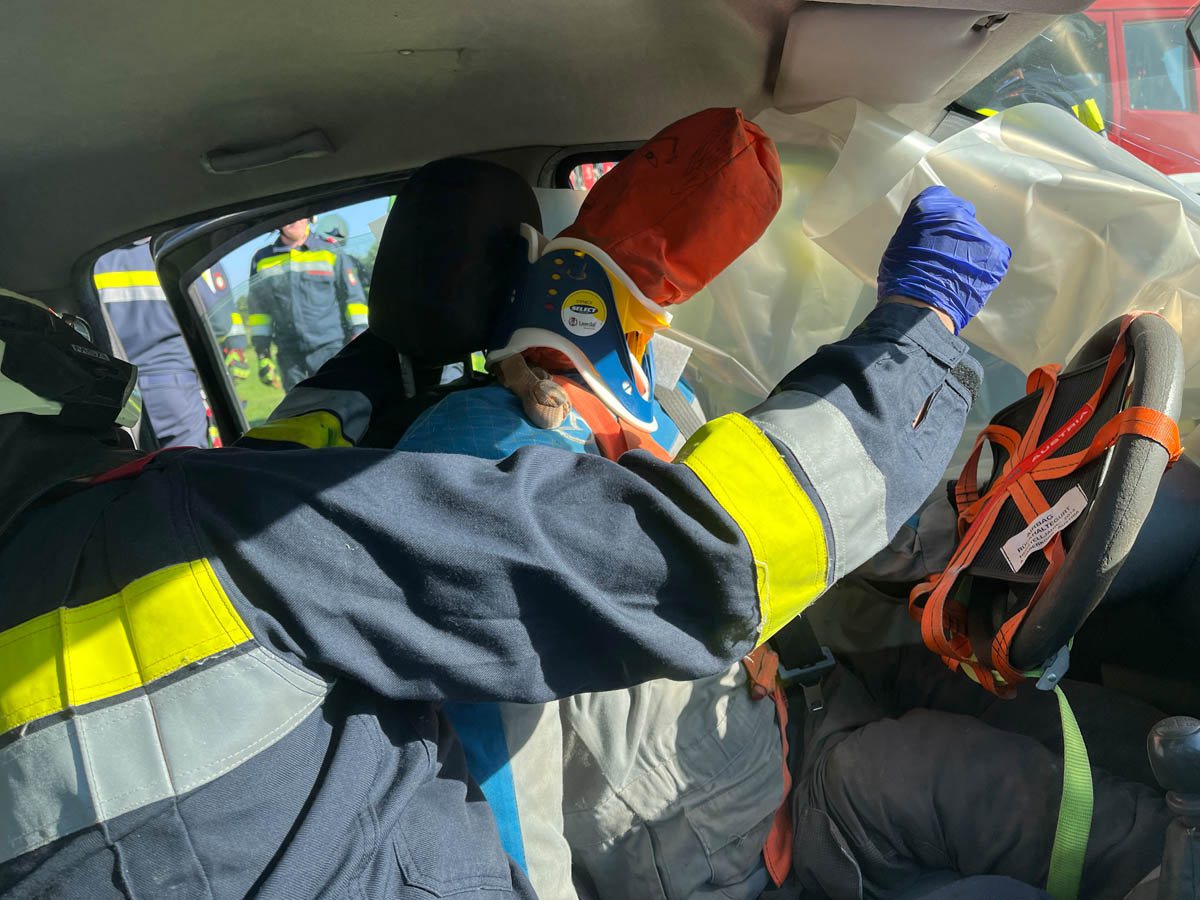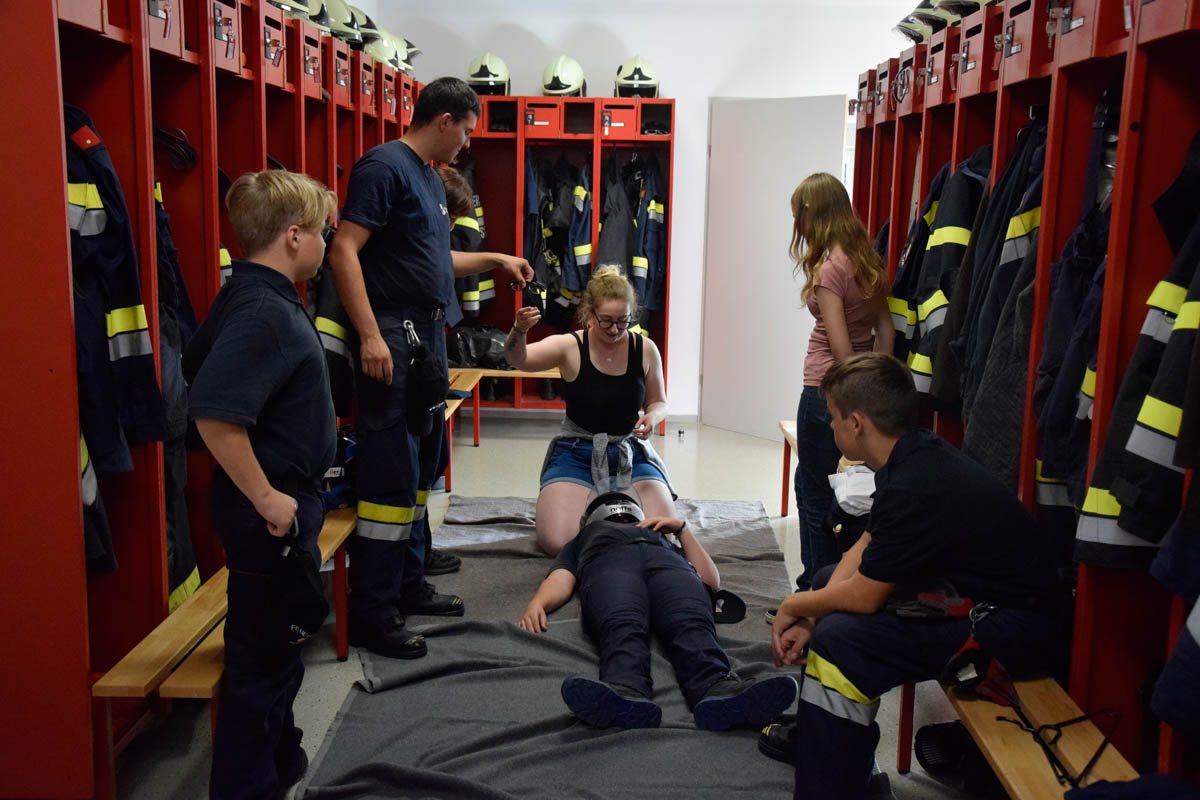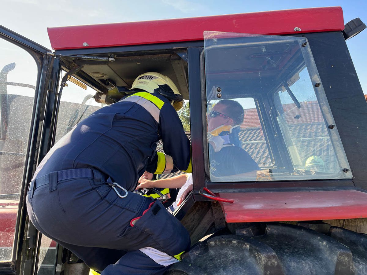 Währenddessen wurde die Löschwasserversorgungunter anderem mittels Tragkraftspritzen aus der vorbeifließenden Raab sichergestellt, und die Brandbekämpfung an mehreren Einsatzabschnitten durchgeführt. Auch die FF Weiz wurde mit ihrem ASF (Atemschutzfahrzeug) zur Übung hinzugezogen, um die verwendeten Atemschutzflaschen vor Ort wieder füllen zu können. Weiters wurde das angrenzende Gefahrengutlager aus Sicherheitsgründen geräumt. Dabei kam es zu einem Gefahrgutunfall, bei welchem ein IBC-Container beschädigt wurde. Durch das auslaufende Medium wurde eine Person bewusstlos und kam anschließend zum erliegen. Da es sich in der Erstphase um einen unbekannten Stoff handelte, wurde die Absperrgrenze erweitert und ein 3-facher Brandschutz aufgebaut. Ein Atemschutztrupp rüstete sich mit der Schutzstufe 1 aus und begann mit der Menschenrettung, der Ausbreitungsverhinderung sowie der inneren Erkundung. Das auslaufende Produkt wurde aufgefangen, der defekte Tank provisorisch abgedichtet und mittels Gefahrgutpumpe in einen Reservetank umgepumpt.