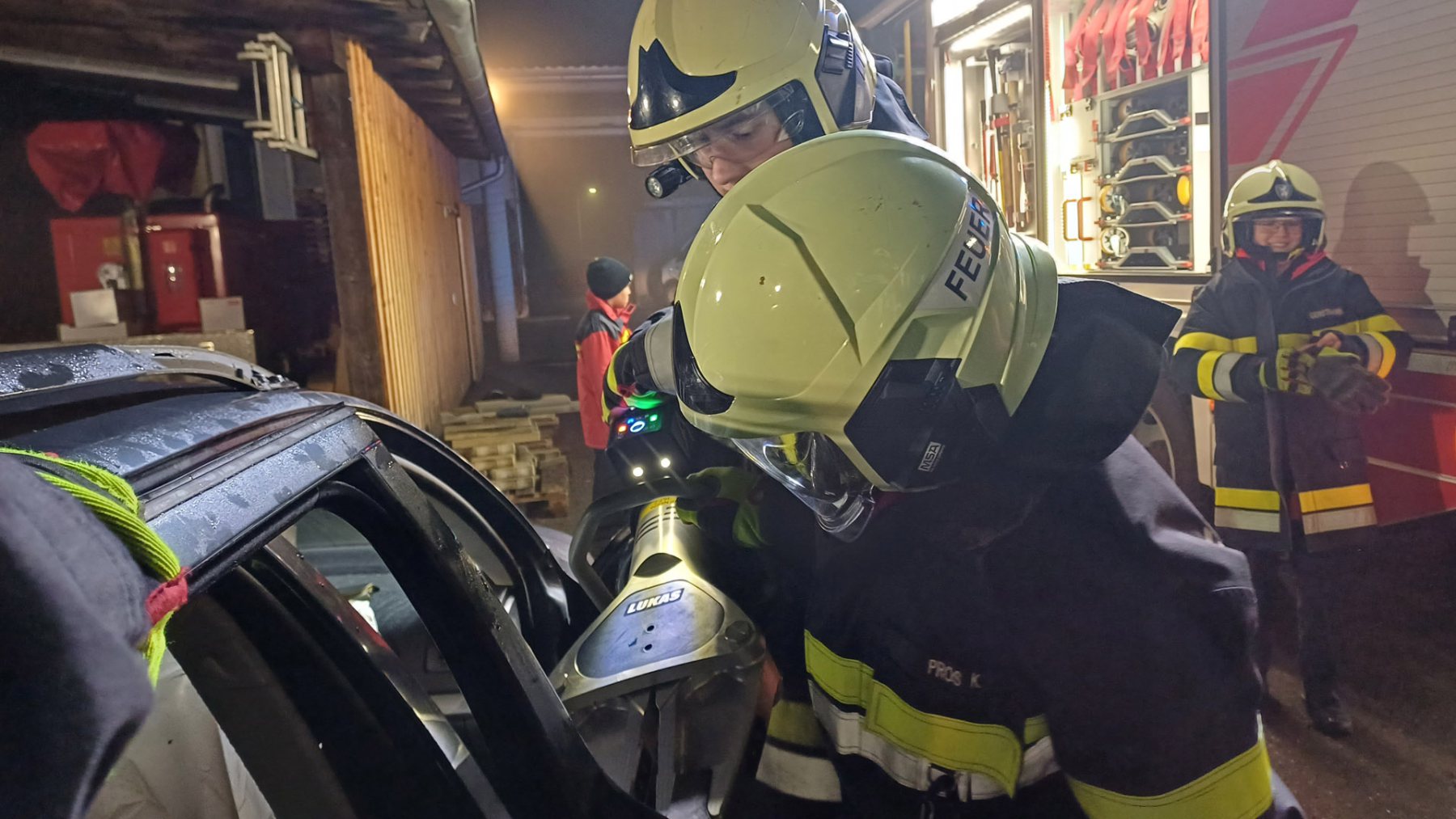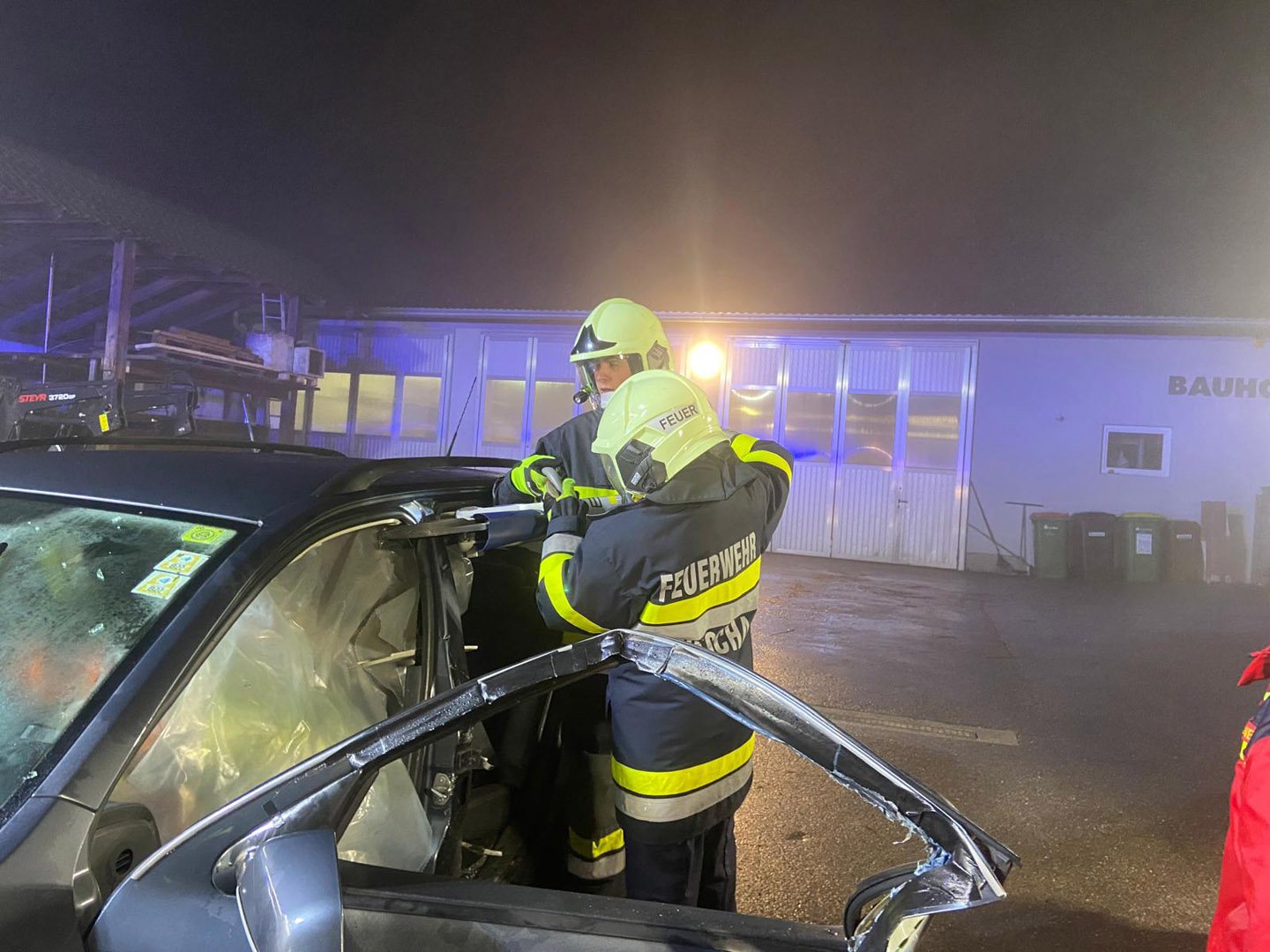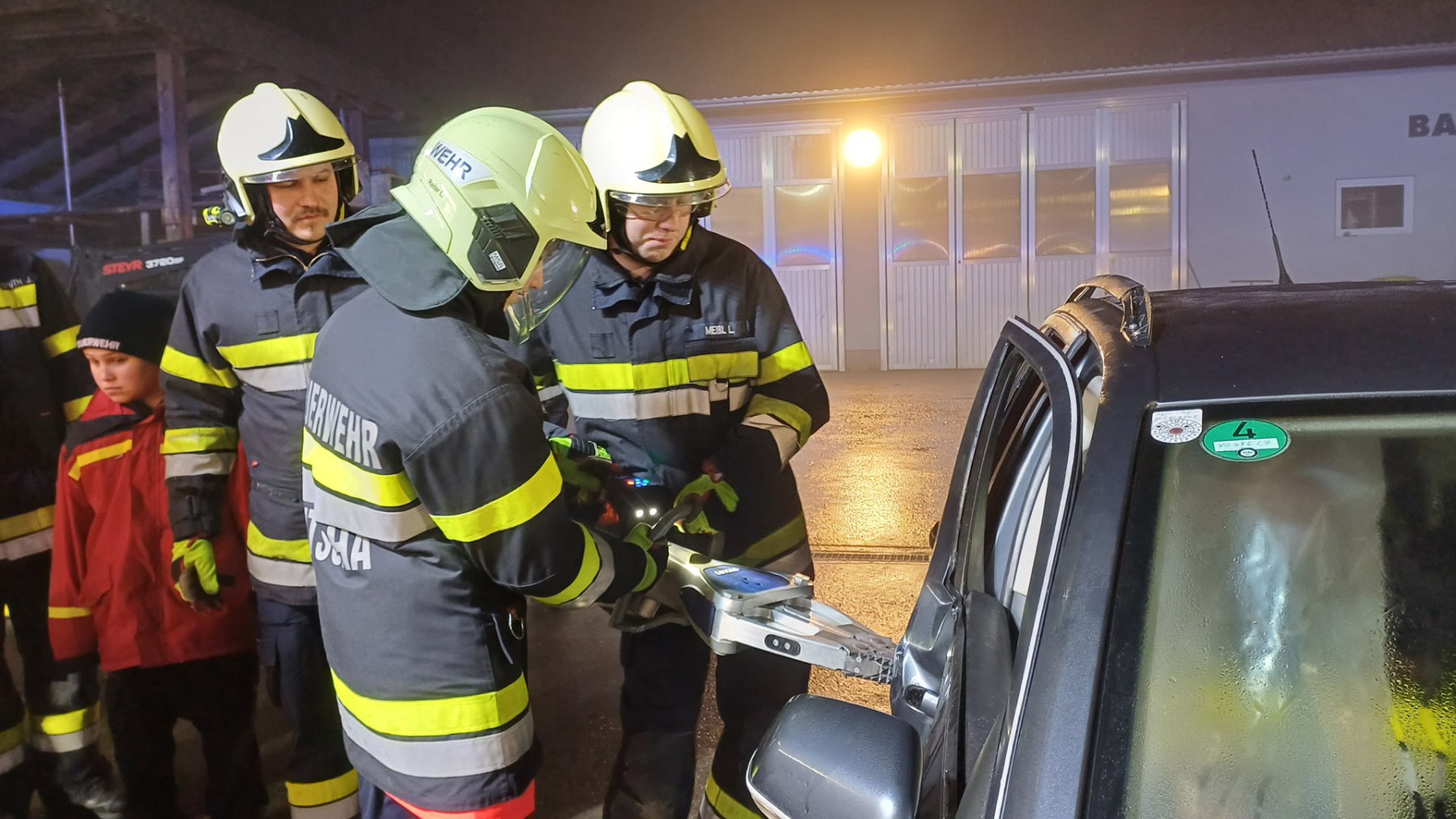 Ein Verkehrsunfall mit eingeklemmter Person wurde bei einer weiteren Station simuliert. Dabei erklärte LM d. F. Dominik Neuhold die taktischen Hintergründe einer Menschenrettung sowie die Aufgaben des inneren Retters.