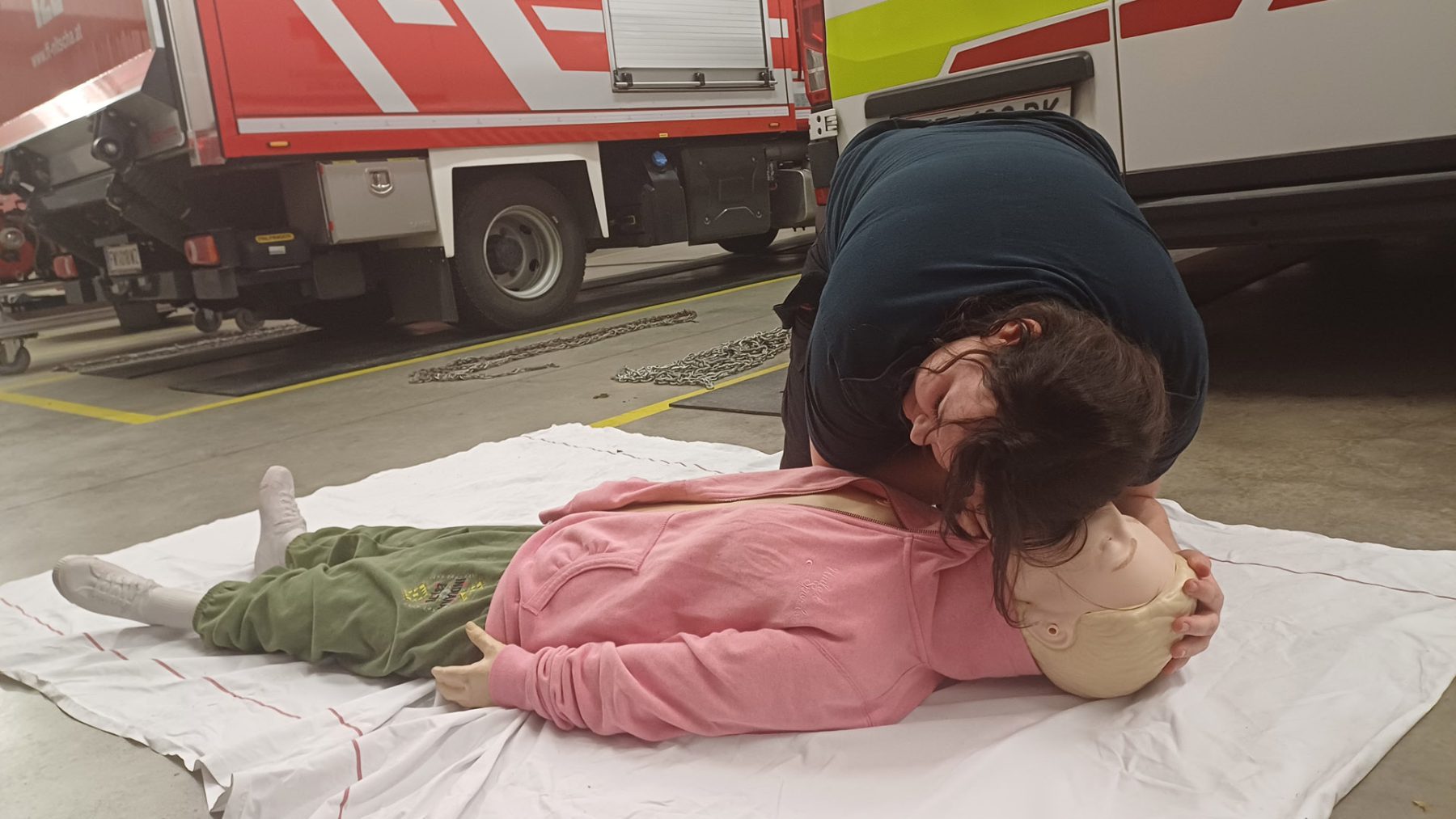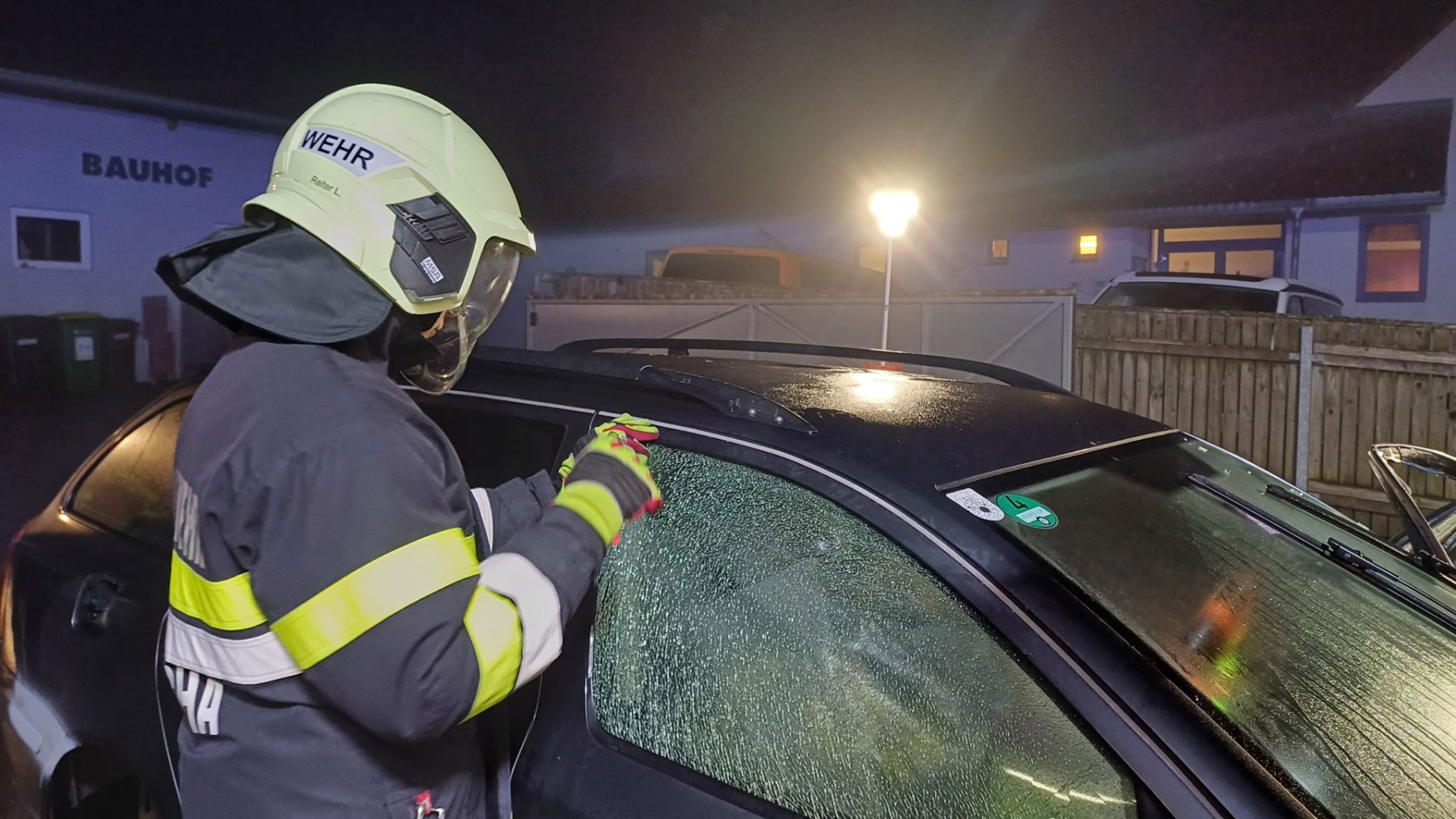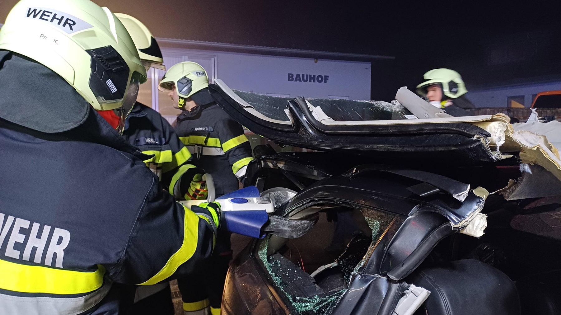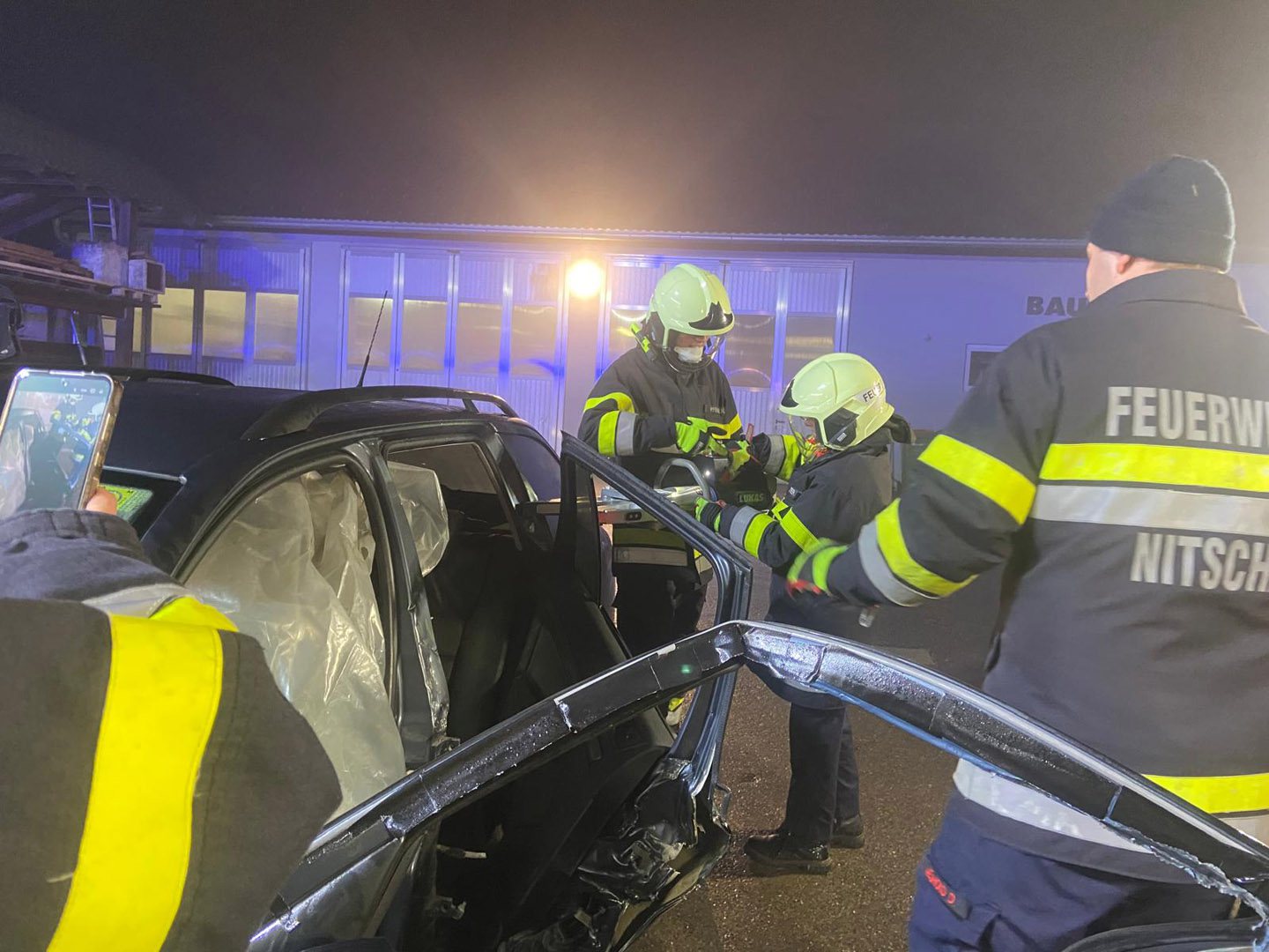 Ein Verkehrsunfall mit eingeklemmter Person wurde bei einer weiteren Station simuliert. Dabei erklärte LM d. F. Dominik Neuhold die taktischen Hintergründe einer Menschenrettung sowie die Aufgaben des inneren Retters.