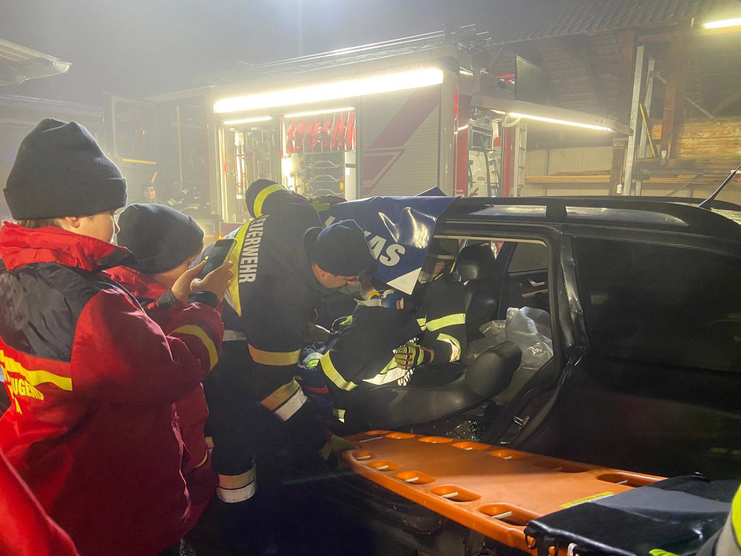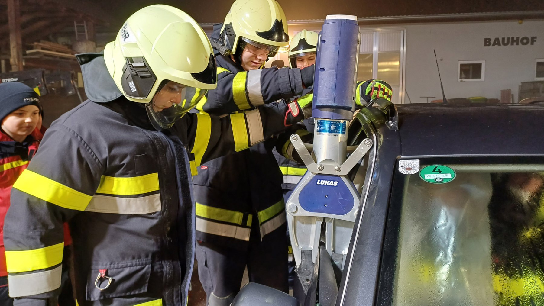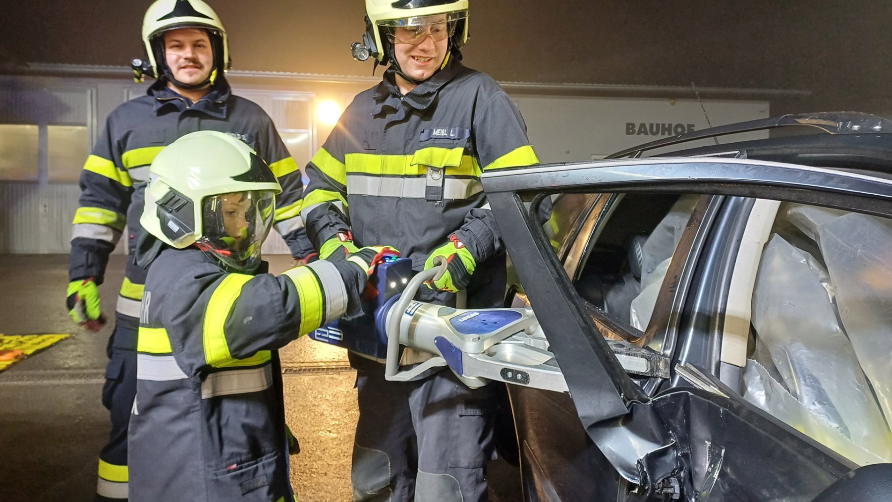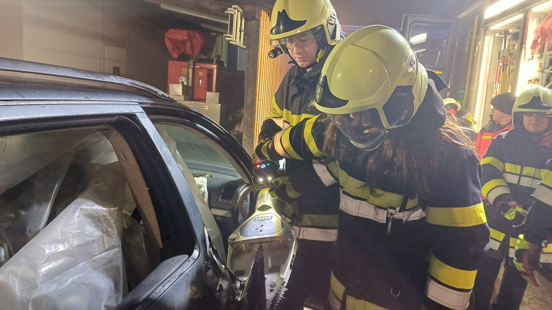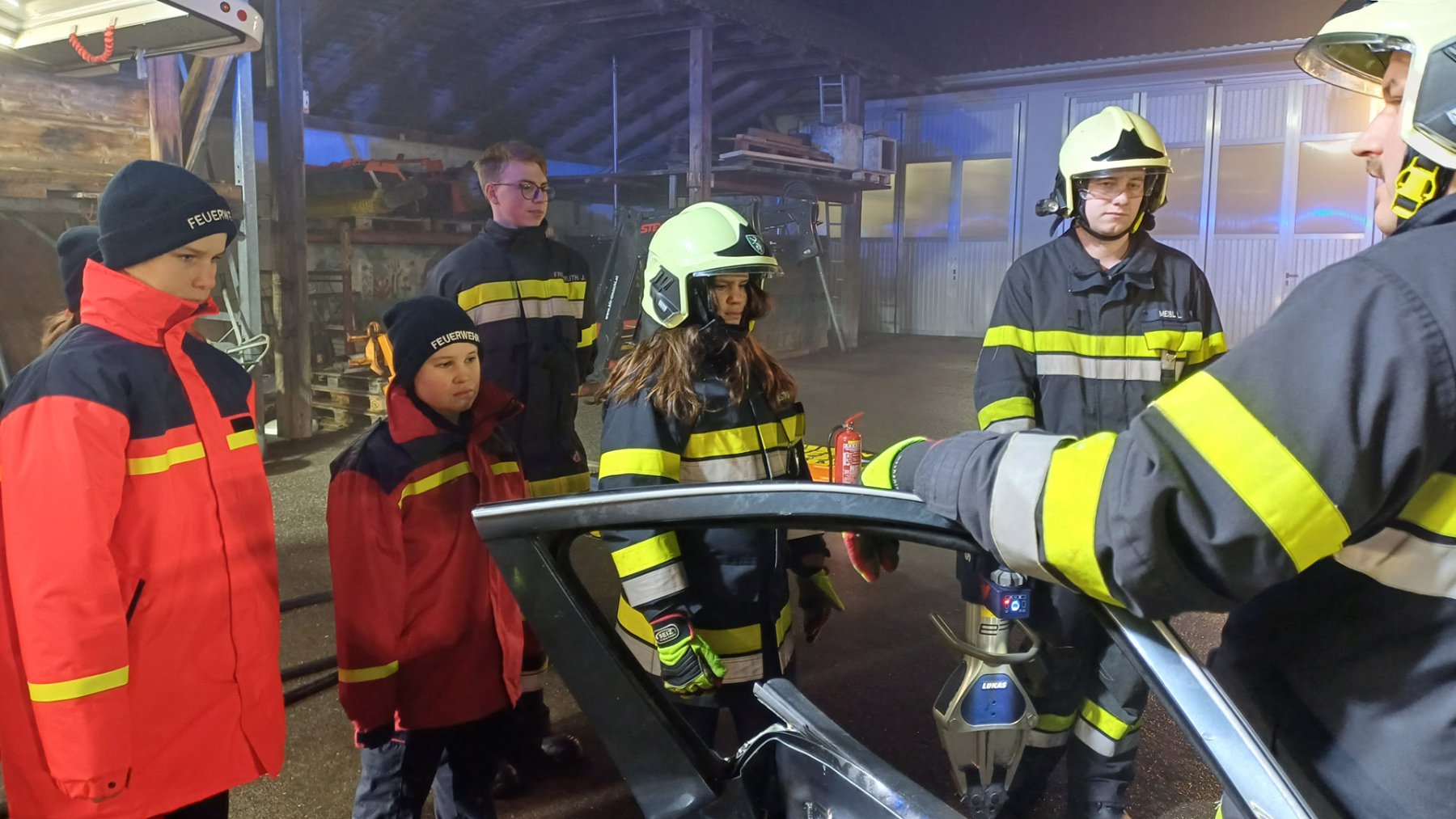 Im Anschluss konnten die Jugendlichen – natürlich nur im Beisein eines aktiven Feuerwehrkameraden – den Umgang mit dem Akkubetriebenen Rettungsgerät selbst an einem PKW ausprobieren.