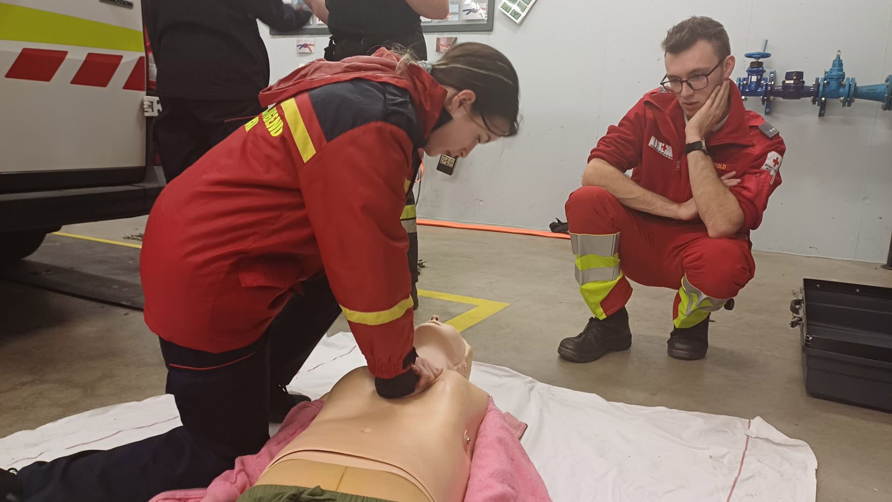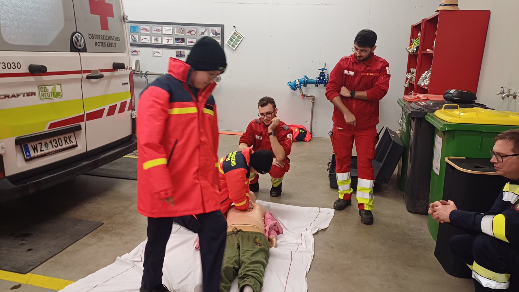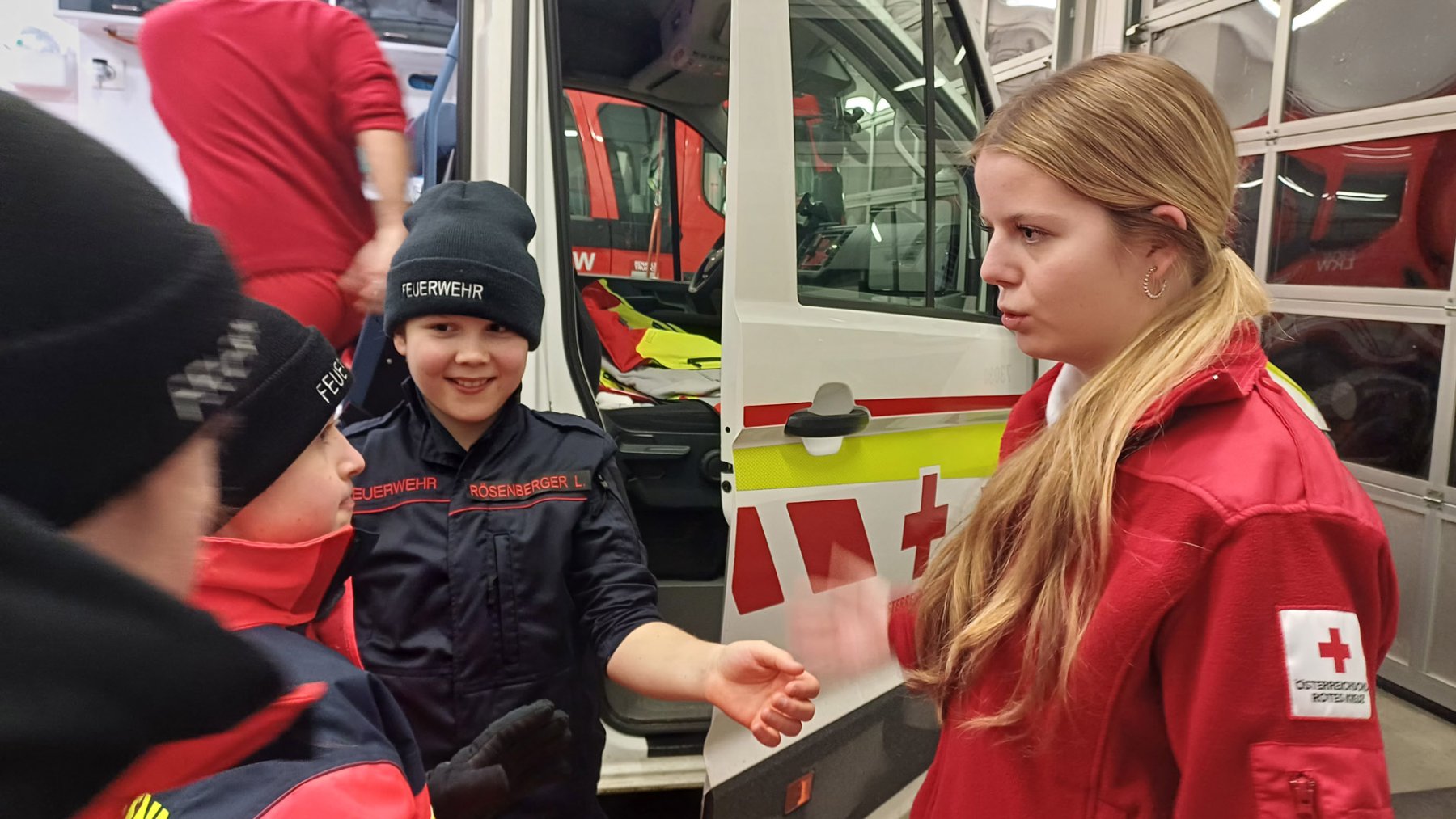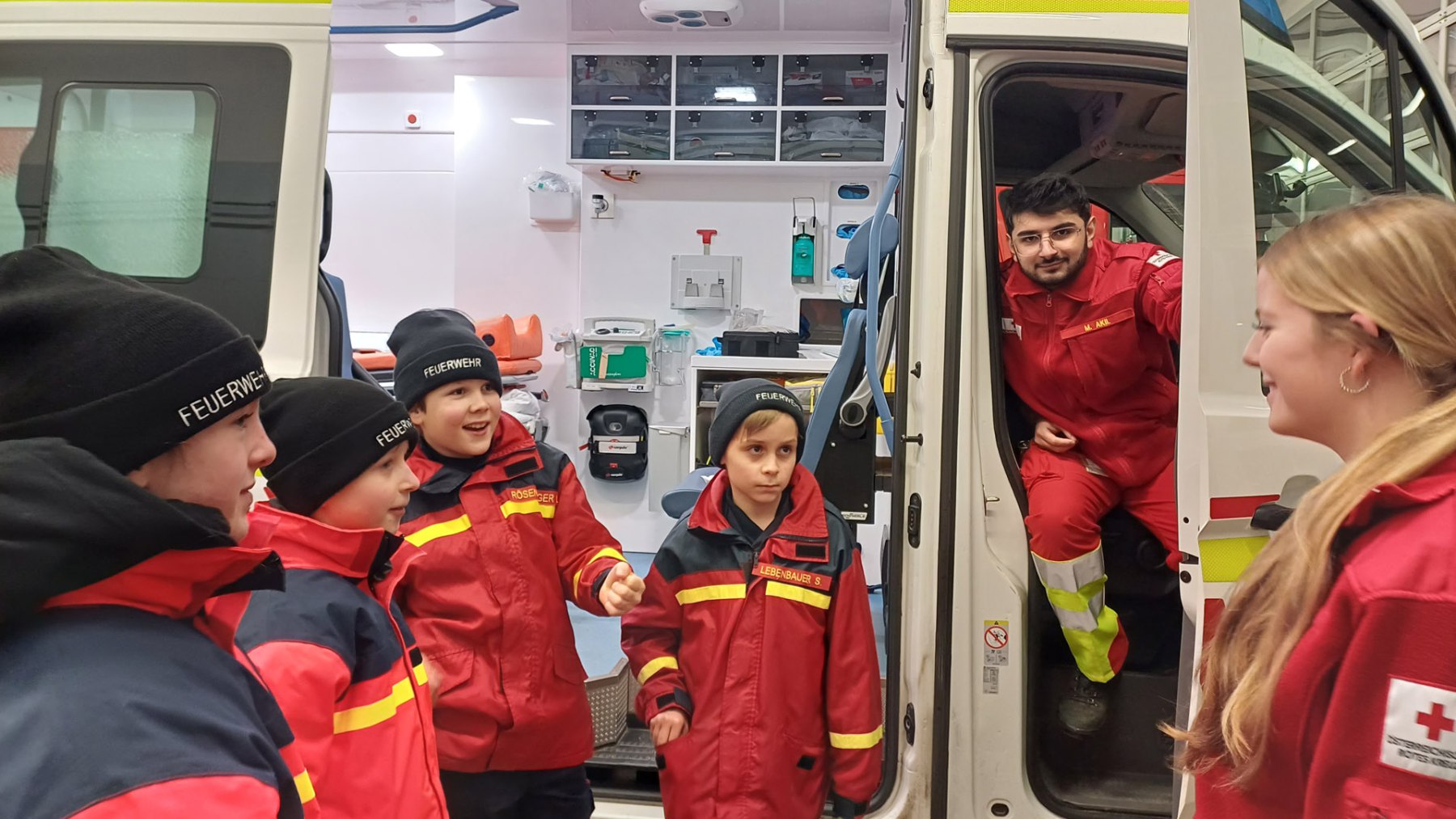 Bei der Station des Roten Kreuzes wurde den Jugendlichen der Rettungswagen sowie das dazugehörige Equipment vorgestellt. Natürlich durften sie auch selbst beim Versorgen einer verletzten Person mit anpacken.