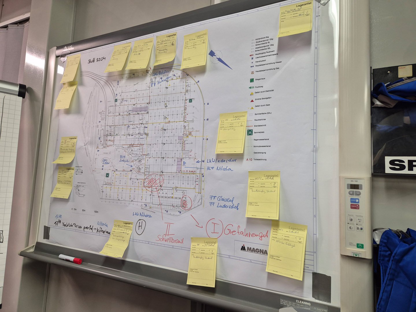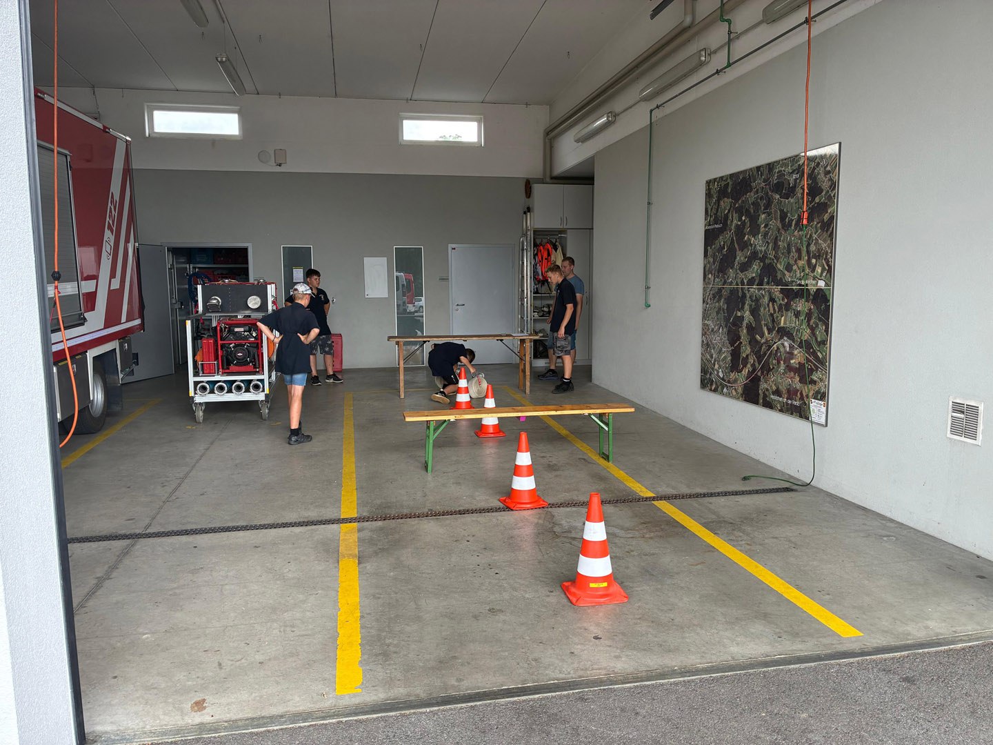 Bei der ersten Lagebesprechung um 07:00 Uhr des Kommandozugs im Feuerwehrhaus Ratten wurde der Führungsstab aufgebaut und die Einsatzszenarien wie folgt aufgeteilt: