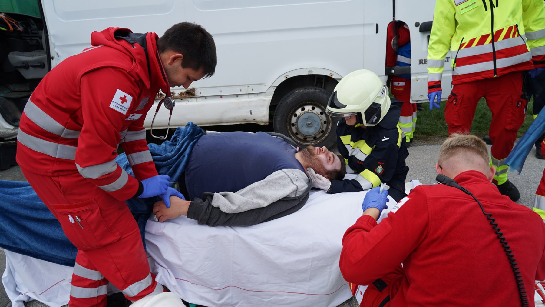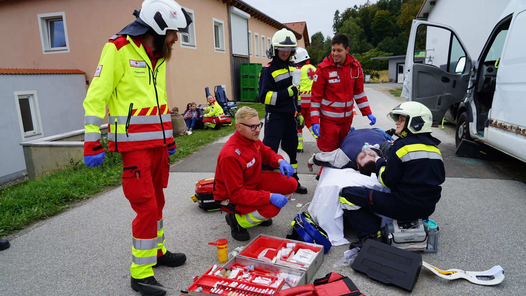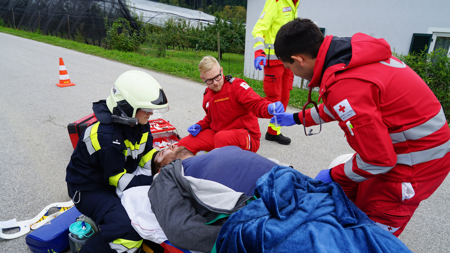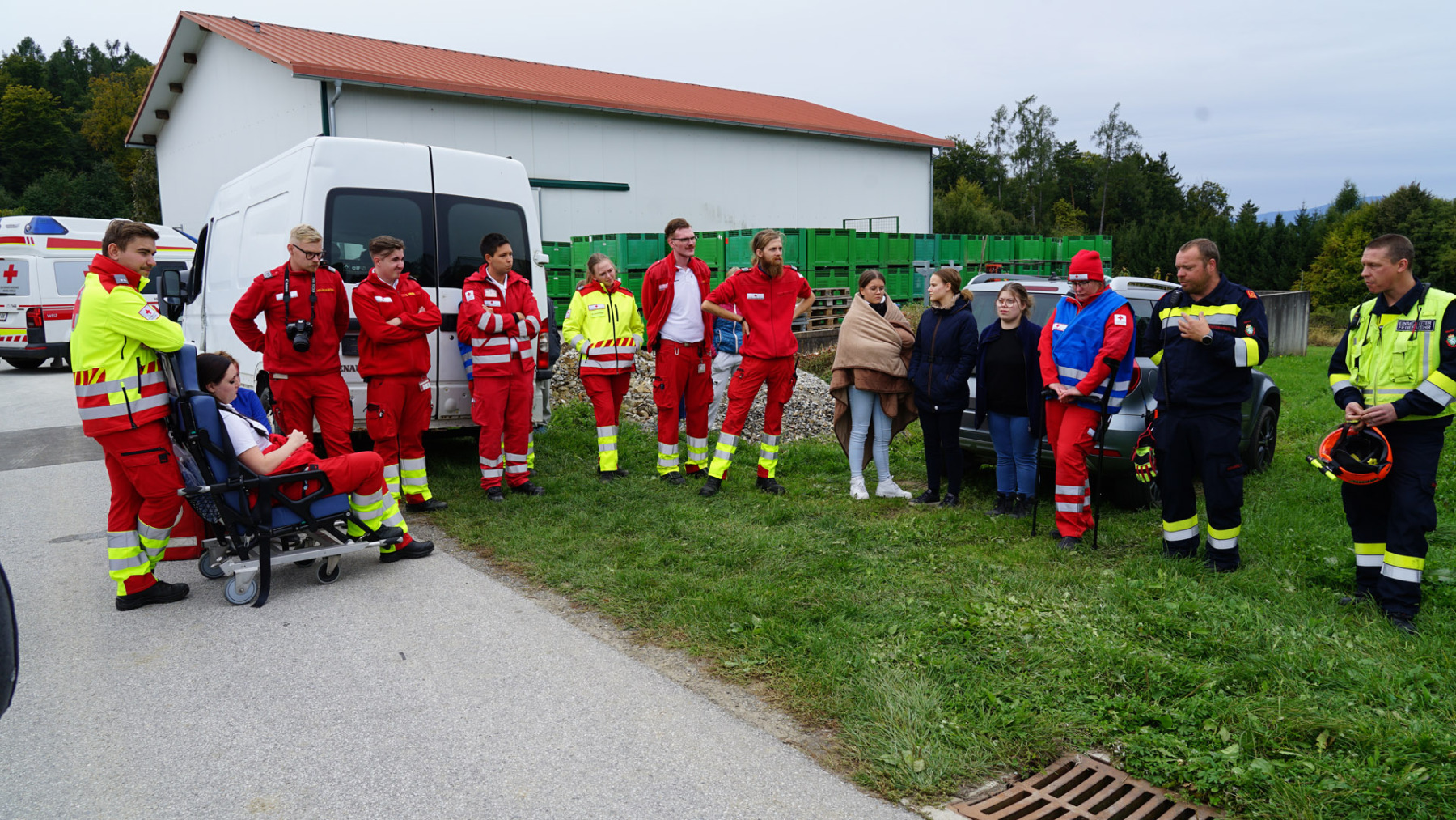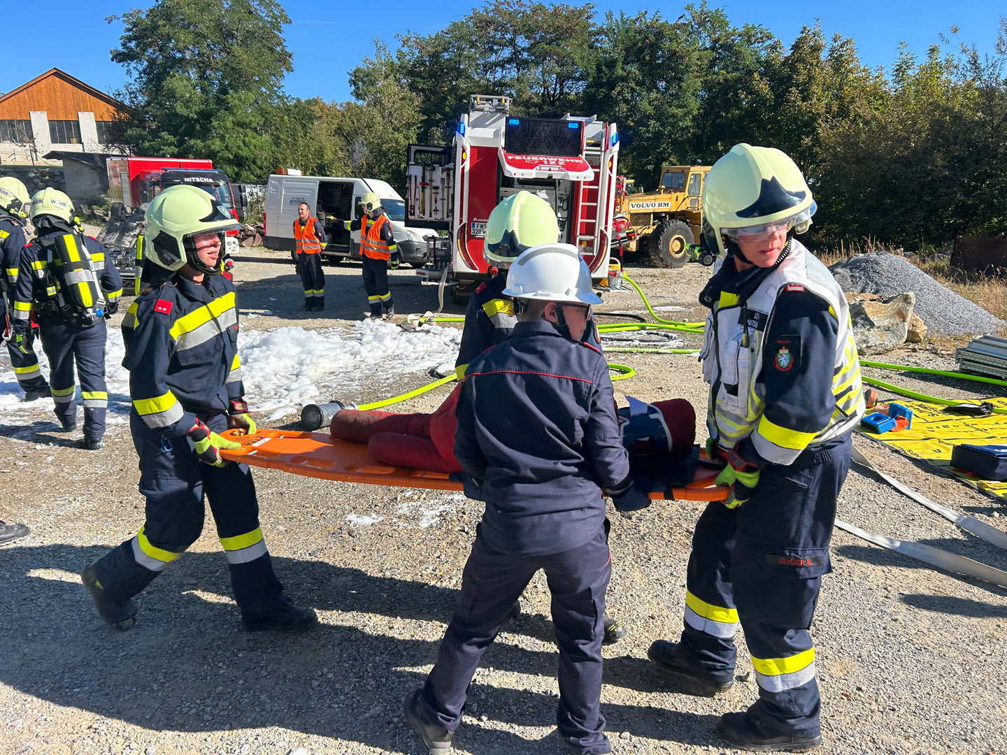 Zusätzlich lief eine Person im Schockzustand vom Sanitätsplatz weg und wurde in einem Förderband eingeklemmt. Die Mitglieder der Feuerwehren und des Roten Kreuzes wurden von den Statisten ordentlich auf Trab gehalten, konnten das Übungsszenario aber trotz Stress mit Bravour abarbeiten.