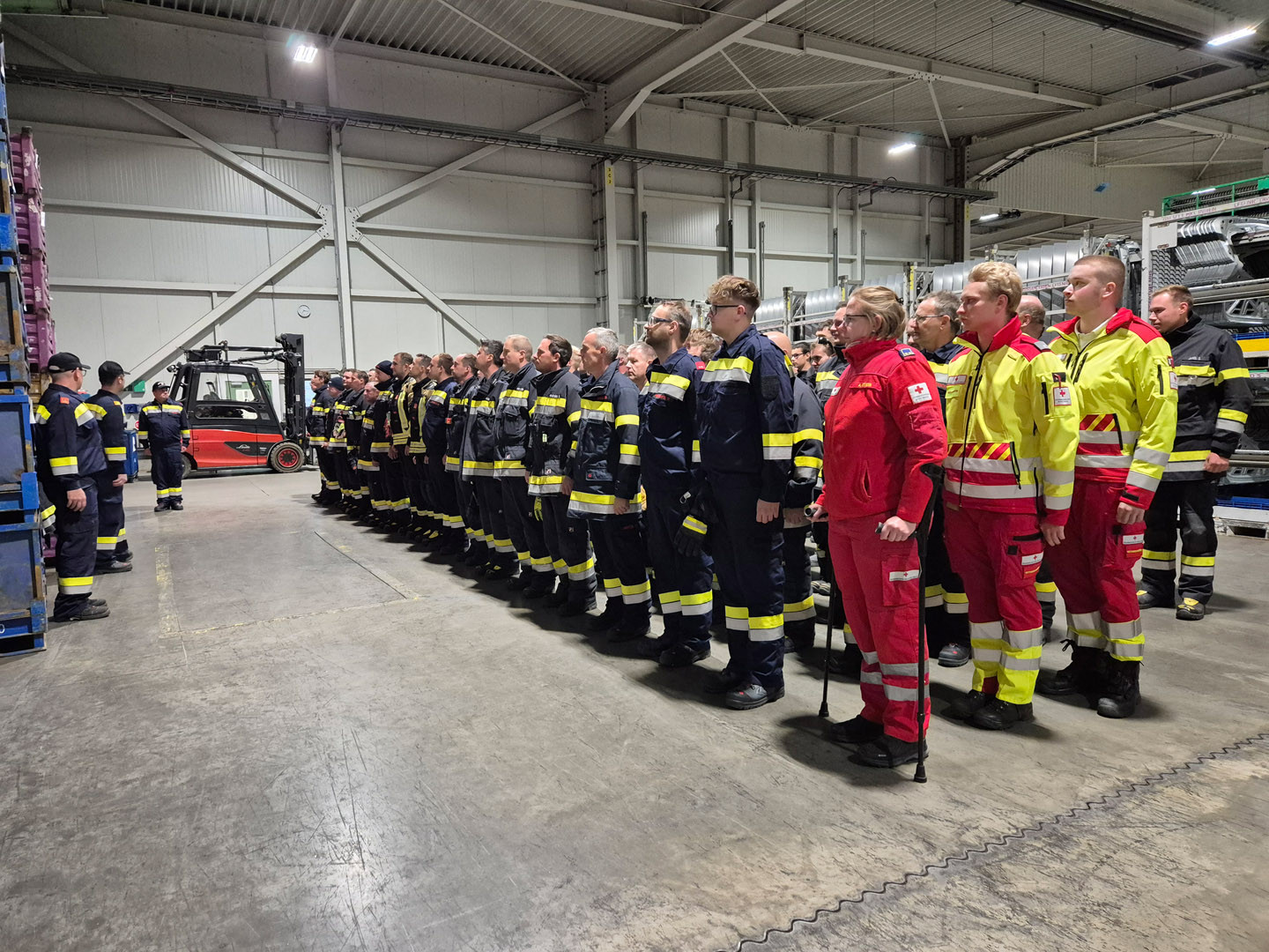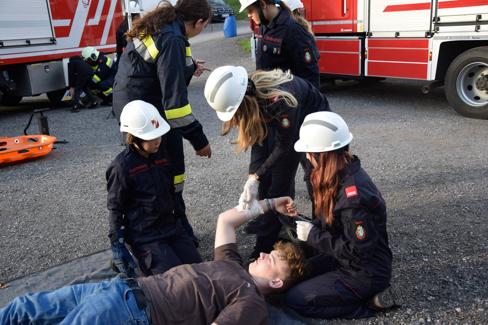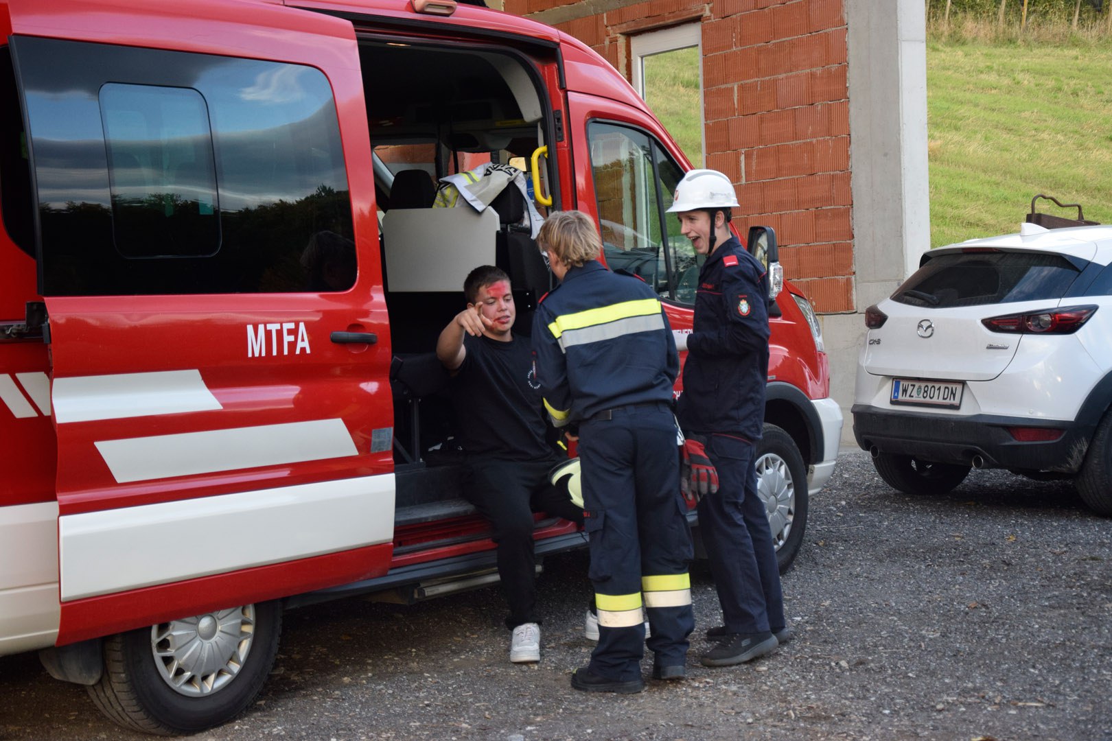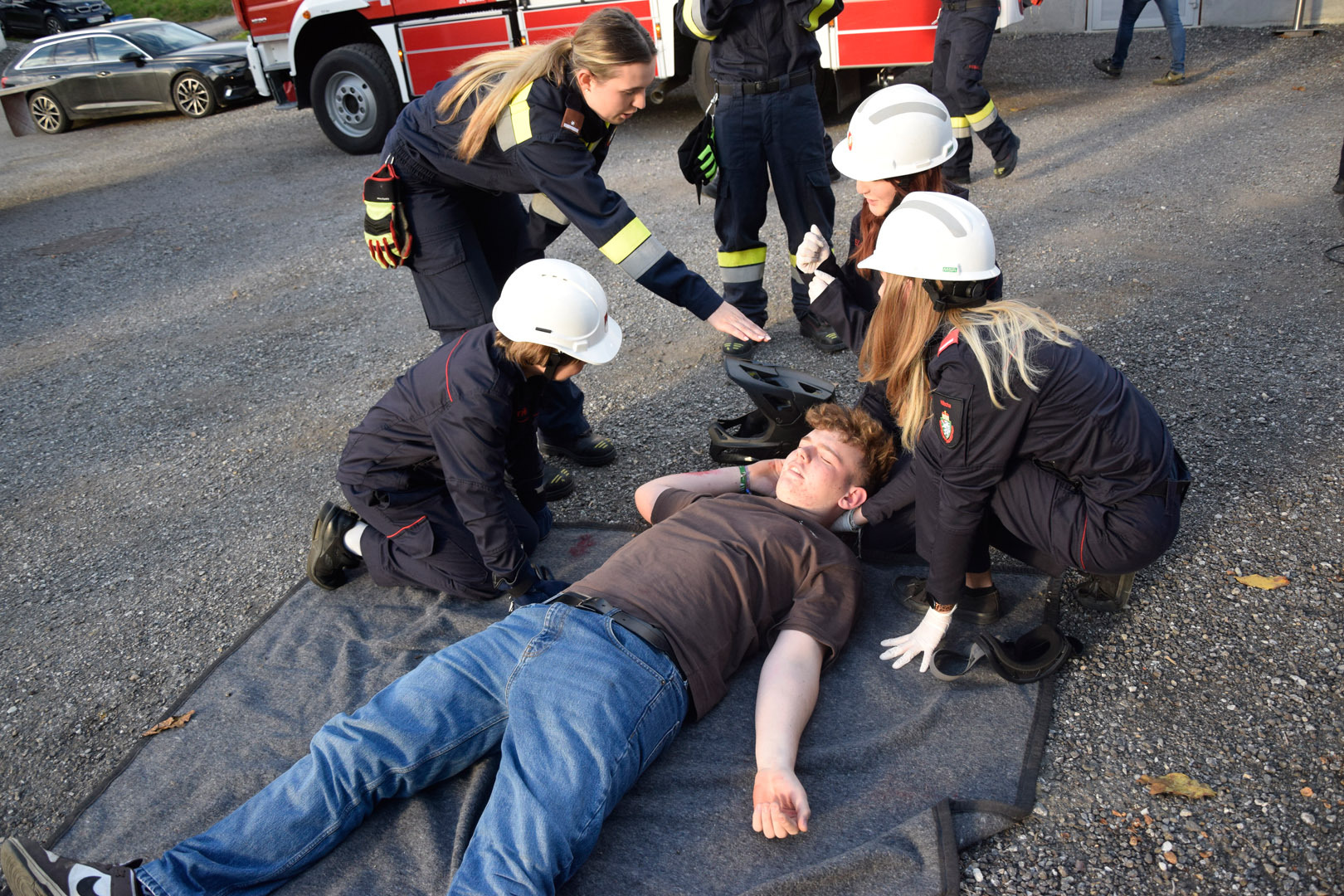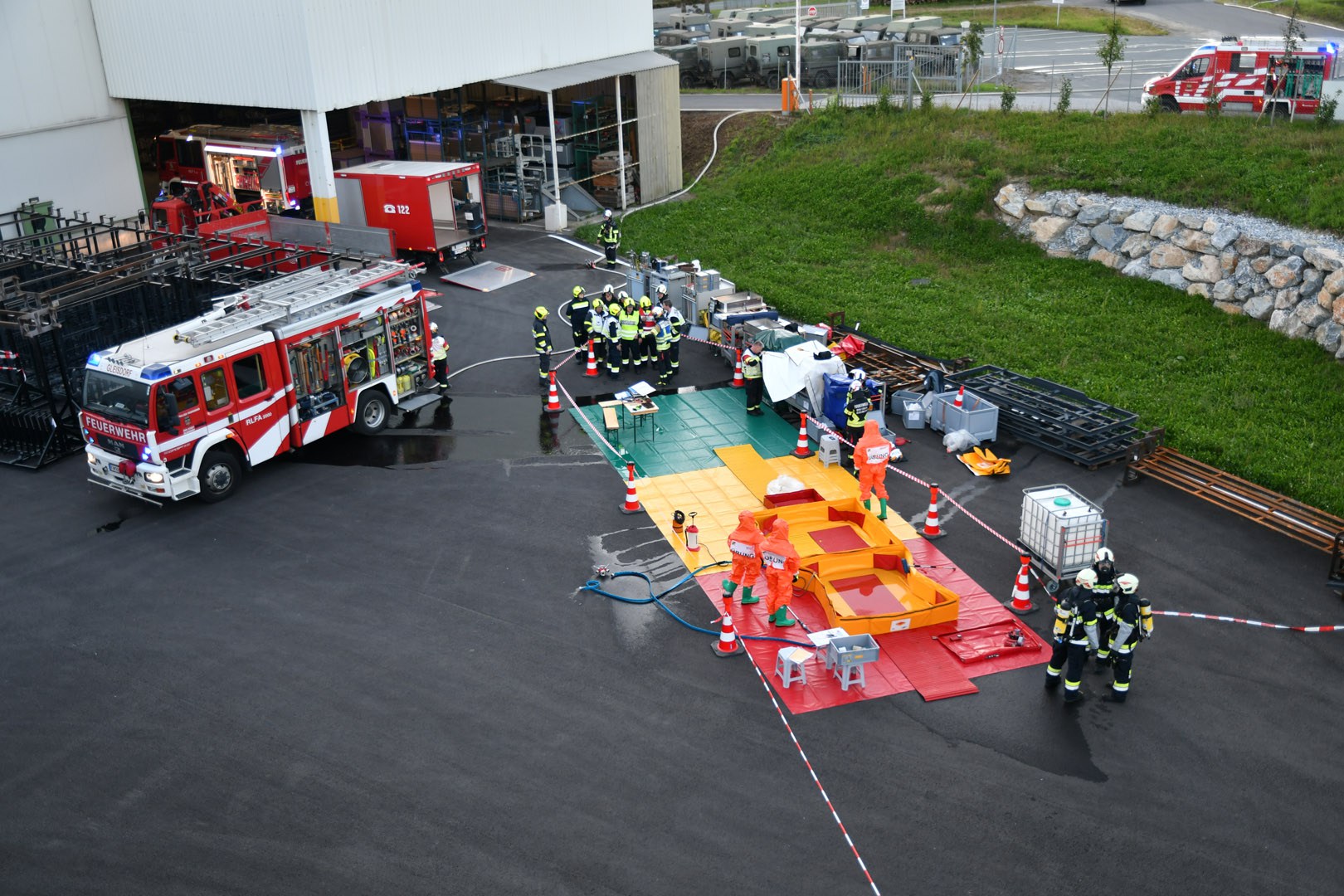 Zusätzlich lief eine Person im Schockzustand vom Sanitätsplatz weg und wurde in einem Förderband eingeklemmt. Die Mitglieder der Feuerwehren und des Roten Kreuzes wurden von den Statisten ordentlich auf Trab gehalten, konnten das Übungsszenario aber trotz Stress mit Bravour abarbeiten.
