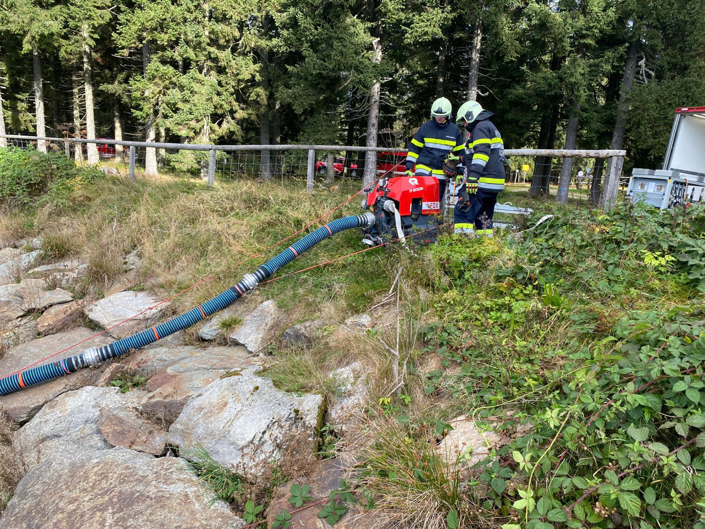 Aufgrund von Blitzschlägen kam es zu einem Waldbrand im Bereich Hauereck. Das Löschwasser wurde bei einem Teich in der Oberen Zeil angesaugt und mithilfe von sechs Tragkraftspritzen über eine Strecke von mehr als 1,2 km zur Brandstelle gefördert. Umgehend wurde mit mehreren C-Rohren die Brandbekämpfung aufgenommen und eine weitere Ausbreitung verhindert.