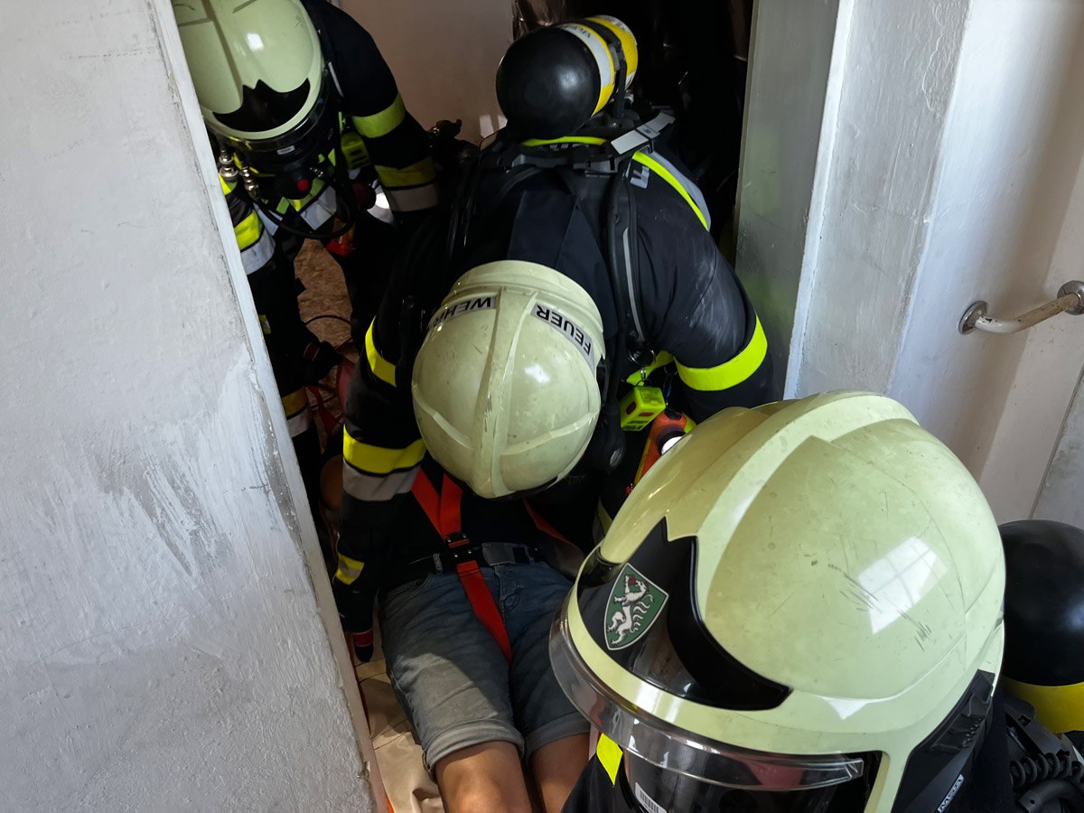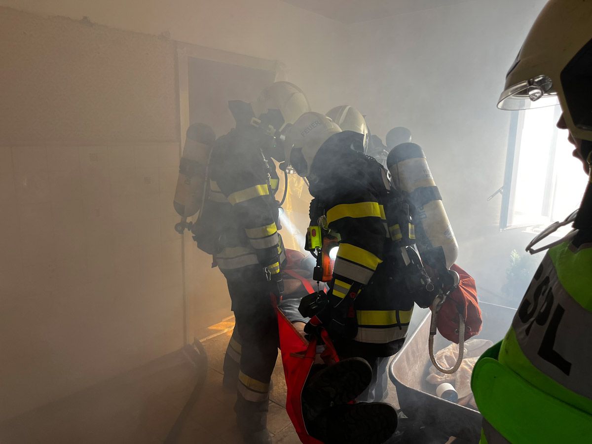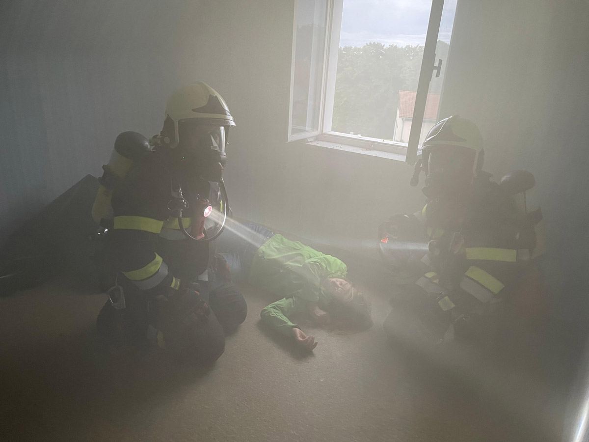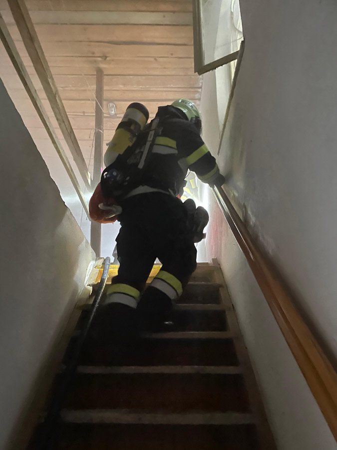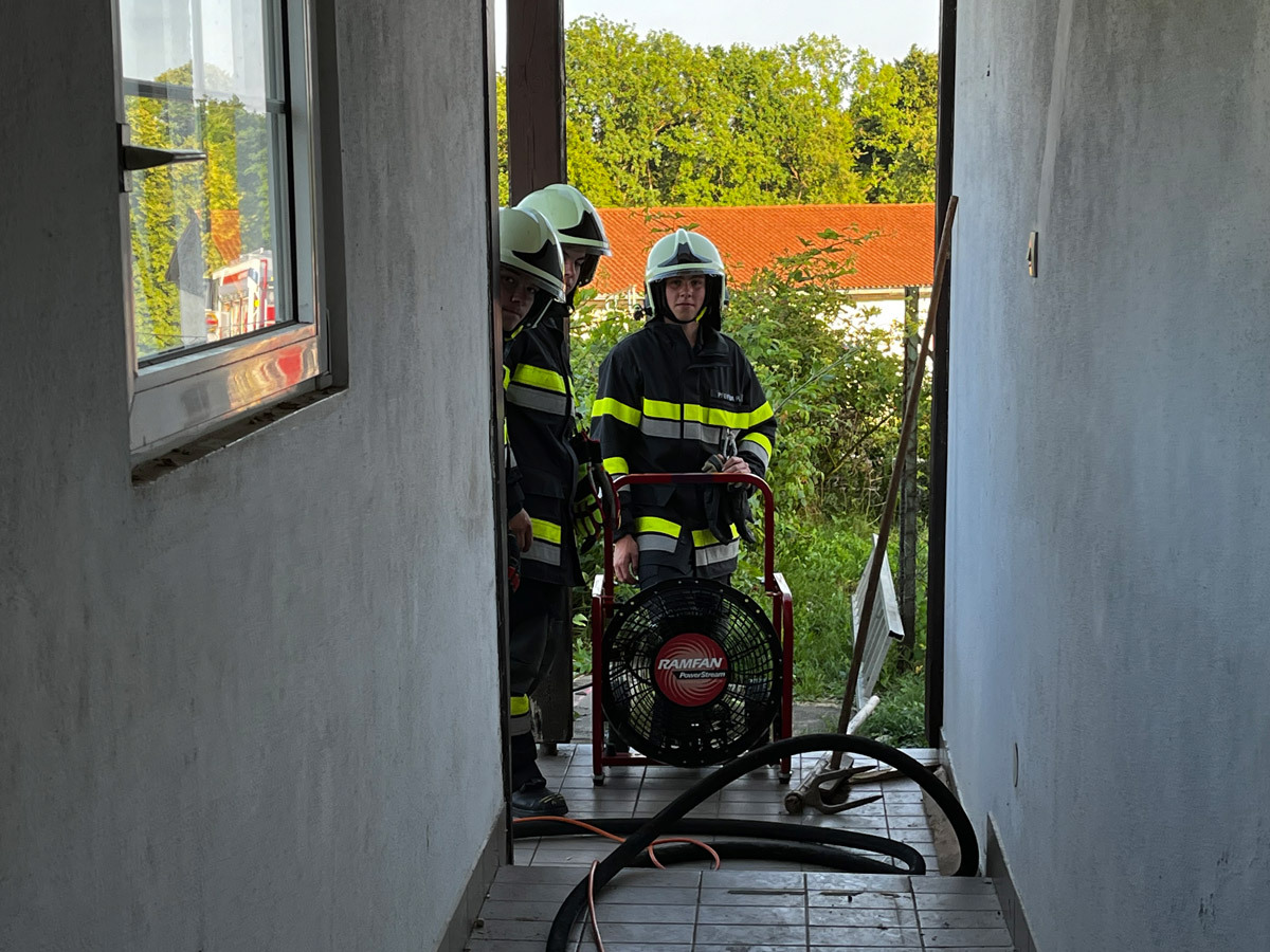 Die größte Herausforderung dieser Übung war für den Atemschutztrupp das Absuchen sämtlicher Räume sowie die Menschenrettung in den sehr engen Räumen. Für unsere jüngeren Kameraden stand die Unterstützung des ATS Trupps, das Arbeiten mit der Außenüberwachung und des Hochleistungslüfters im Vordergrund.