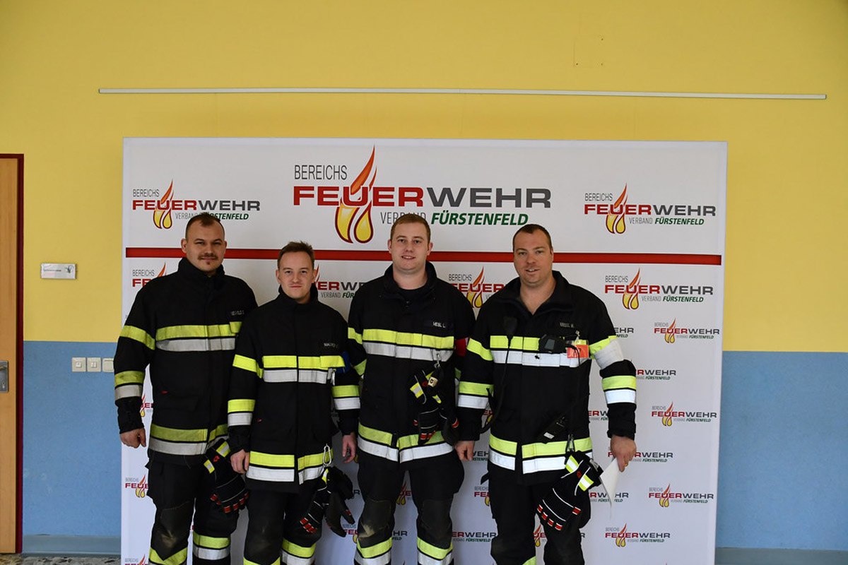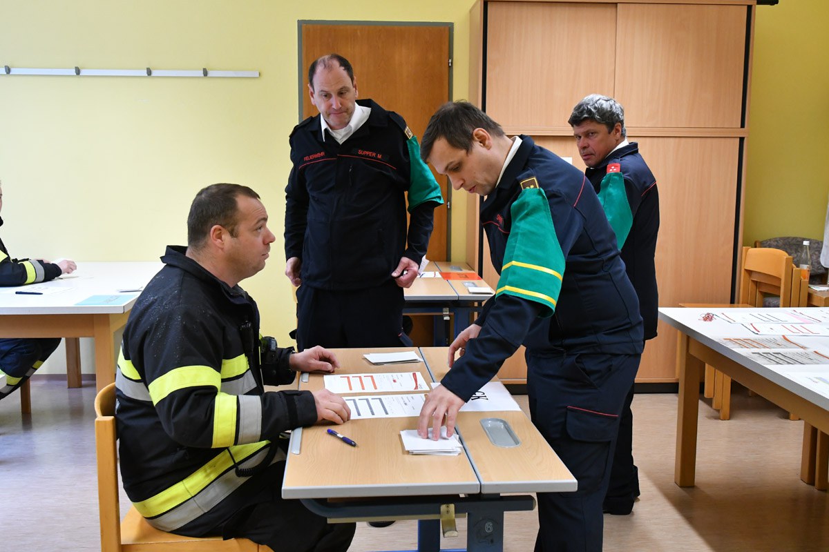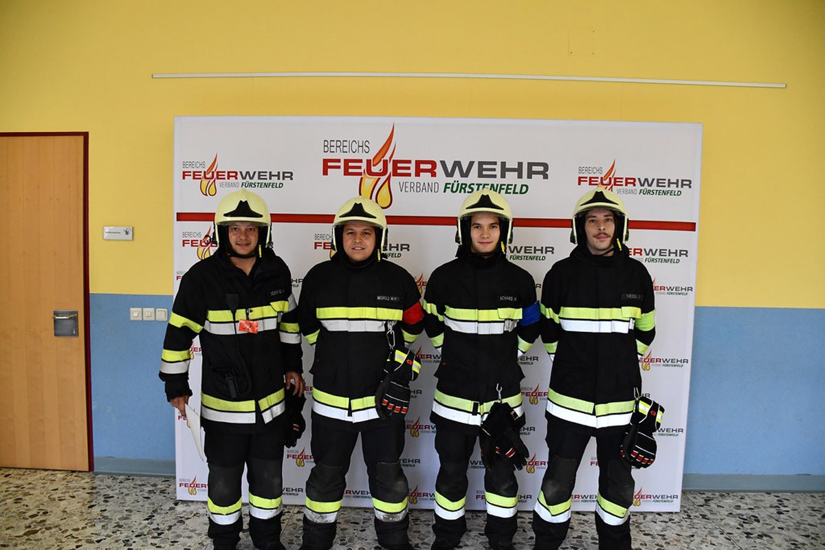 HBI Werner Kriegl, LM Lukas Meißl, LM d. F. Dominik Neuhold, LM d. F. Martin Neuhold, HFM Martin Schanes, OFM Michael Schanes und FM David Maurer in fünf Stationen ihr Können unter Beweis stellen.