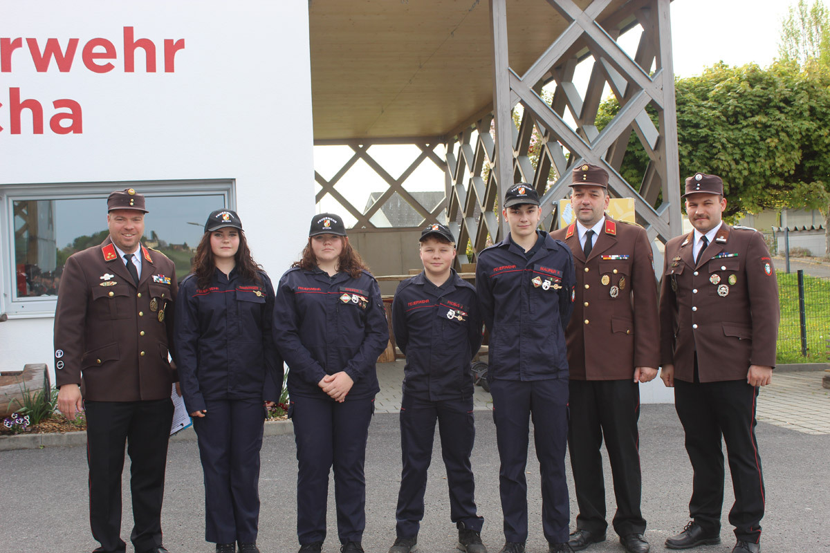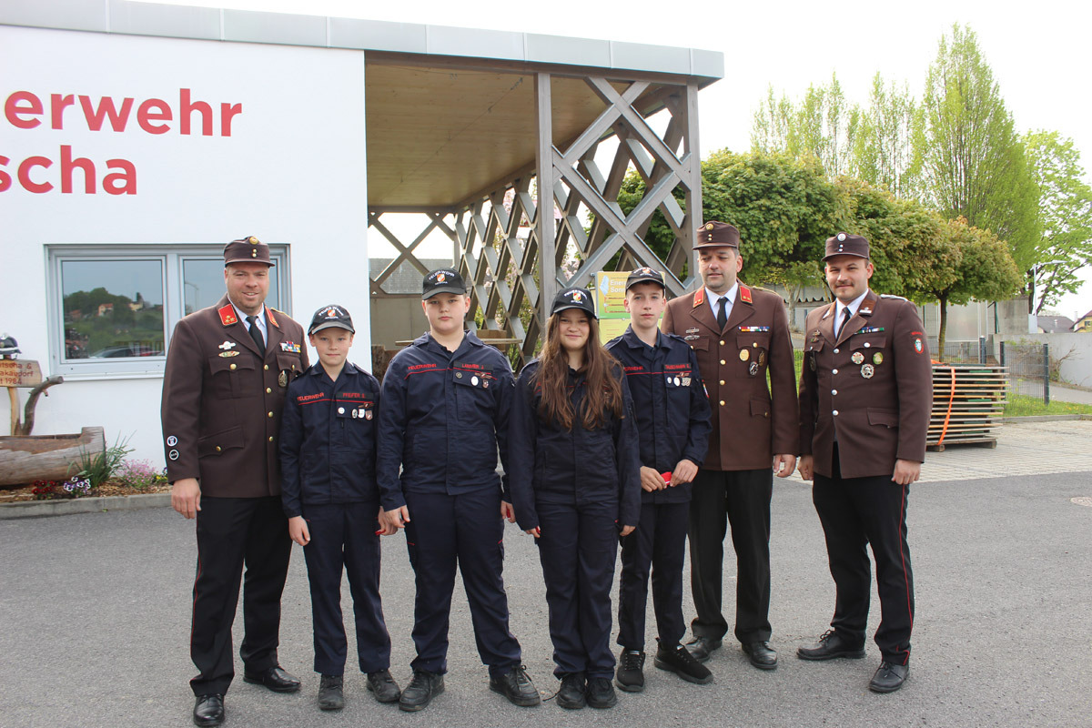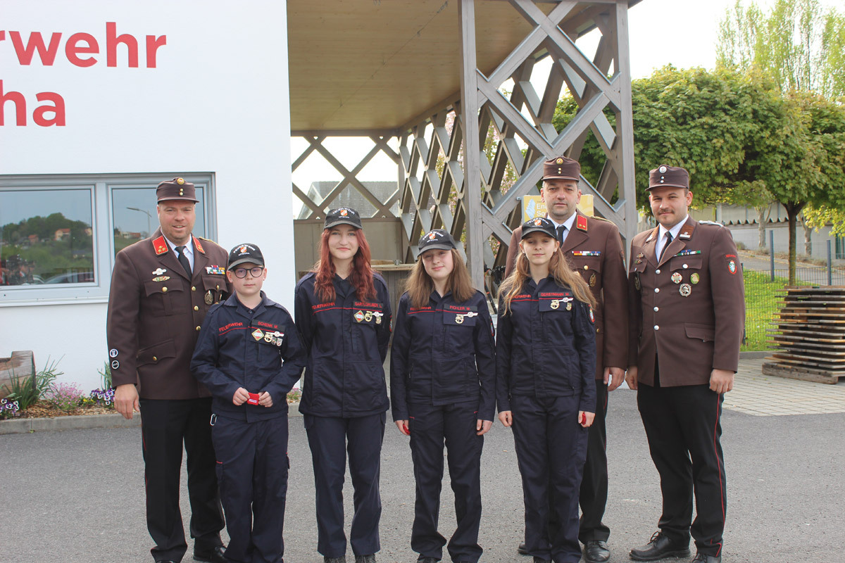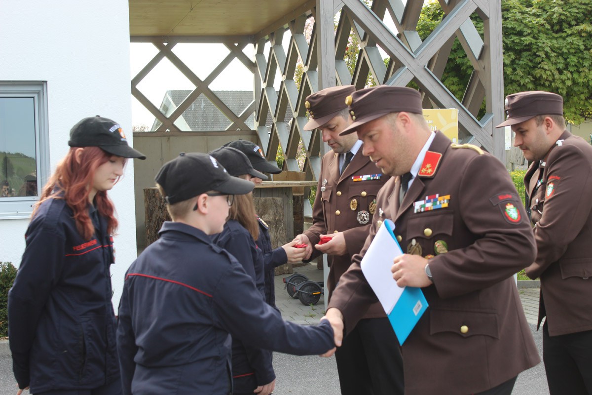 HBI Werner Kriegl, LM Lukas Meißl, LM d. F. Dominik Neuhold, LM d. F. Martin Neuhold, HFM Martin Schanes, OFM Michael Schanes und FM David Maurer in fünf Stationen ihr Können unter Beweis stellen.
