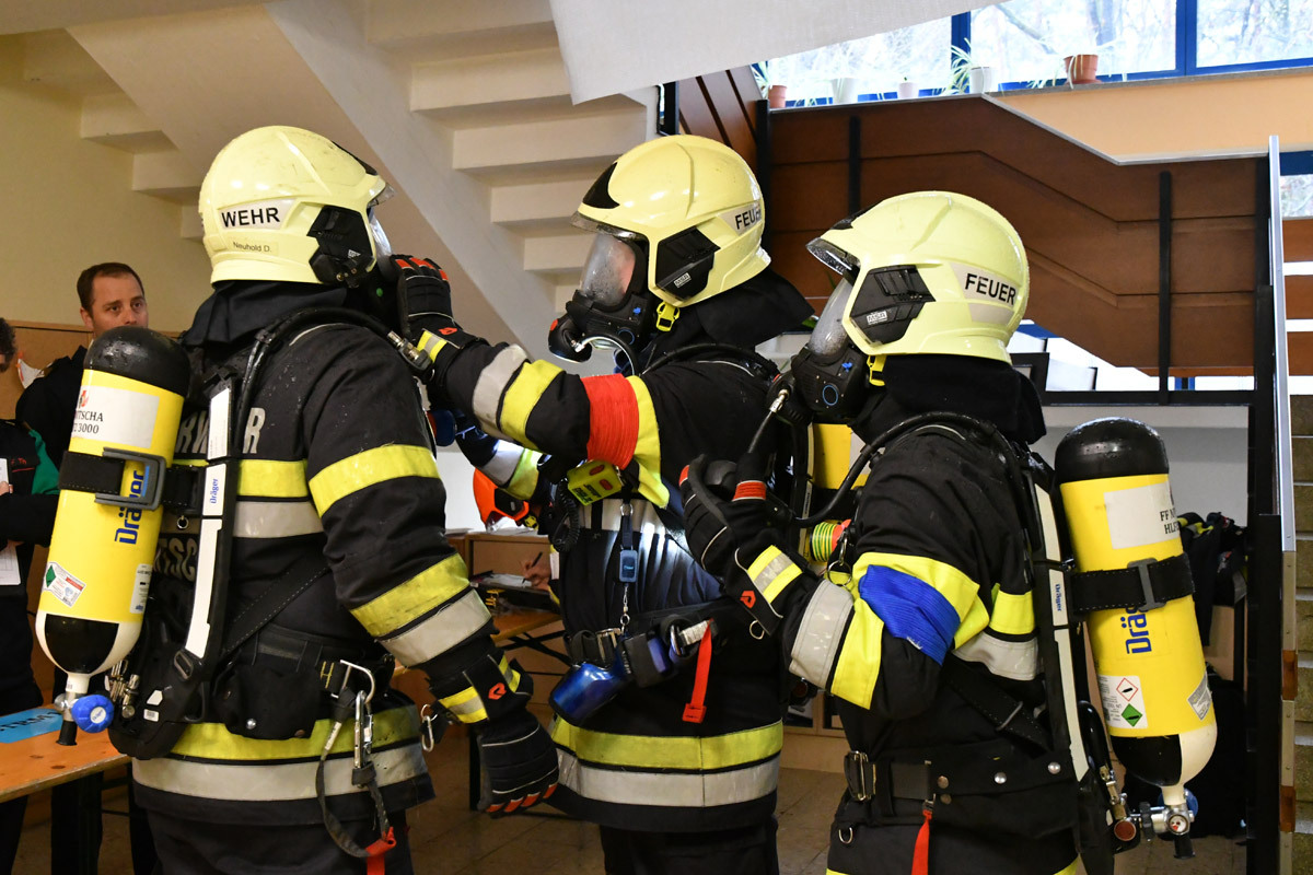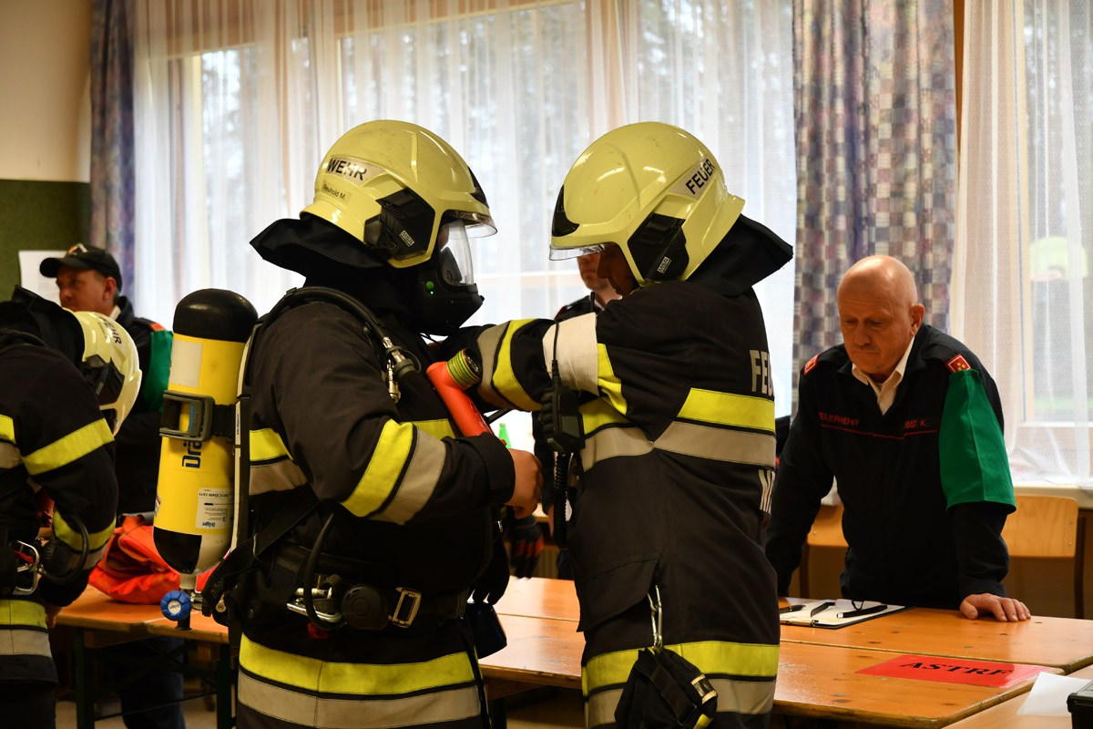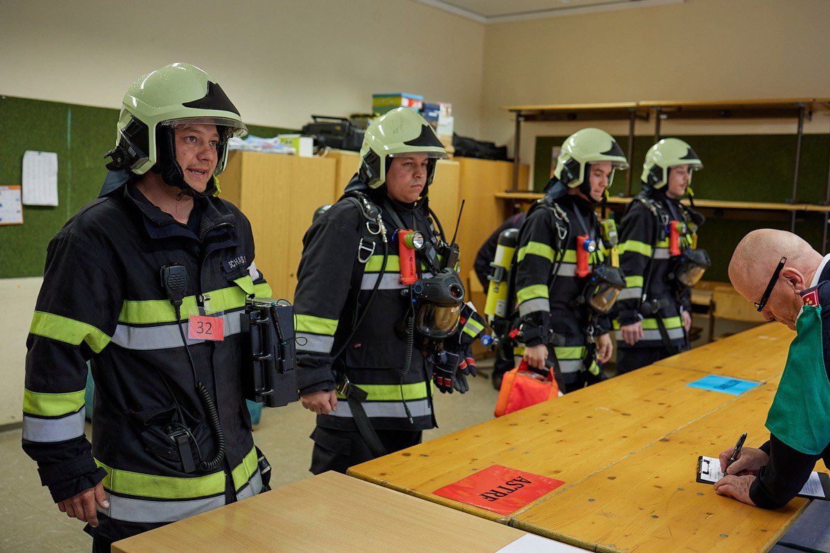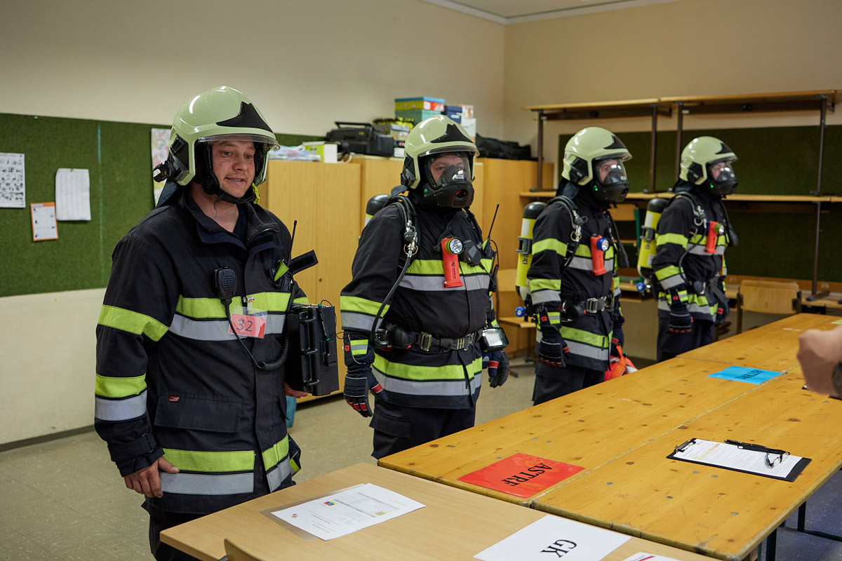 Bei der ersten Station mussten sie Fragen rund um den Atemschutz beantworten. Bei der zweiten Station wurde das richtige Aufnehmen und in Betrieb setzen des Atemschutzgerätes von dem Bewerten geprüft. Bei Station drei führten unsere Atemschutzgeräteträger eine Menschenrettung im ersten Obergeschoss mittels Leinensicherung durch. Bei der vierten Station führte unser Atemschutztrupp eine Brandbekämpfung im ersten Obergeschoss mittels HD-Strahlrohr durch. Bei der fünften und letzten Station wurde das Atemschutzgerät wieder aufgerüstet.
