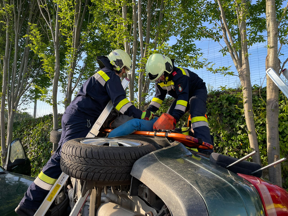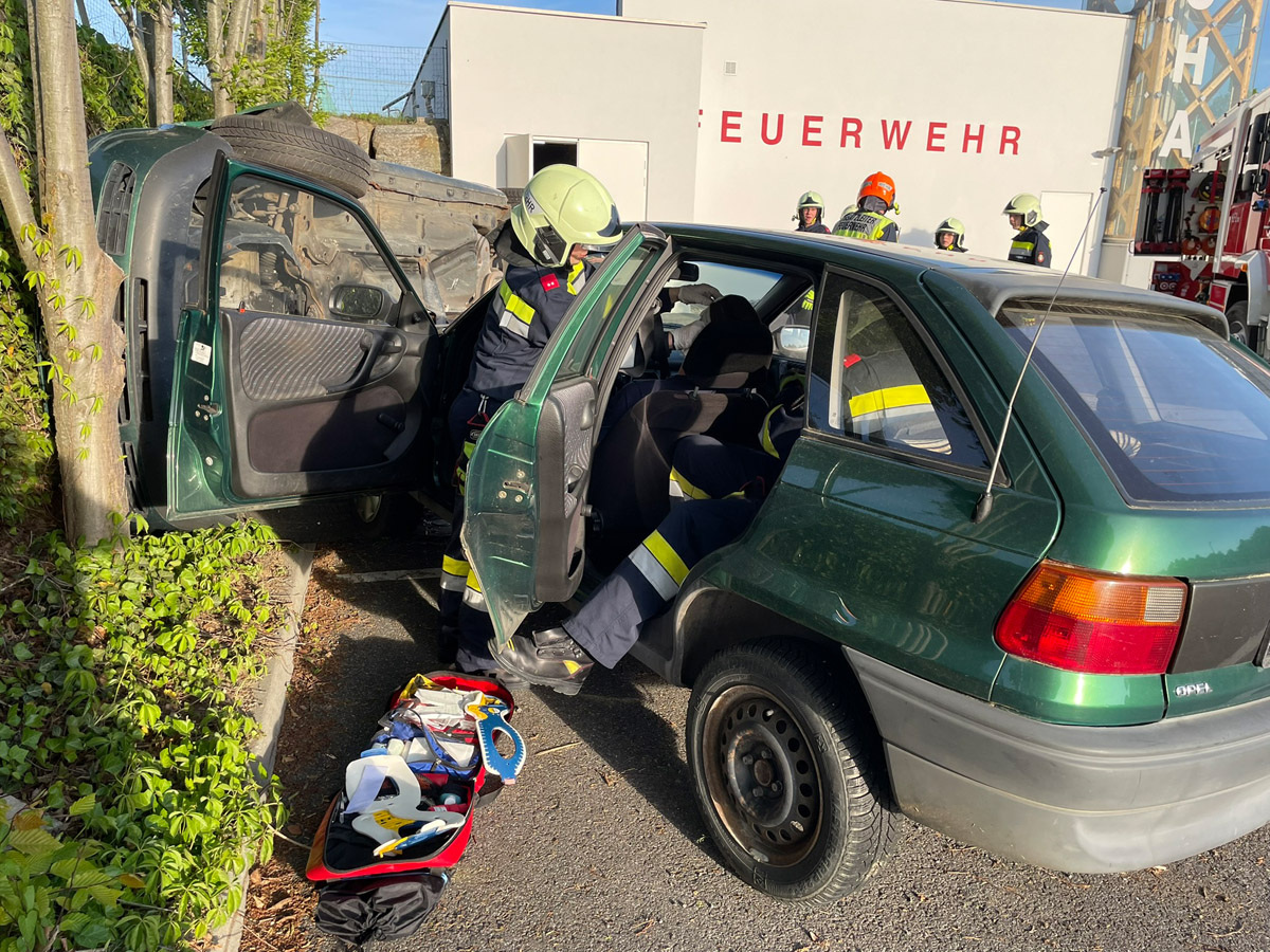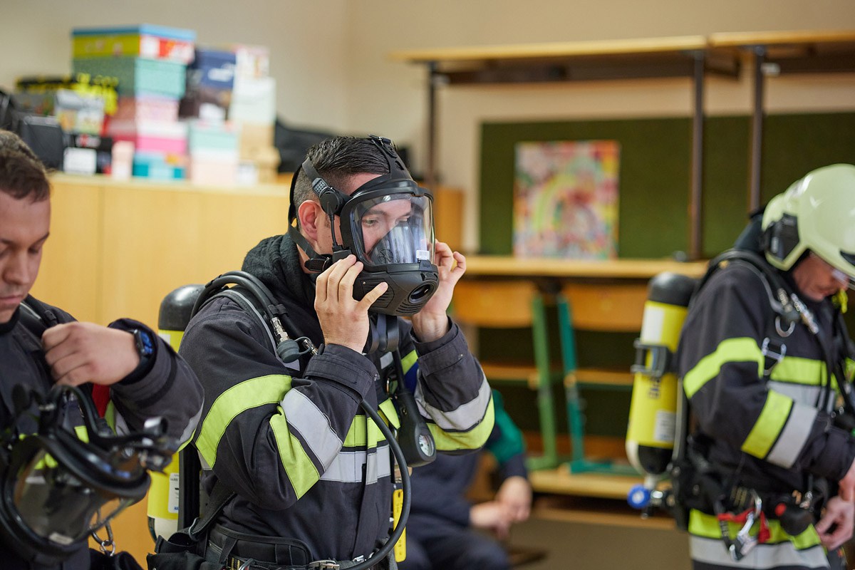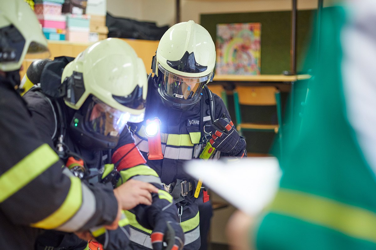Bei der ersten Station mussten sie Fragen rund um den Atemschutz beantworten. Bei der zweiten Station wurde das richtige Aufnehmen und in Betrieb setzen des Atemschutzgerätes von dem Bewerten geprüft. Bei Station drei führten unsere Atemschutzgeräteträger eine Menschenrettung im ersten Obergeschoss mittels Leinensicherung durch. Bei der vierten Station führte unser Atemschutztrupp eine Brandbekämpfung im ersten Obergeschoss mittels HD-Strahlrohr durch. Bei der fünften und letzten Station wurde das Atemschutzgerät wieder aufgerüstet.