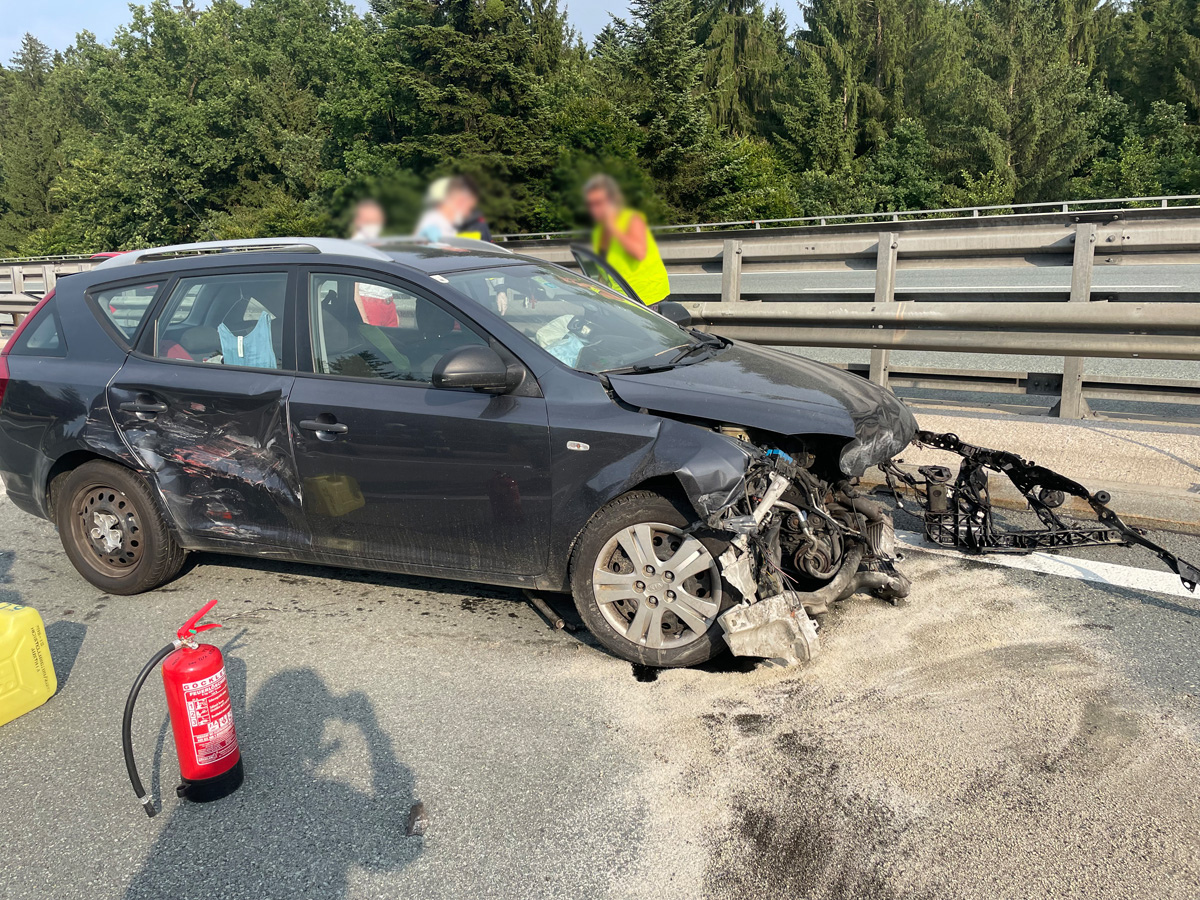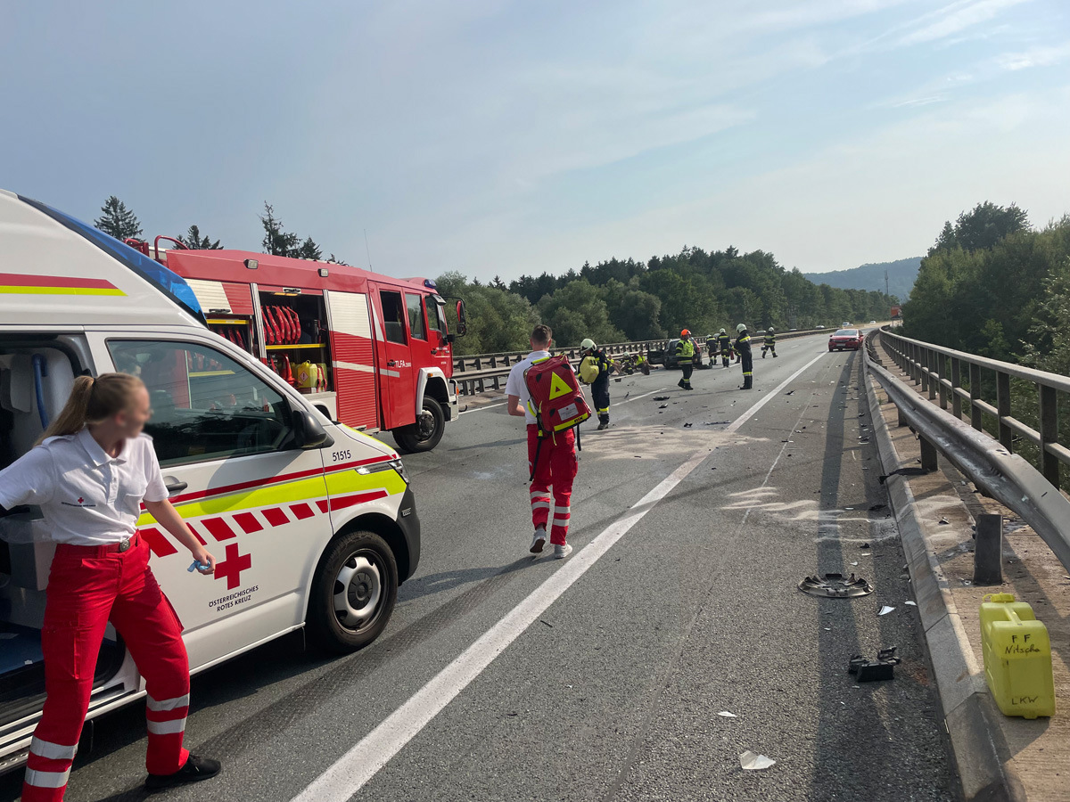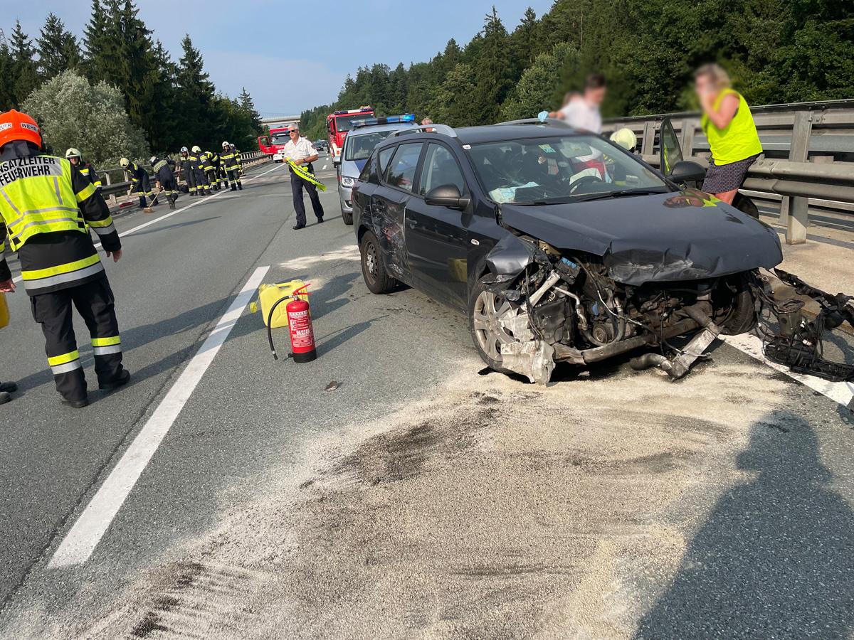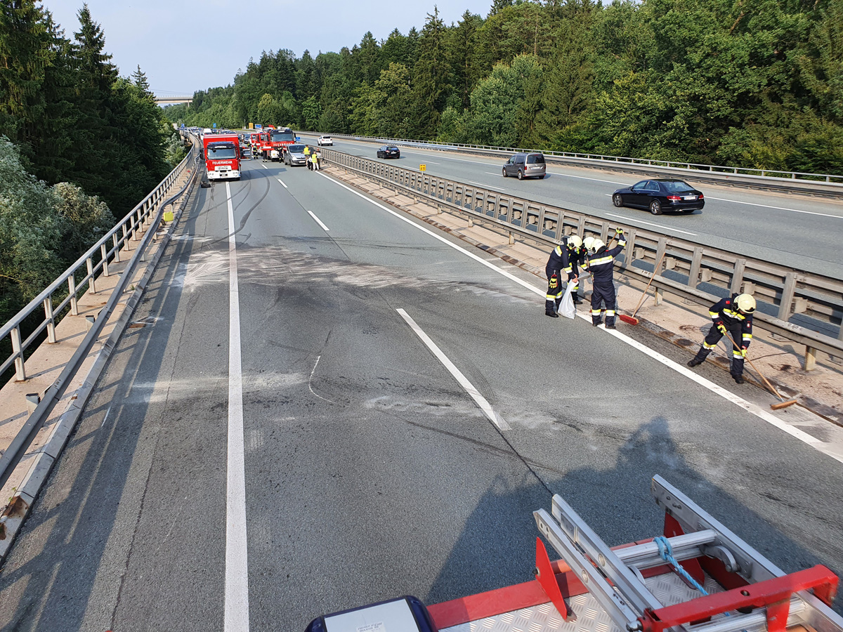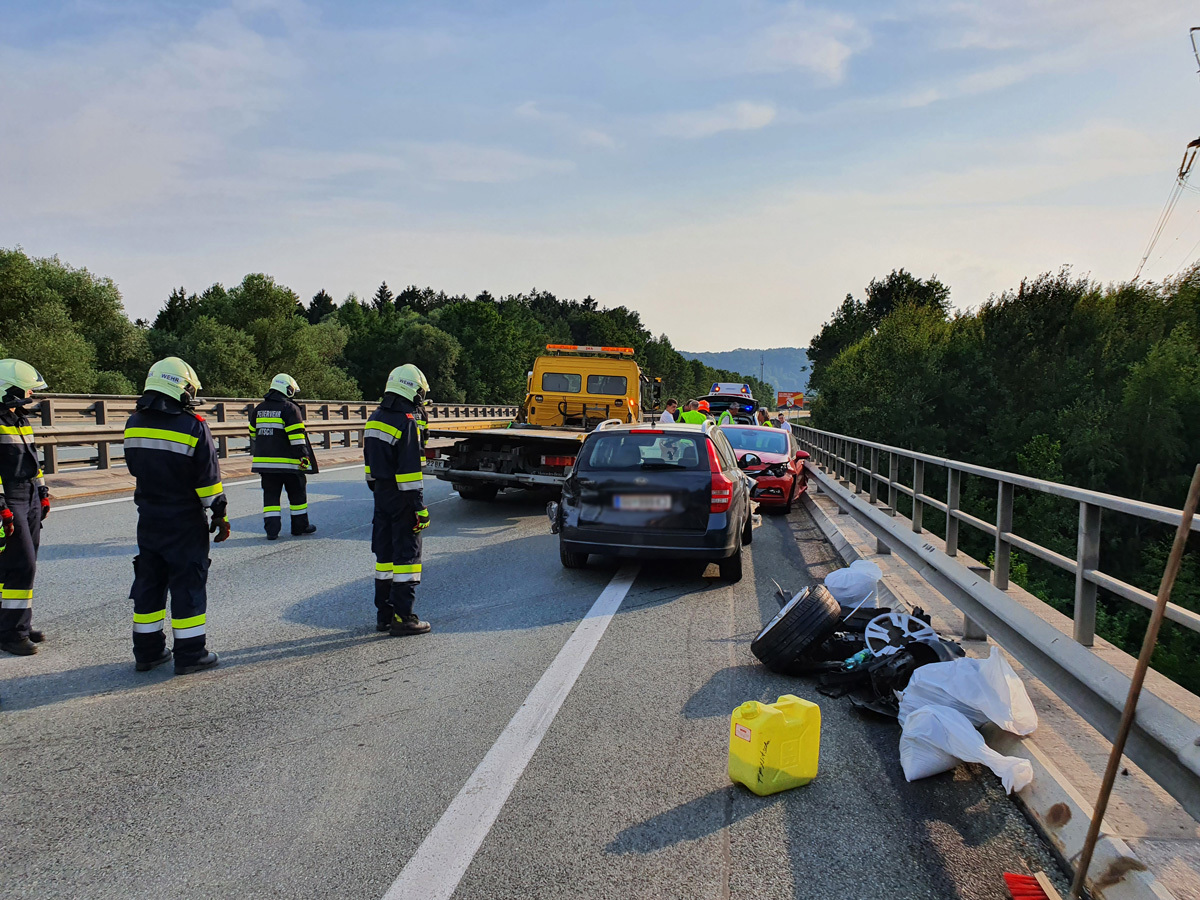 Einsatzkräfte: TLF-A 2000 und LKW Nitscha mit 16 Mann, FF Gleisdorf, Rettung, Polizei, ASFINAG, Abschleppunternehmen