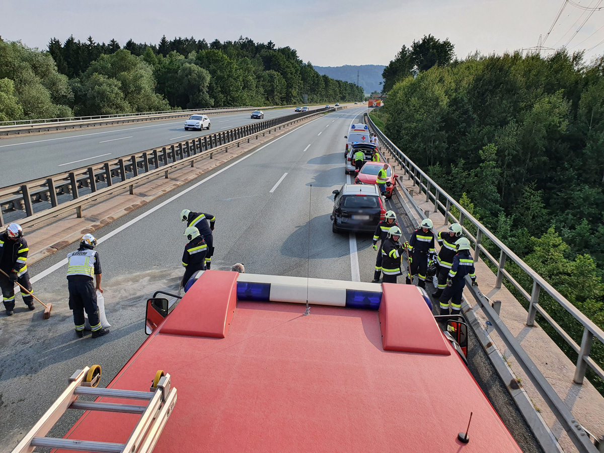 Tätigkeit: Unfallstelle absichern, Verletzte Personen betreuen, PKW von Straße entfernen, Öl binden