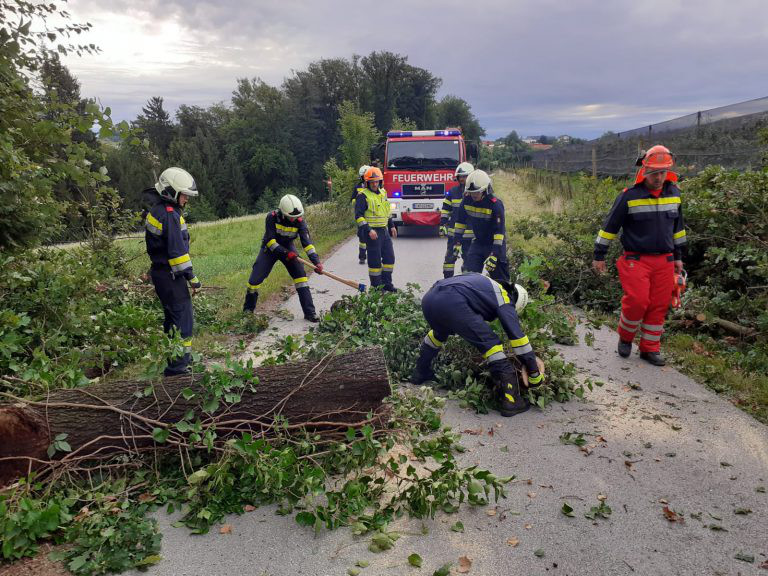 Tätigkeit: Unfallstelle absichern, Baum von Straße entfernen, Straße reinigen