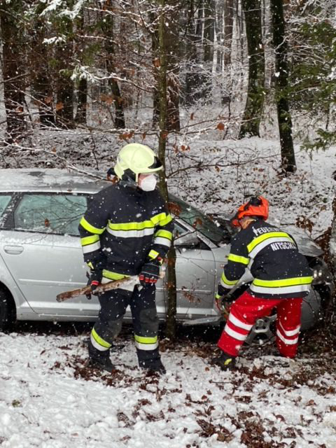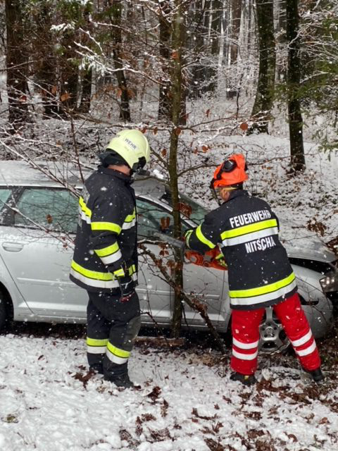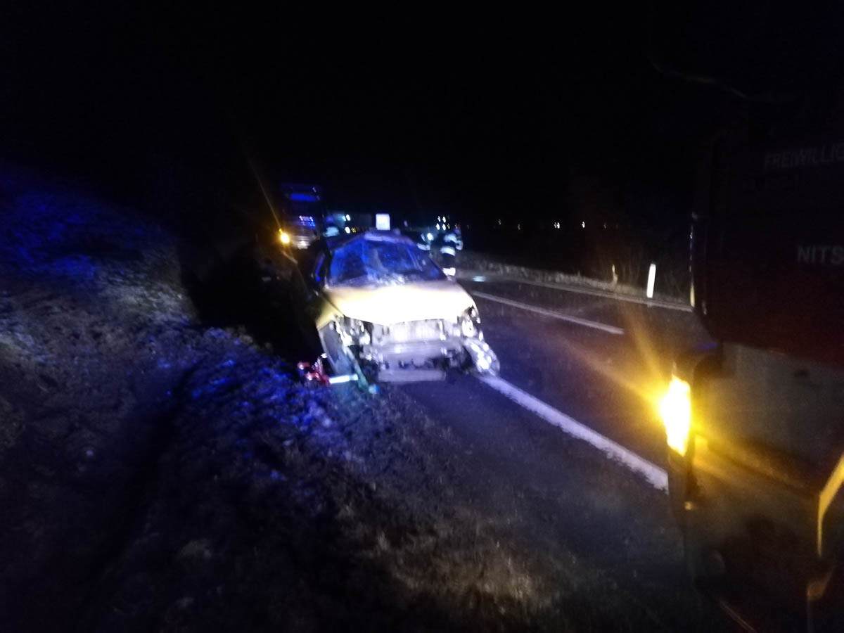 Einsatzkräfte: TLF-A 2000, LFA-B und MTFA Nitscha mit 9 Mann, Polizei, Rettung, Straßenverwaltung, Abschleppunternehmen