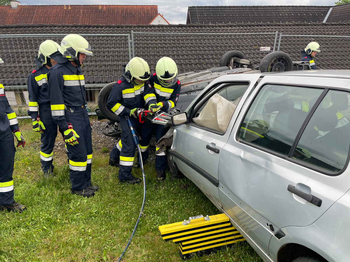 Übung: Verkehrsunfall mit zwei Fahrzeugen und verletzten, eingeklemmten Personen