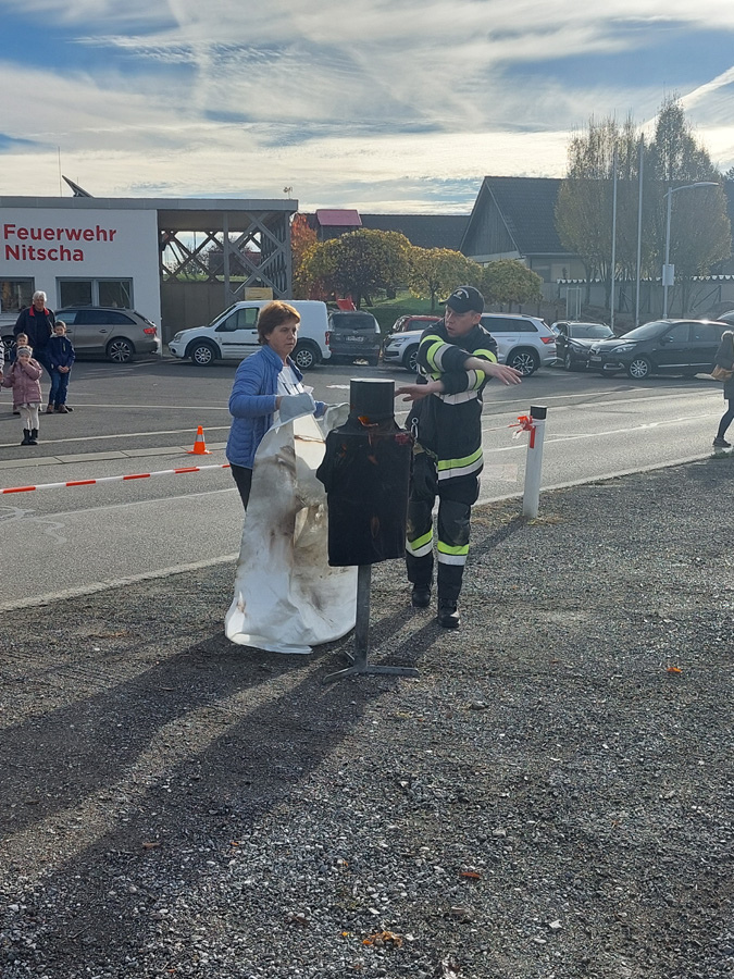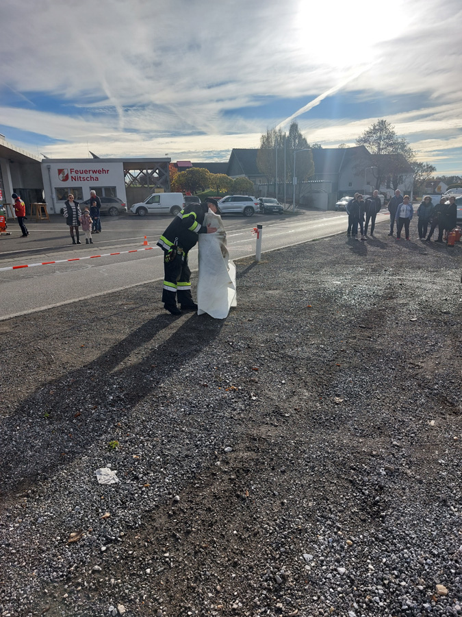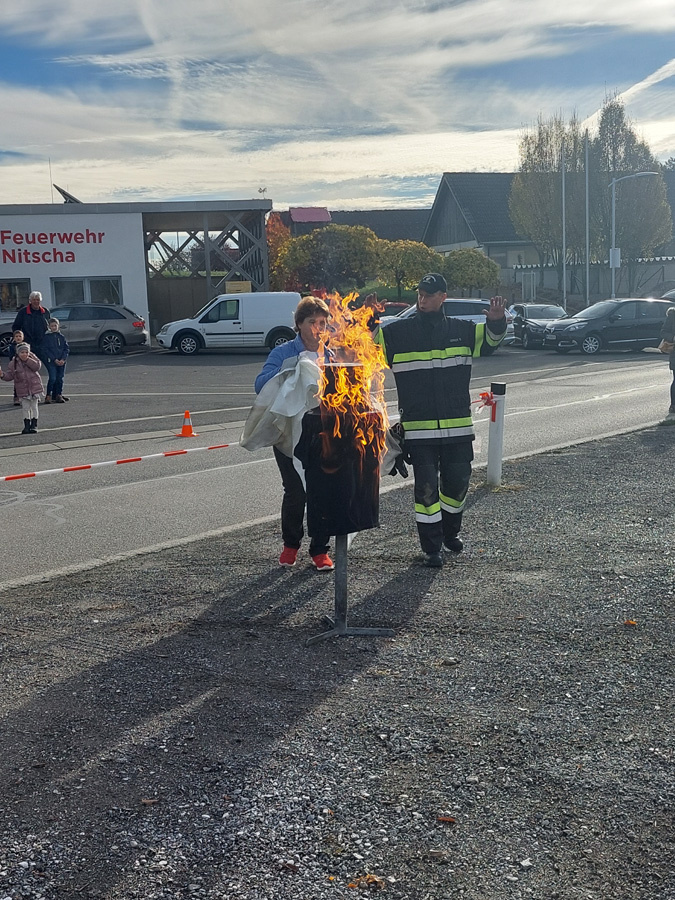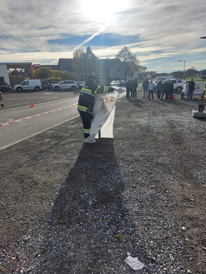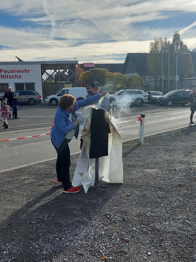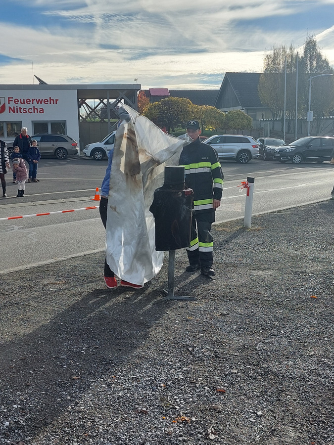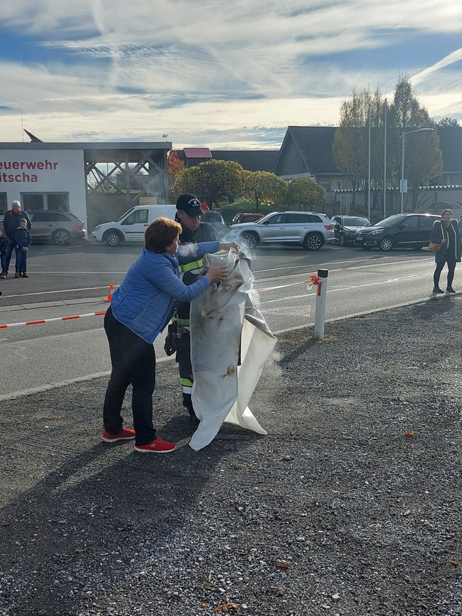 Am letzten Samstag organisierte die FF Nitscha die verpflichtende zweijährige Feuerlöscherüberprüfung in Verbindung mit einem Tag der offenen Tür und Vorführung der Entstehungsbrandbekämpfung. Bereits kurz vor acht Uhr bildeten sich schon die ersten Schlangen vor den Prüfständen. Im Zug der praktischen Vorführung der Entstehungsbrandbekämpfung konnten unter fachkundiger Anleitung von OBI Markus Maurer und HLM Bernhard Genser die Besucher selbst zum Feuerlöscher greifen und die verschiedenen Szenarien beüben und löschen. Ein Schwerpunkt am Ende jeder Vorführung war die praktische Anwendung der Löschdecke.