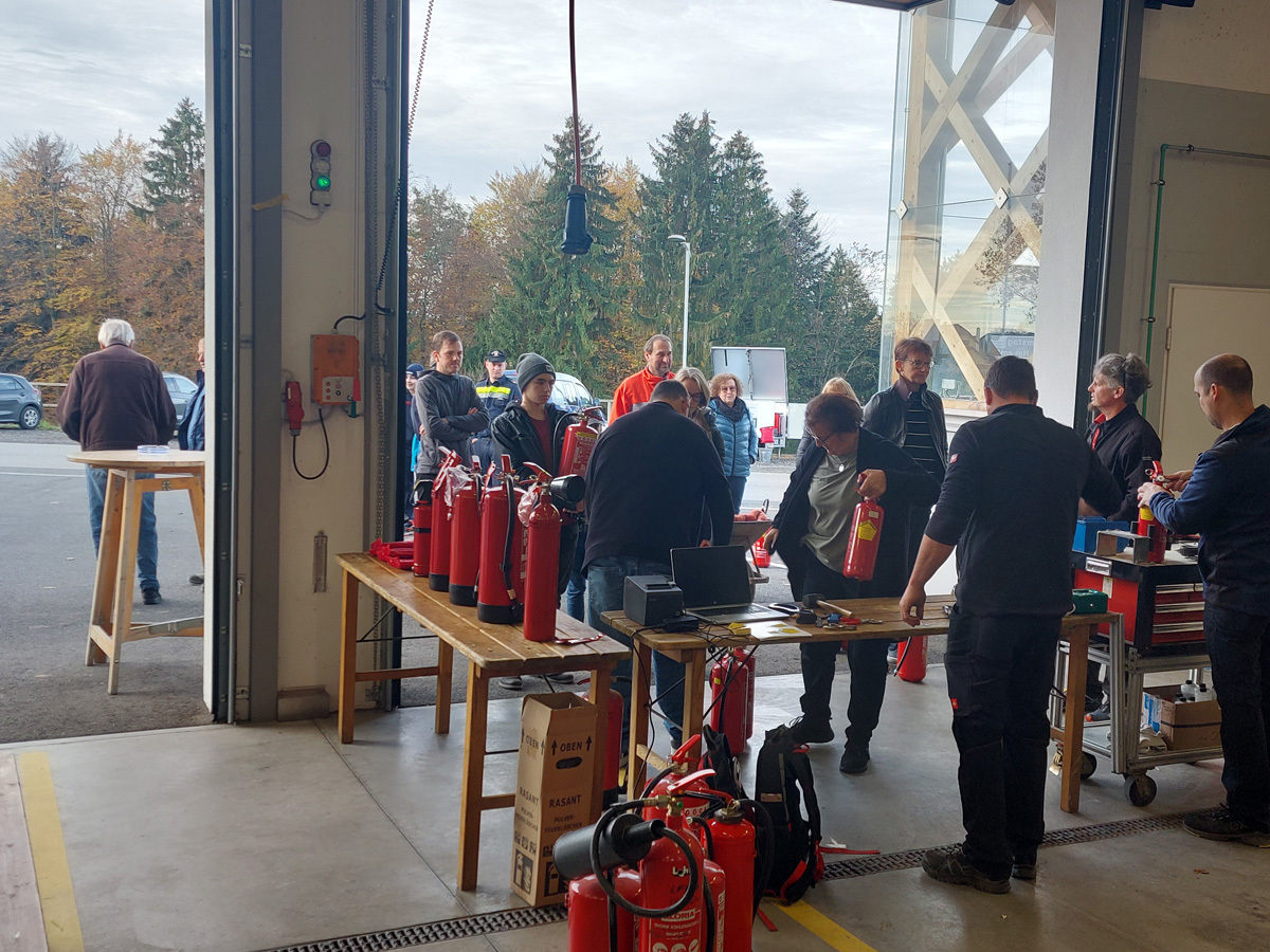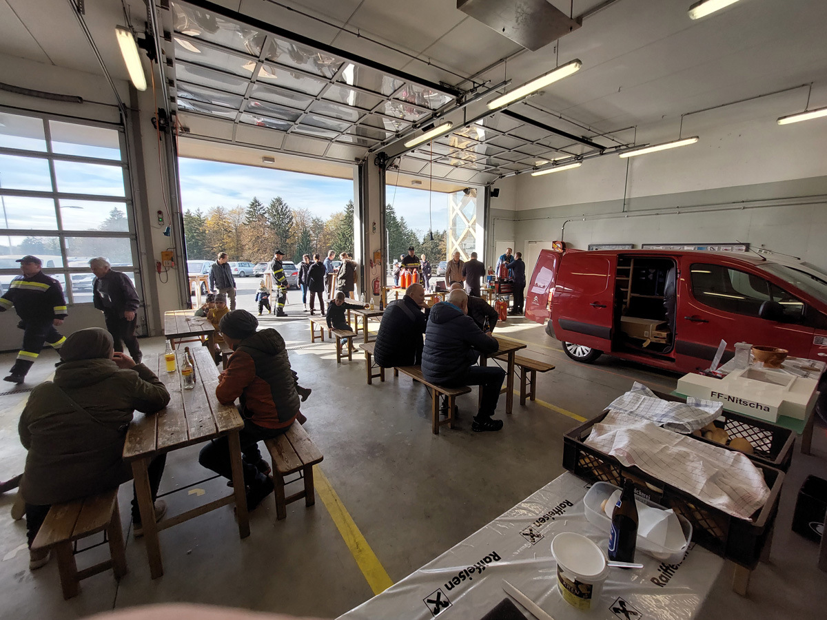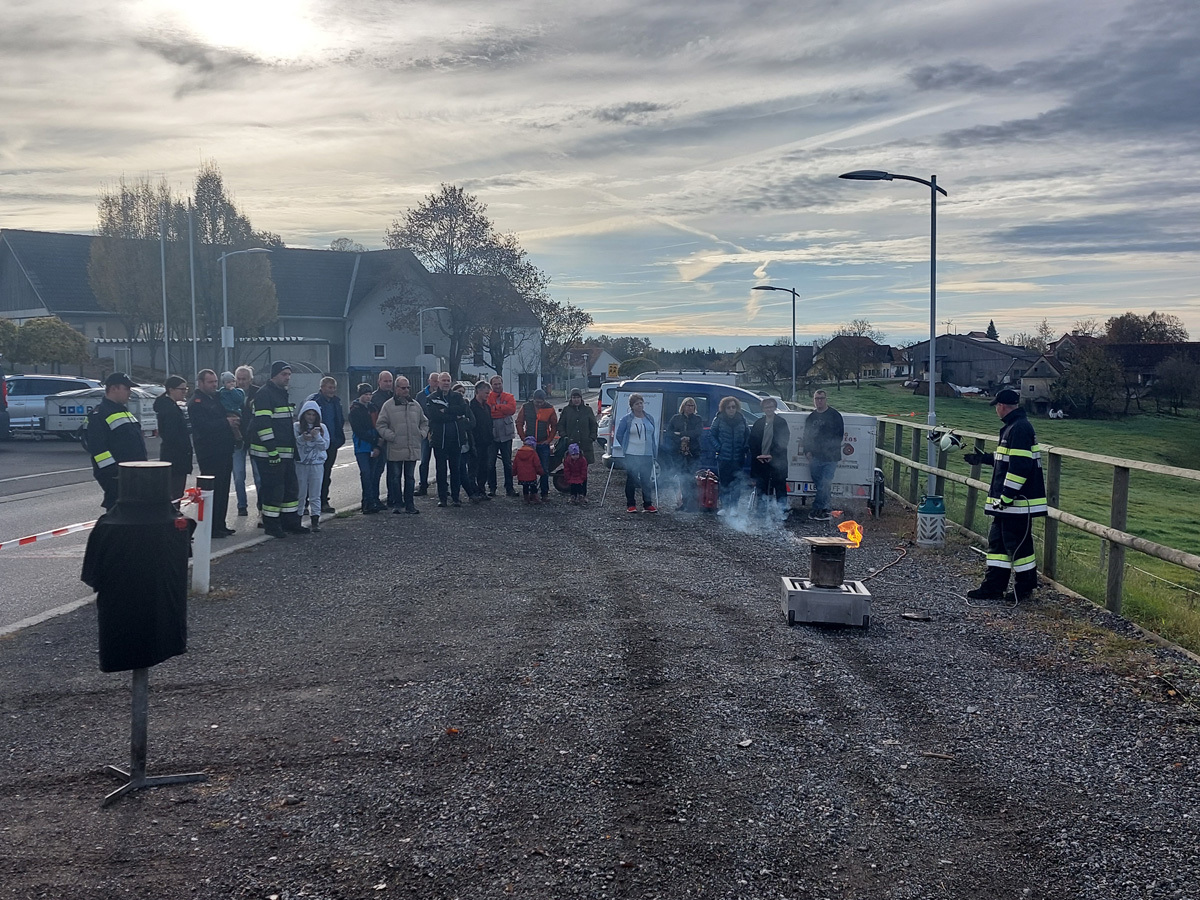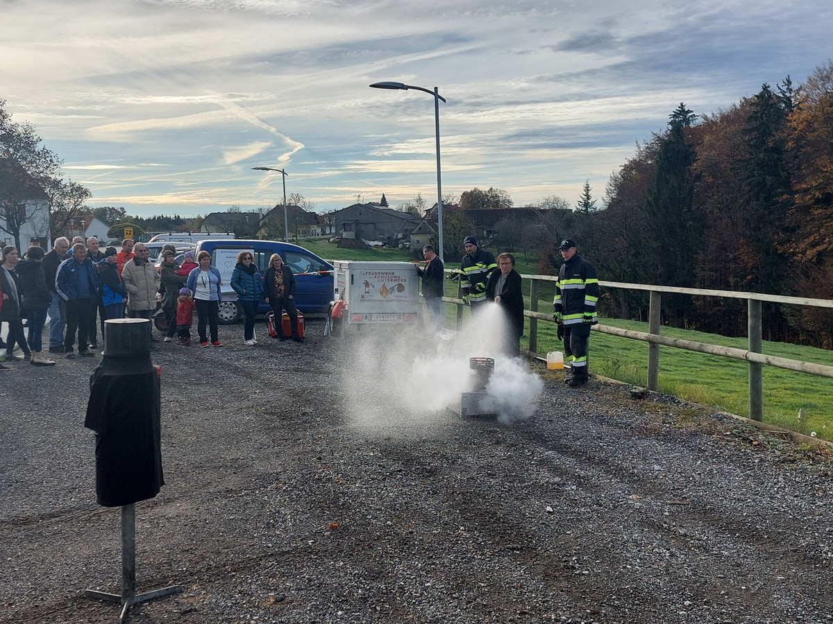 Am letzten Samstag organisierte die FF Nitscha die verpflichtende zweijährige Feuerlöscherüberprüfung in Verbindung mit einem Tag der offenen Tür und Vorführung der Entstehungsbrandbekämpfung. Bereits kurz vor acht Uhr bildeten sich schon die ersten Schlangen vor den Prüfständen. Im Zug der praktischen Vorführung der Entstehungsbrandbekämpfung konnten unter fachkundiger Anleitung von OBI Markus Maurer und HLM Bernhard Genser die Besucher selbst zum Feuerlöscher greifen und die verschiedenen Szenarien beüben und löschen. Ein Schwerpunkt am Ende jeder Vorführung war die praktische Anwendung der Löschdecke.
