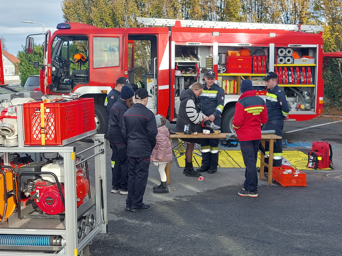 Der Jugend wurden die Feuerwehrfahrzeuge und die Gerätschaften praktisch erklärt und vorgeführt. Die Feuerwehrhausführung, vorgenommen von Kommandant Werner Kriegl, stieß auf reges Interesse. Im Zuge der Besichtigung wurde der Ablauf eines Einsatzes von der Alarmierung bis hin zur Ausfahrt praktisch erklärt.