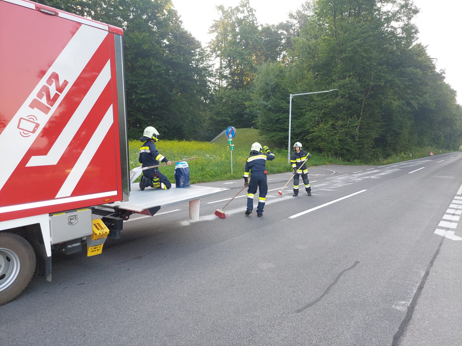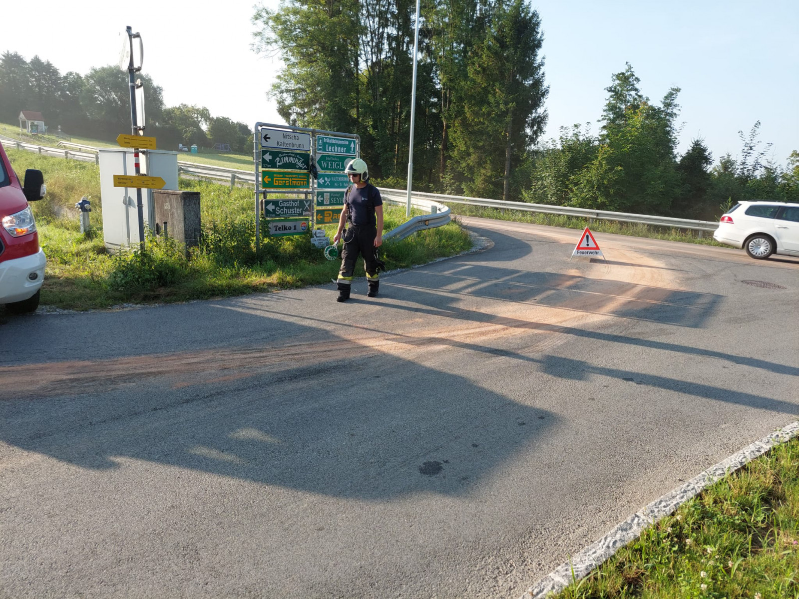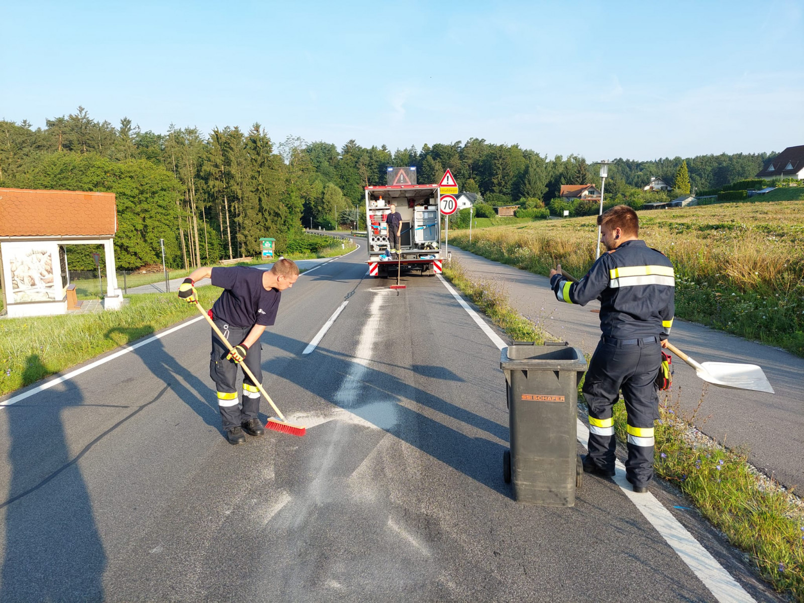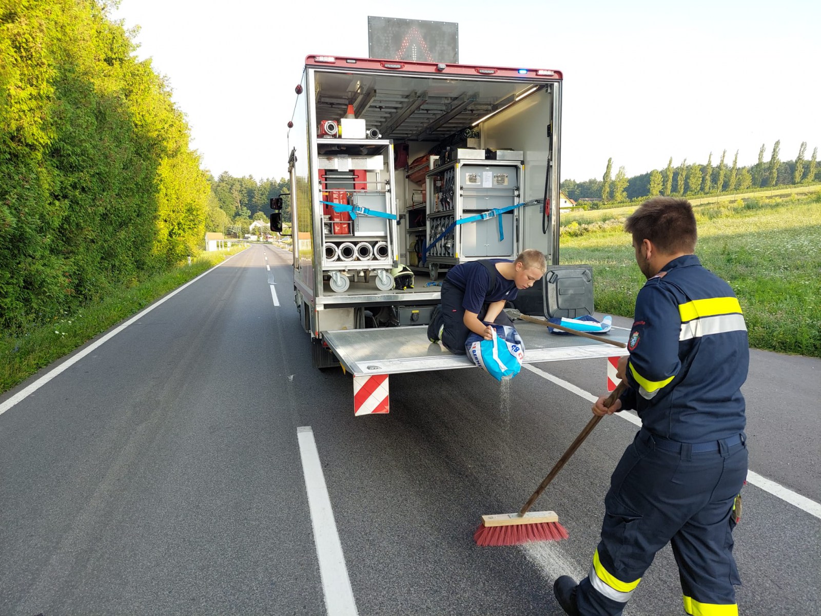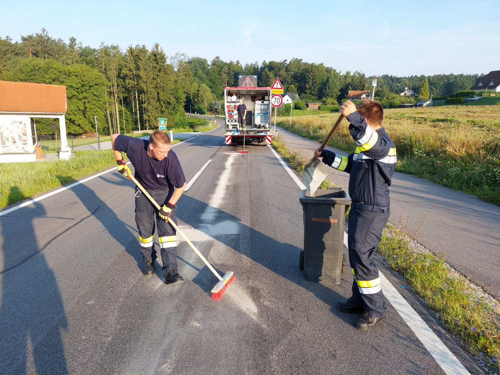 Ölbindearbeiten auf B 65 am 24.07.2023Von admin / 24. Juli 2023 Alarmierung: 06:18 Uhr mittels stillem AlarmEinsatzort: B 65 Abzweigung NitschaEinsatzkräfte: LKW und MTF-A Nitscha mit 6 MannTätigkeit: Verkehr regeln, Öl bindenEinsatzende: 09:00 Uhr