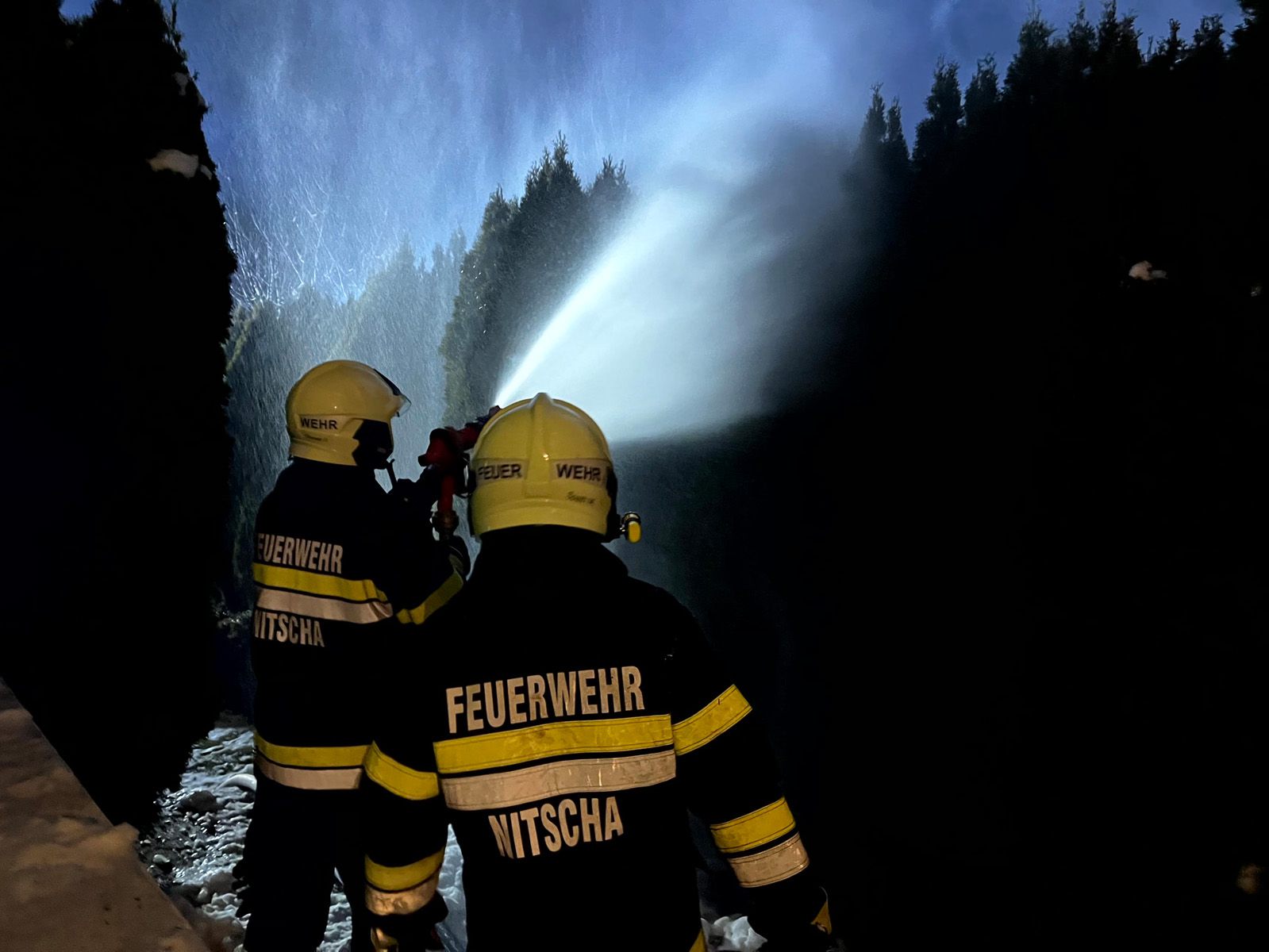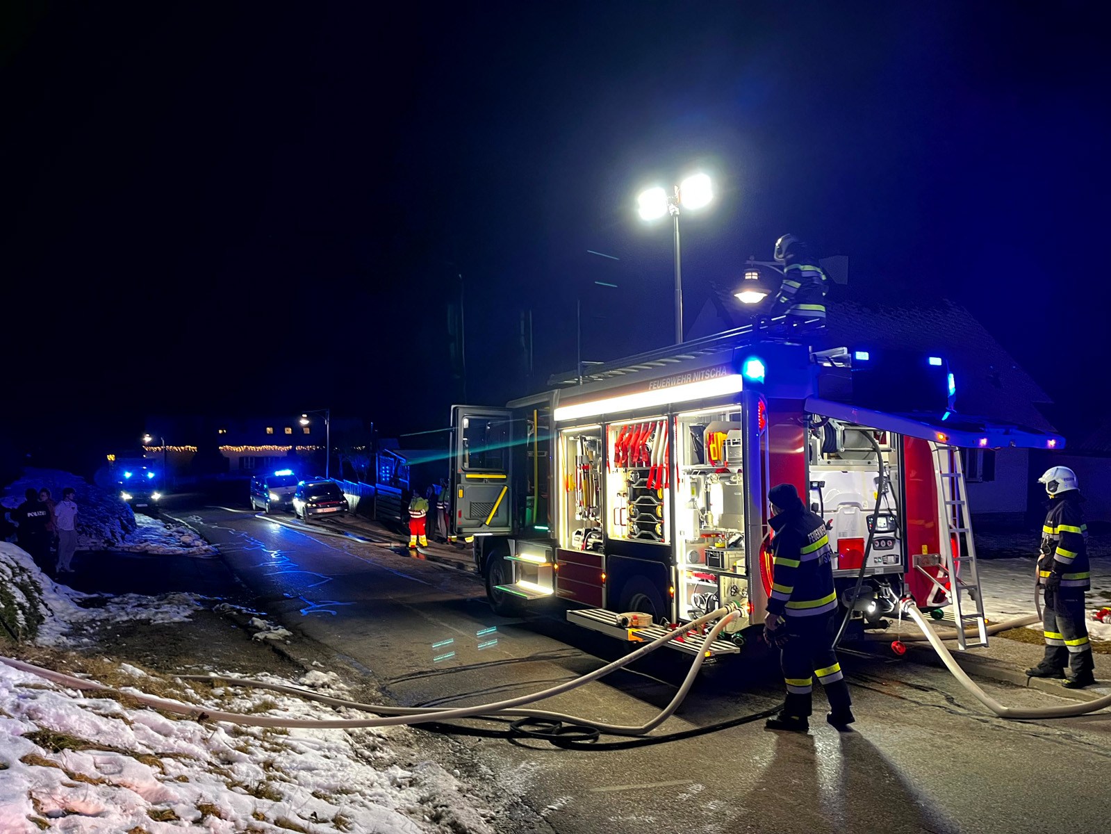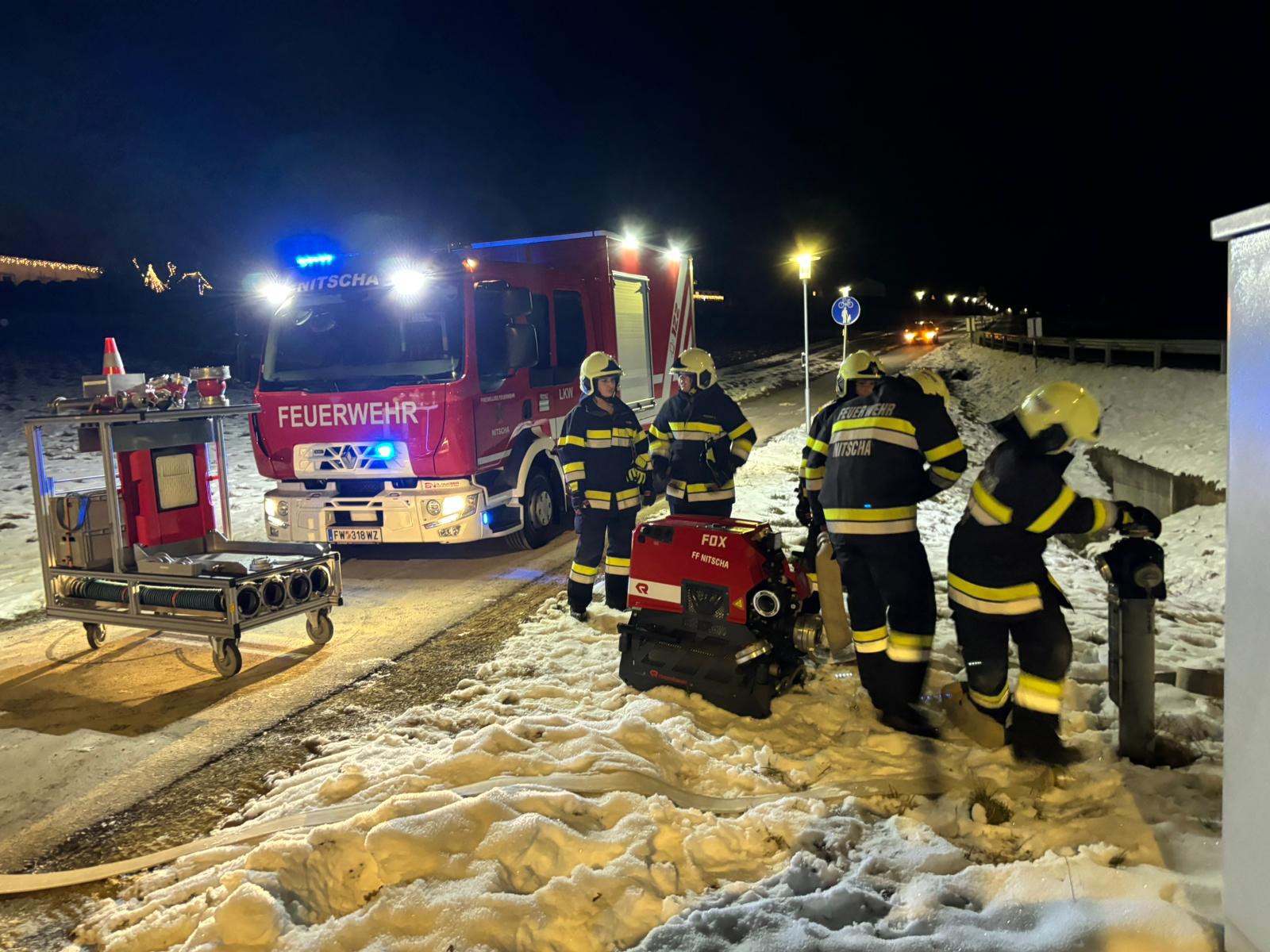 Einsatzkräfte: HLF 2 3000, LKW und MTF-A Nitscha mit 24 Mann, Rettung, Polizei, Gemeindebedienstete