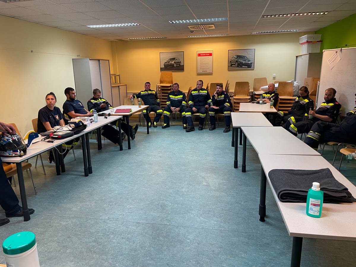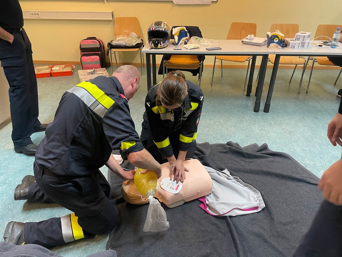 Parallel dazu nahmen LM Markus Genser und LM d. S. Petra Ulrich bei einer Sanitäterweiterbidung mit insgesamt 15 Sanitäter aus dem Feuerwehrabschnitt, unter der Leitung von LM d. S. Johannes Moser (FF St. Ruprecht), im Schulungssaal teil.