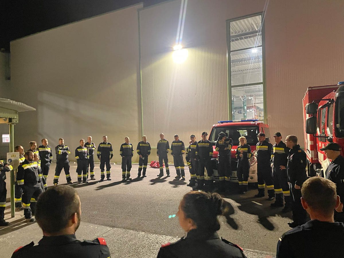 Im Anschluss bedankte sich ABI Rudolf Karrer bei HBI Wolfgang Kricker (BTF Magna Heavy Stamping) für die Organisation der Übung, bei HLM Bernhard Genser für die professionelle Durchführung der MRAS Übung, bei LM d. S. Johannes Moser für die informative Schulung der Feuerwehrsanitäter/Innen und bei allen 50 Feuerwehrmänner und Frauen für die zahlreiche Teilnahme und der professionellen Arbeit.